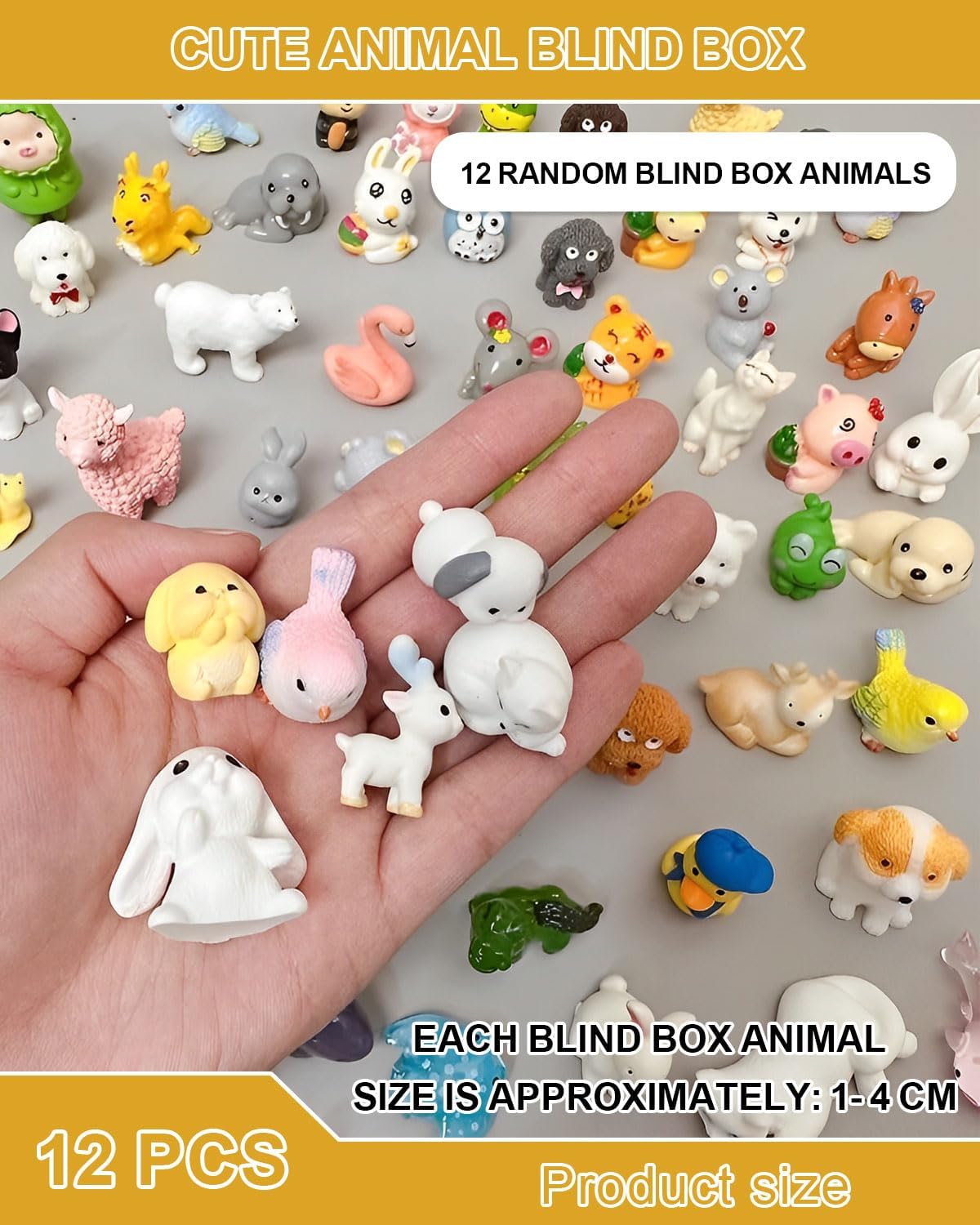 Sicuro e affidabile: i giocattoli per animali ciechi sono realizzati in resina di alta qualità, sicura e affidabile. Regali creativi: il design delle scatole cieche regala nuove emozioni alle persone. Ricevi in modo casuale diversi tipi di simpatici animali per sorprendere i bambini. Questo è un regalo perfetto per i bambini. NECESSARIO PER LE FESTE: Adatto per feste di bambini e per l'uso quotidiano. Può essere utilizzato per riempire i sacchetti regalo di Halloween, come regalo di Natale, di San Valentino, per riempire le uova di Pasqua, come regalo di compleanno, ecc. Può anche essere utilizzato come premio per il gioco della macchina artiglio. Giocattoli sensoriali e supporti didattici: i giocattoli in scatola cieca hanno simpatiche forme di animali e colori vivaci, perfetti come premi per giochi e lezioni o come premi per scrigni del tesoro. La confezione include: 12 mini sacchetti ciechi a forma di animali, in quantità sufficiente, con stili diversi come gattini dei cartoni animati, cuccioli, orsi, ecc.