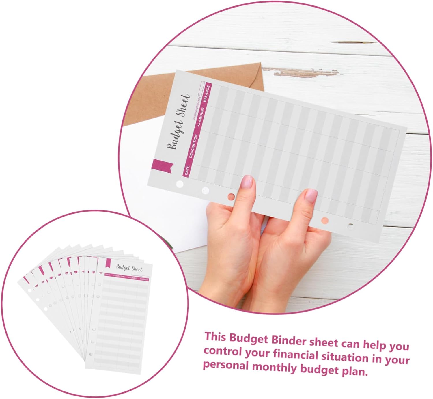 Budget Sheet è adatto per l'uso in case, uffici, aziende e altri luoghi con un'ampia di applicazioni. Condividilo con i tuoi amici perché questa carta budget è pratica e utile. Materiale sicuro, puoi essere di usarlo. Per fissare e raggiungere obiettivi finanziari, per sviluppare buone abitudini, questo prodotto è molto utile. Il foglio di bilancio che registra tutte le entrate e le uscite è facile da usare. Design con foro perforato, facile da usare. Il foglio di budget può aiutarti a registrare il tuo budget in dettaglio, comodo e pratico.