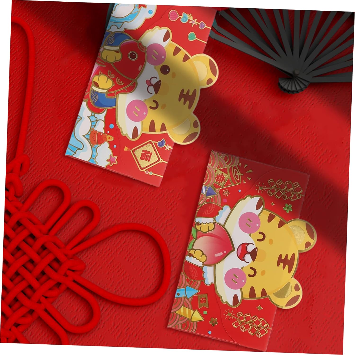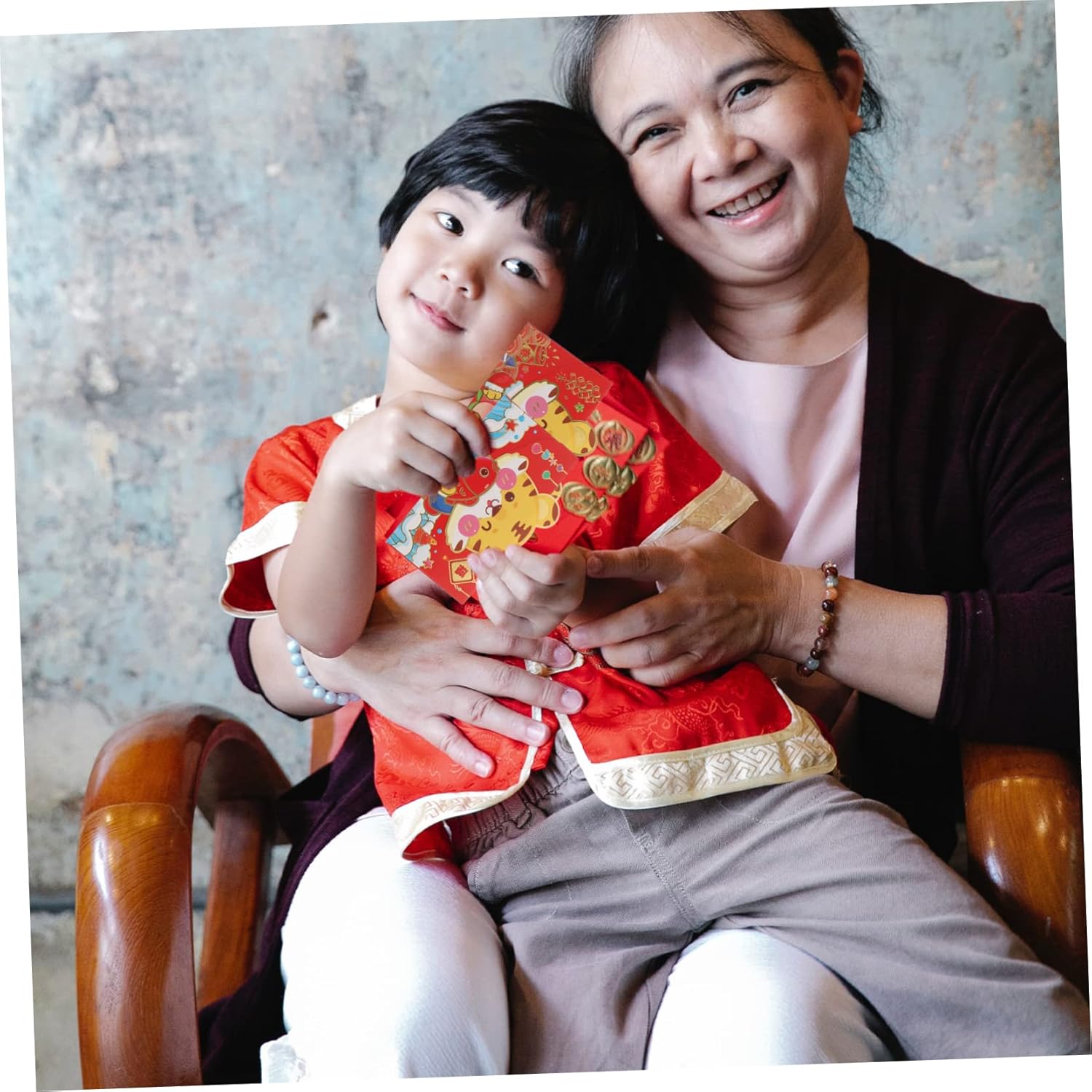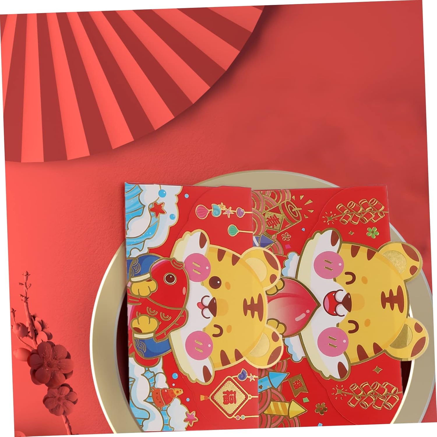 La busta rossa è un significativo che viene dato durante le vacanze o le occasioni speciali in Cina. Significa i migliori auguri da degli anziani alla generazione più giovane. Ti auguro allegro e salute durante il prossimo anno . Progettato con diversi personaggi dei cartoni animati adorabili e frasi cinesi con buoni auguri, eleganti e belli. I modelli dei cartoni animati sono pieni di atmosfera festosa e ti portano fortuna nel prossimo anno del 2022. Come regali per il capodanno cinese, il matrimonio, il compleanno o altri festival, lascia che esprimi auguri di buona fortuna, salute per i destinatari.