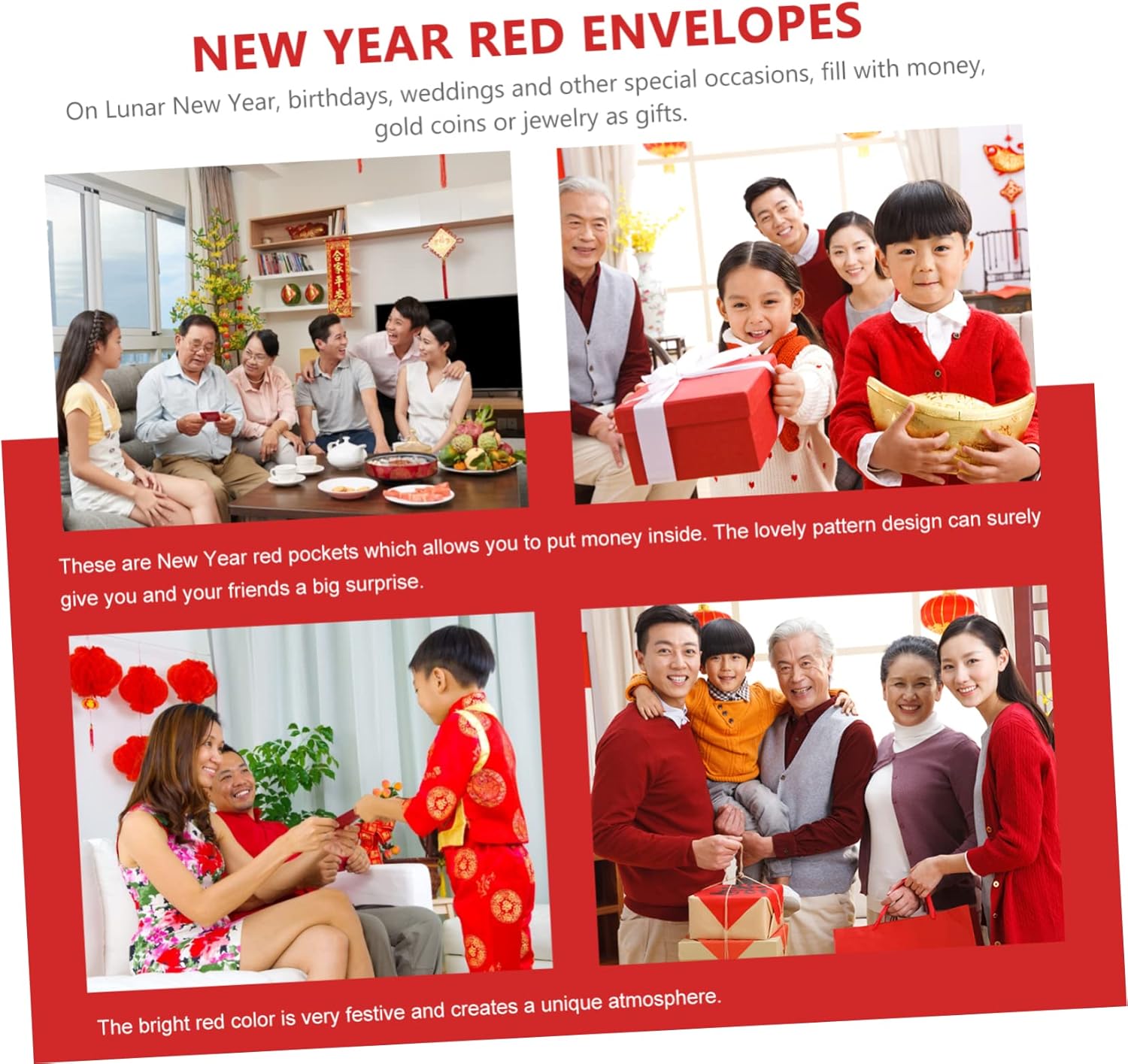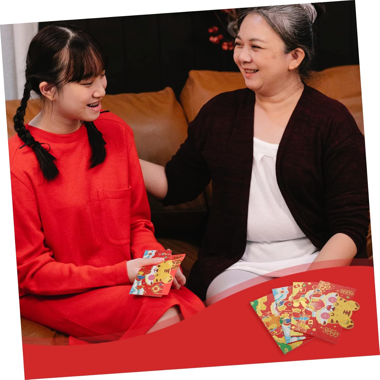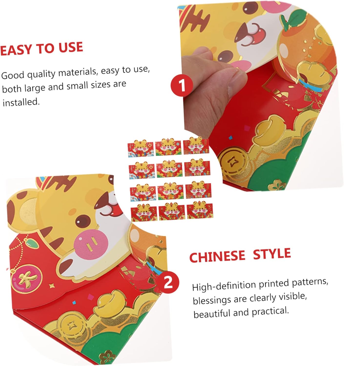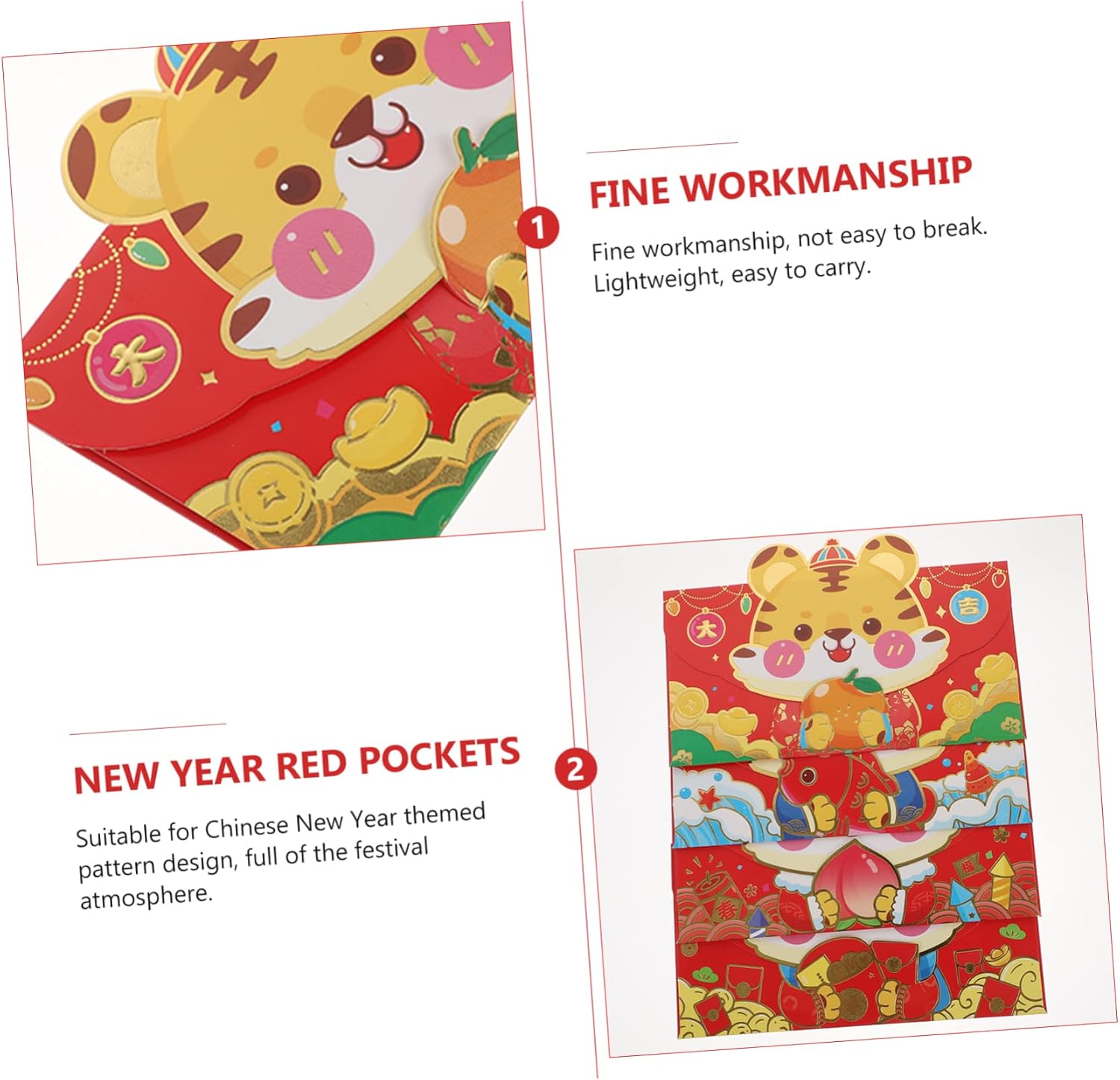 La busta rossa è un significativo che viene dato durante le vacanze o le occasioni speciali in Cina. Significa i migliori auguri da degli anziani alla generazione più giovane. Ti auguro allegro e salute durante il prossimo anno . Progettato con diversi personaggi dei cartoni animati adorabili e frasi cinesi con buoni auguri, eleganti e belli. I modelli dei cartoni animati sono pieni di atmosfera festosa e ti portano fortuna nel prossimo anno del 2022. Come regali per il capodanno cinese, il matrimonio, il compleanno o altri festival, lascia che esprimi auguri di buona fortuna, salute per i destinatari.