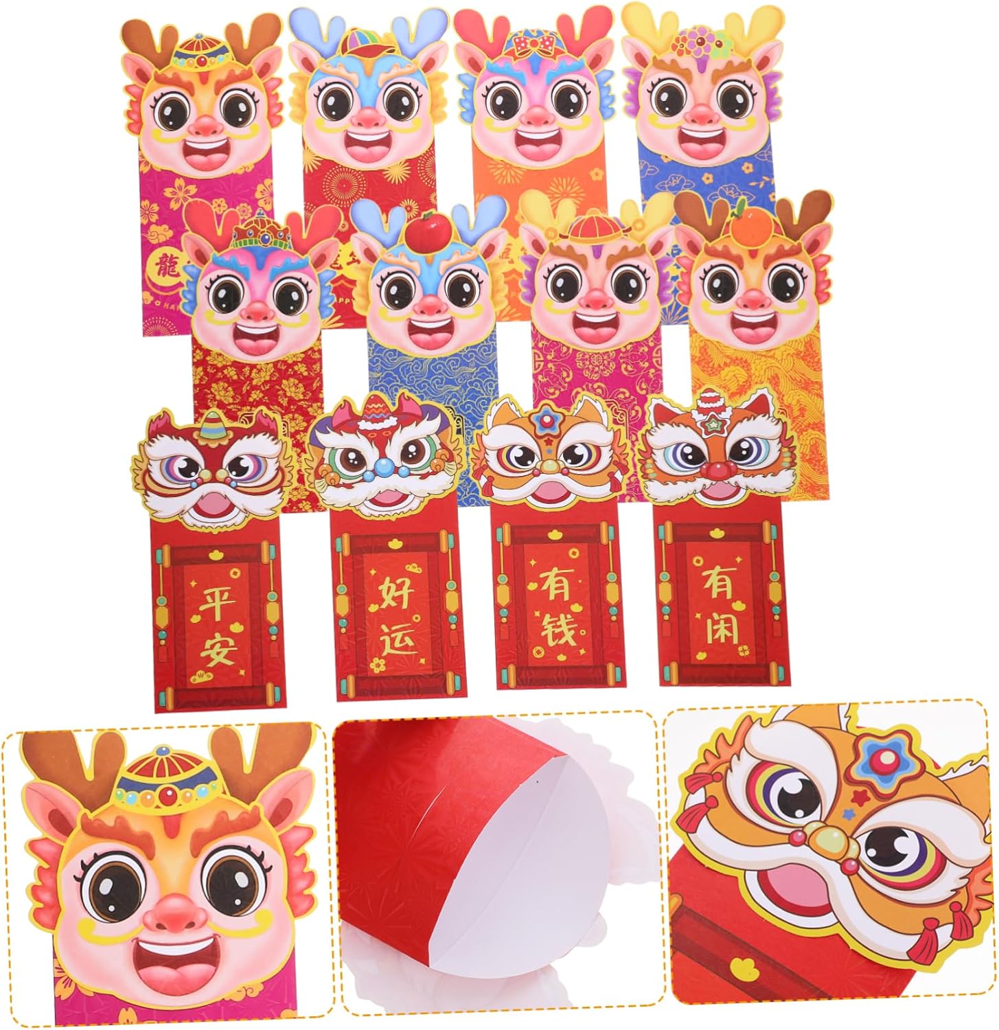 Adottando la carta, queste buste rosse sono robuste e non facili da rompere, con una superficie liscia. Ogni busta rossa augura al destinatario felicità, prosperità, buoni auspici, ricchezza e così via. Significa anche i migliori auguri da degli anziani alle generazioni più giovani. Con caratteri cinesi di buon auspicio e motivi in stile cinese, per creare un'atmosfera festosa. Ti auguro felicità e salute durante il prossimo anno . Con questa borsa puoi riporre biglietti di auguri, denaro, , inviti, regali, ecc. Look in stile cartone animato cinese, la busta rossa offre una sensazione naturale e toccante e bei .