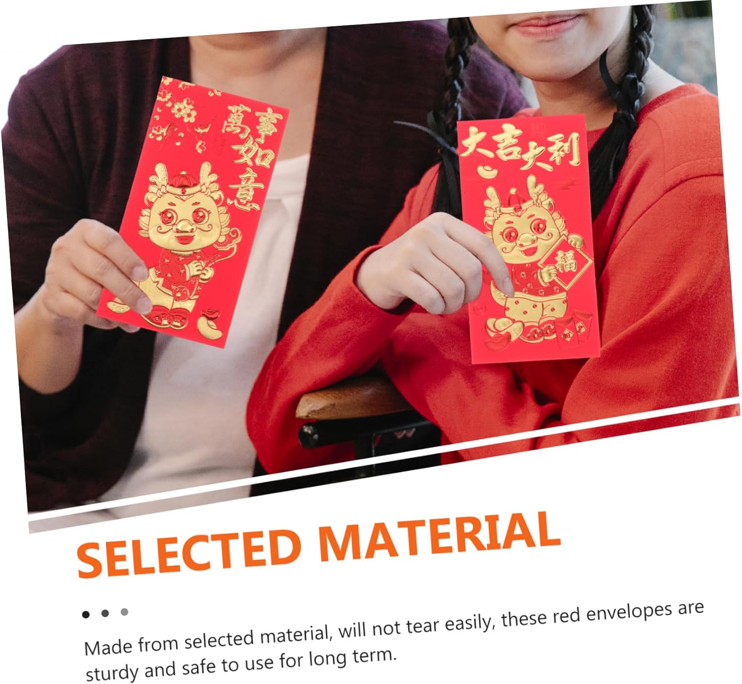 Realizzate in materiale cartaceo, non strappano facilmente, queste buste rosse sono robuste e sicure da usare a lungo termine. Combinato con elementi di motivi delicati, molto creativi e festosi, un bel pacchetto di soldi per Capodanno. Facile da usare, leggero, facile da aprire o chiudere, portatile e comodo per inserire o estrarre oggetti. Con parole di benedizione e adorabile motivo a drago, puoi inviarli come una scelta per la tua famiglia, , parente, colleghi per impressionarli e mostrare meglio la tua preoccupazione. Può permetterti di mettere contanti, piccoli gioielli, piccoli biglietti di auguri e così via in modo più sicuro, dando al destinatario una sorpresa.