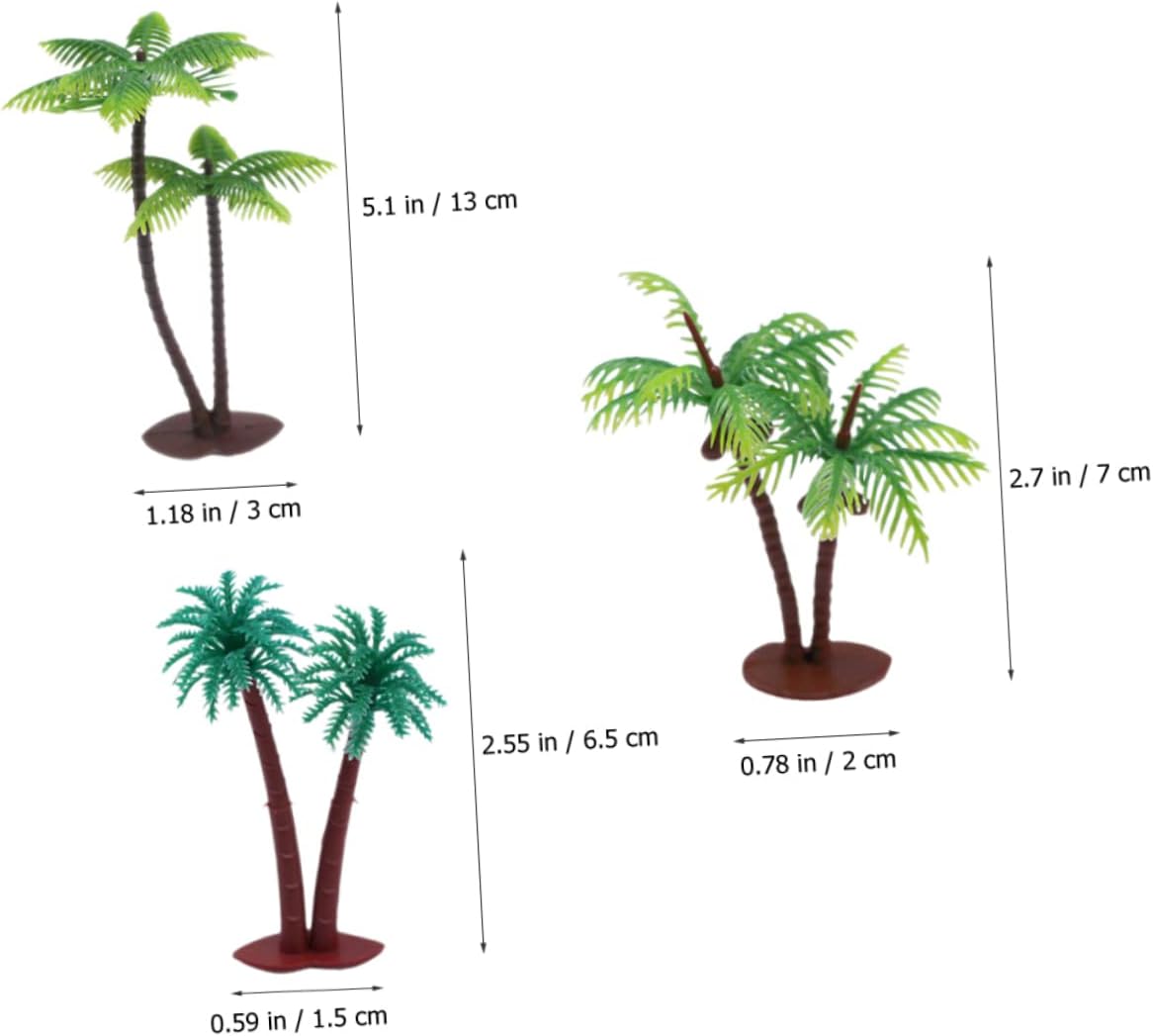 Alberi finti multifunzione: realizzati in plastica, resistenti e impermeabili. forma realistica e pregevole fattura, sono essenziali per il paesaggio fai da te del micro paesaggio. Modello realistico di palma in miniatura: piccolo ma dettagliato, semplice ma delicato. perfetto per qualsiasi giardino in miniatura, casa delle bambole e così via. Decorazioni paesaggistiche uniche: aggiungono splendido scenario alla tua imbarcazione, quindi crea un di più confortevole. Decorazioni oceaniche: realizzati in materiale plastico sicuro e durevole, questi finti alberi sono pratici e durevoli per un uso prolungato. Modello di albero di cocco: l'eccellente fattura dei nostri alberi di simulazione ti offrirà una buona di fai da te.