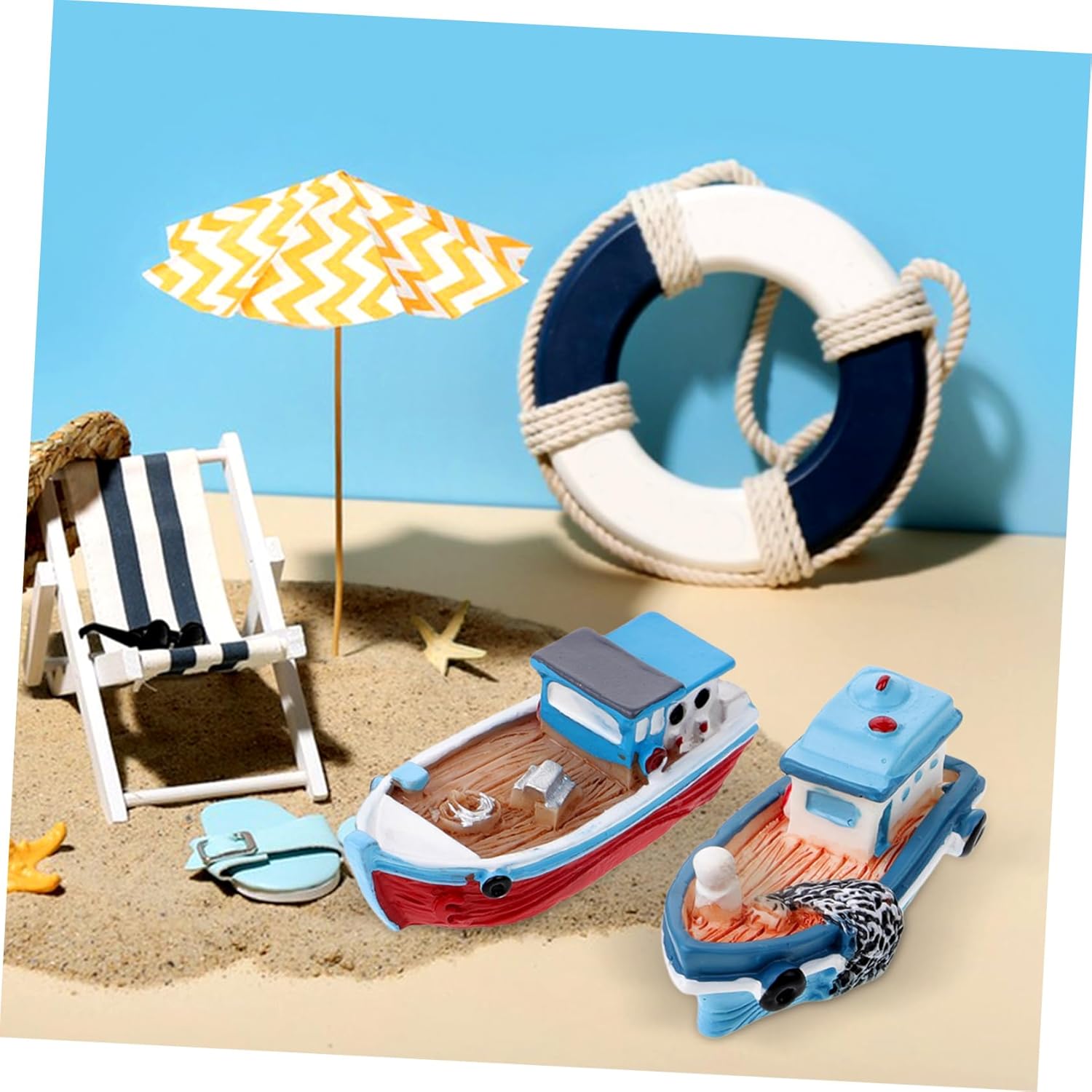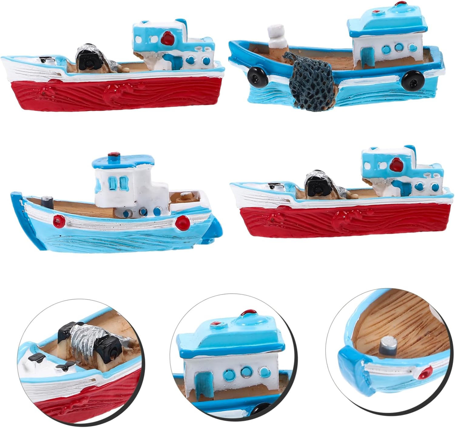 Barca in miniatura: lavorazione dettagliata, forma realistica, possono darti stato d'animo più felice ogni volta che le vedi, soprattutto per chi ama lo stile mediterraneo, la piccola barca da pesca. Decorazioni per il mare: forma semplice ma unica, colori classici, non è solo per l'arredamento, ma anche molto degno di essere collezionato, per l'arredamento della barca di casa. Decorazioni per barche in miniatura: dimensioni compatte e peso leggero, buone da posizionare in qualsiasi luogo della casa come camera da letto, salotto, sala da pranzo come decorazione, giocattoli oceanici. Decorazione : scelta di materiale in resina, pregevole fattura, questo ornamento è liscio, resistente e utilizzabile a lungo, giocattoli in miniatura. Decorazione della barca da pesca della camera da letto: applicata per la decorazione della tavola, la fotografia, gli oggetti di scena per foto, la decorazione di micro paesaggi e altri usi, sculture moderne.