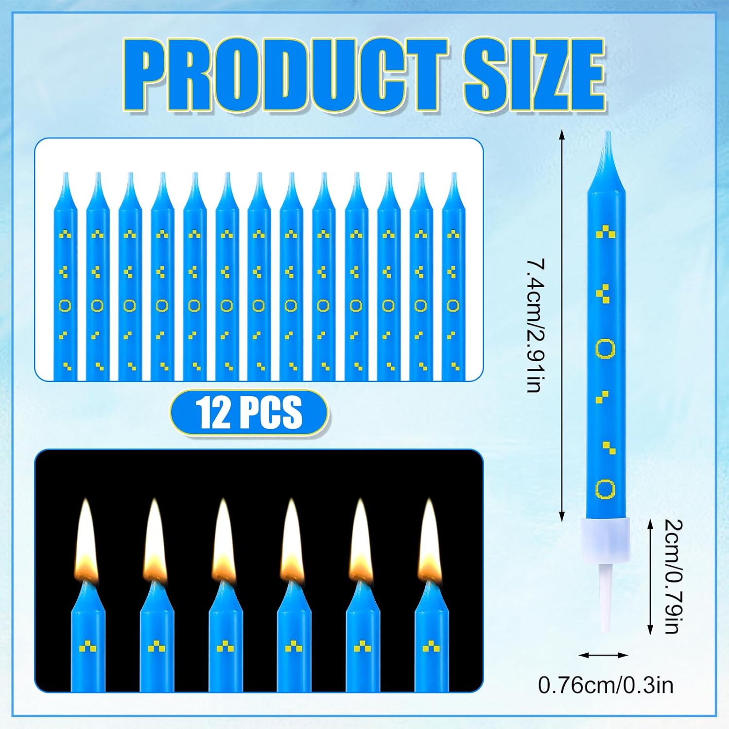 Pacchetto incluso: riceverai 12 candele di compleanno a tema hedgehog blu, quantità sufficiente per le tue esigenze di decorazione per feste o torte. Design speciale: queste candele di compleanno presentano un tema giocoso di Hedgehog blu con un affascinante anello dorato e altre stampe divertenti, rendendole un'aggiunta perfetta a qualsiasi compleanno o torta per feste. Dimensione del prodotto: ogni candela misura circa 7,4 cm di lunghezza e 0,76 cm di larghezza, con una base da 2 cm, rendendoli le dimensioni perfette per sedersi comodamente sulle torte di compleanno. Qualità premium: realizzata con paraffina di buona qualità, le nostre candele di compleanno bruciano in modo pulito e uniforme, affidabile e sicuro, facile da inserire e accendere, puoi usarlo con fiducia. Utilizzo ampio: le candele a tema blu sono perfette per varie occasioni, tra cui compleanni, feste a tema personaggio dei cartoni animati, feste per ragazzi o ragazze, anniversari, matrimoni, gradazioni, docce per bambini e altro ancora.Aggiungono un tocco speciale alle tue feste e creano ricordi indimenticabili.