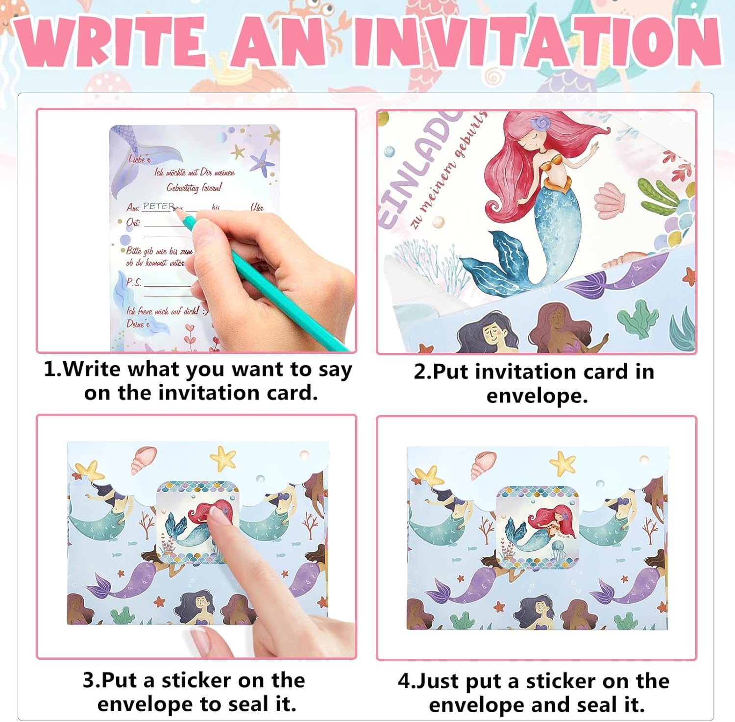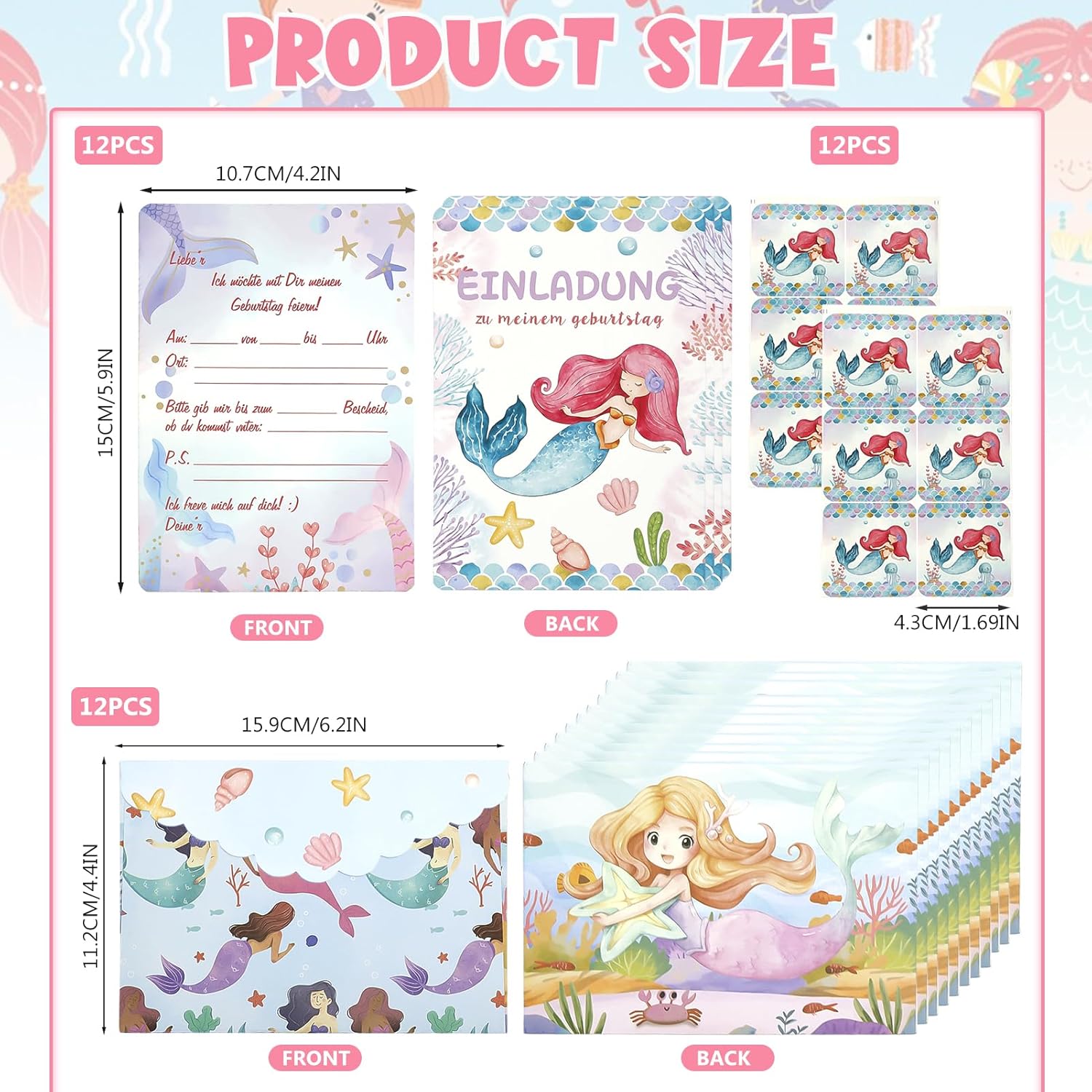 【Set di biglietti d'invito a forma di sirena 】 Volete che i bambini portino sorprese diverse? Create un ricordo unico per il vostro bambino con il nostro set di inviti a sirena. Riceverete 12 inviti di compleanno a sirena, 12 buste e 12 adesivi. Ricche combinazioni per soddisfare tutte le vostre esigenze. 【Materiale di alta qualità】Il biglietto d'invito alla festa per bambini è realizzato in carta ecologica di alta qualità e trattato con uno speciale processo di stampa. È atossico e inodore, con una stampa chiara e bella e colori brillanti, come se tu fossi in esso. Rispettosi dell'ambiente e non facili da strappare, tutti i biglietti d'invito si abbinano alle buste, rendendoli sicuri sia per i bambini che per gli adulti. 【Disegno di sirena】 Incantevoli sirene e un mondo sottomarino da sogno, con colori vivaci, vi immergeranno nell'incantevole mondo delle sirene. Perfetto per le feste di compleanno a tema sirene, i bambini adoreranno sicuramente le sirene colorate. Non vediamo l'ora che i bambini condividano questa gioia con la loro famiglia e i loro amici. 【Formato pratico 】 Un biglietto d'invito di compleanno di alta qualità stampato su due lati con un motivo a sirena sul davanti e spazio sufficiente sul retro per tutte le informazioni importanti. Può essere scritto con tutte le comuni penne, e ci sono anche buste e adesivi con lo stesso motivo a sirena, che lo rendono perfetto per un invito di compleanno perfetto. 【 Ampia gamma di applicazioni 】 Il nostro set di biglietti d'invito è adatto a varie feste, feste di compleanno per bambini, feste per ragazze, cerimonie di laurea, attività all'aperto e altre feste a tema. Una lettera di invito coordinata che invita voi o tutti gli amici del vostro bambino a condividere questa esperienza unica. Se avete domande sui prodotti che avete ricevuto, vi preghiamo di contattarci tempestivamente.