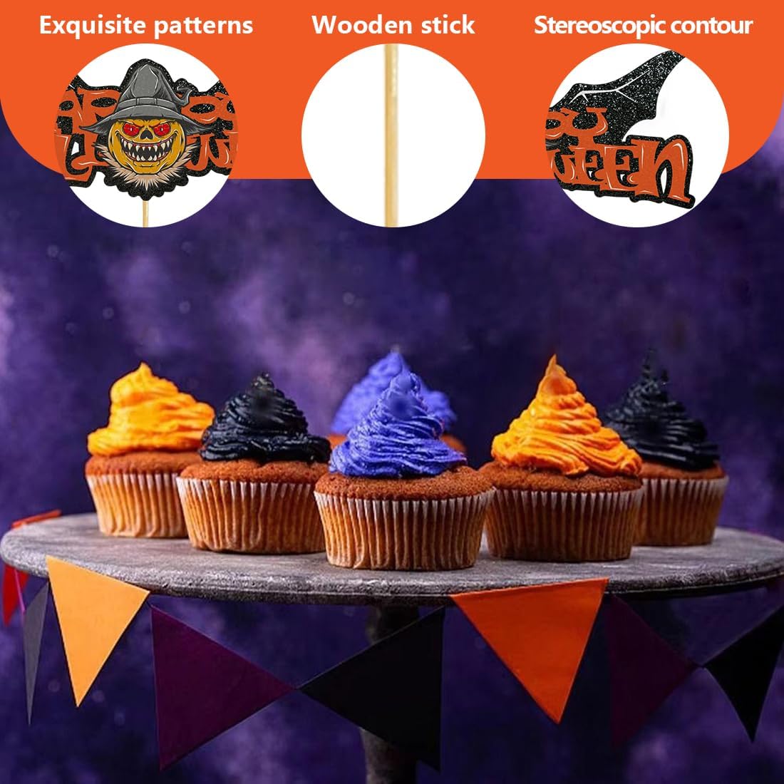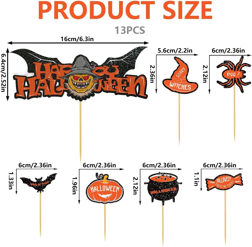 Set completo: Il pacchetto include 13 bandierine Halloween con stuzzicadenti in 6 design diversi, ideali per una decorazione di Halloween interna o per abbellire la tavola Stampa di alta qualità: Design stampato su entrambi i lati con colori vivaci su cartoncino resistente, perfetto per decorazioni durature per feste di Halloween Facile da usare: Montaggio rapido e semplice, adatto per decorare torte, cupcake, biscotti, antipasti e altro – ideale per la tua festa di Halloween Decorazione versatile: Questi topper creativi possono essere utilizzati per decorare dolci, antipasti, frutta, snack da festa e gelati, creando un'atmosfera festosa unica Nota importante: Questi topper per cupcake di Halloween non sono commestibili e non devono essere messi in forno – esclusivamente per scopi decorativi