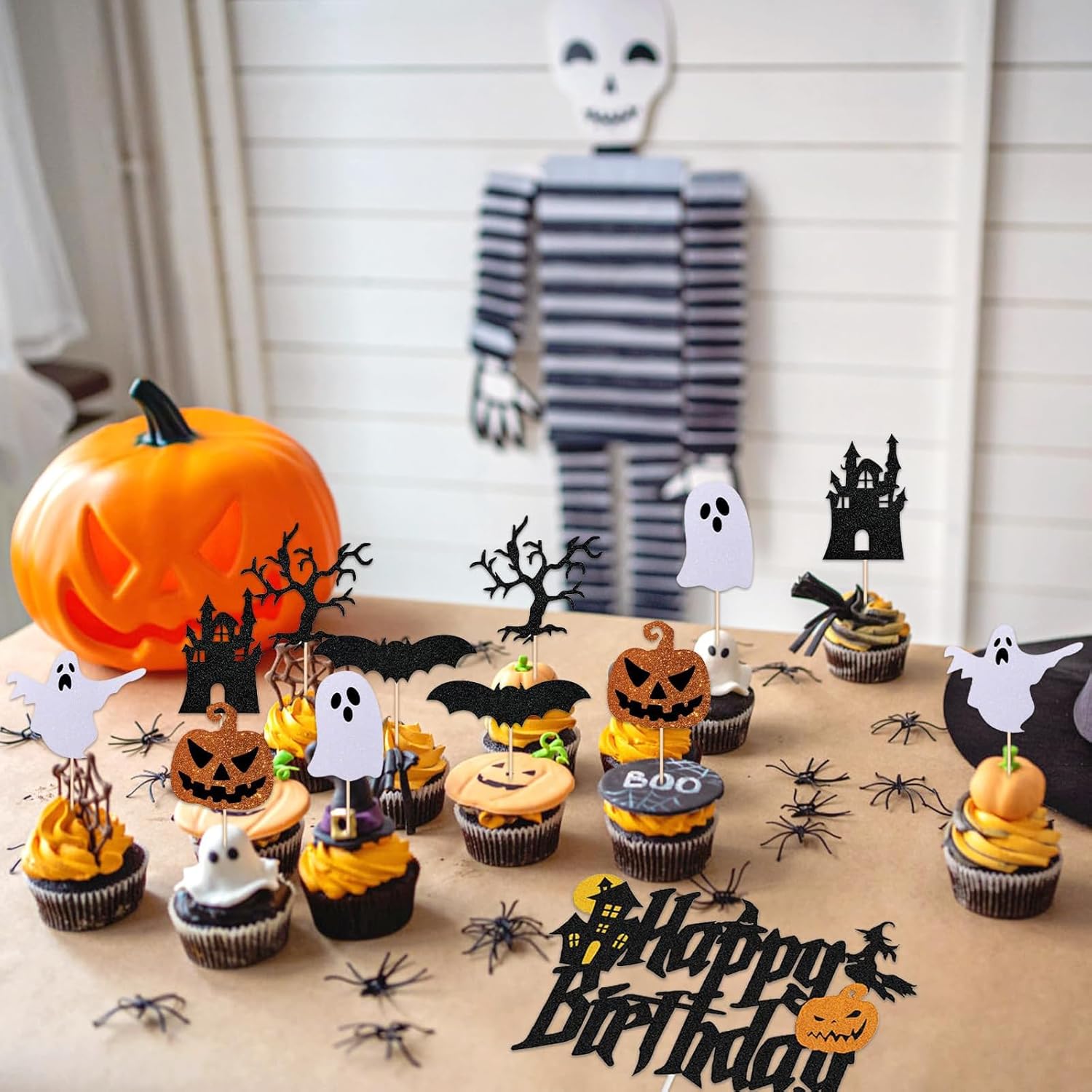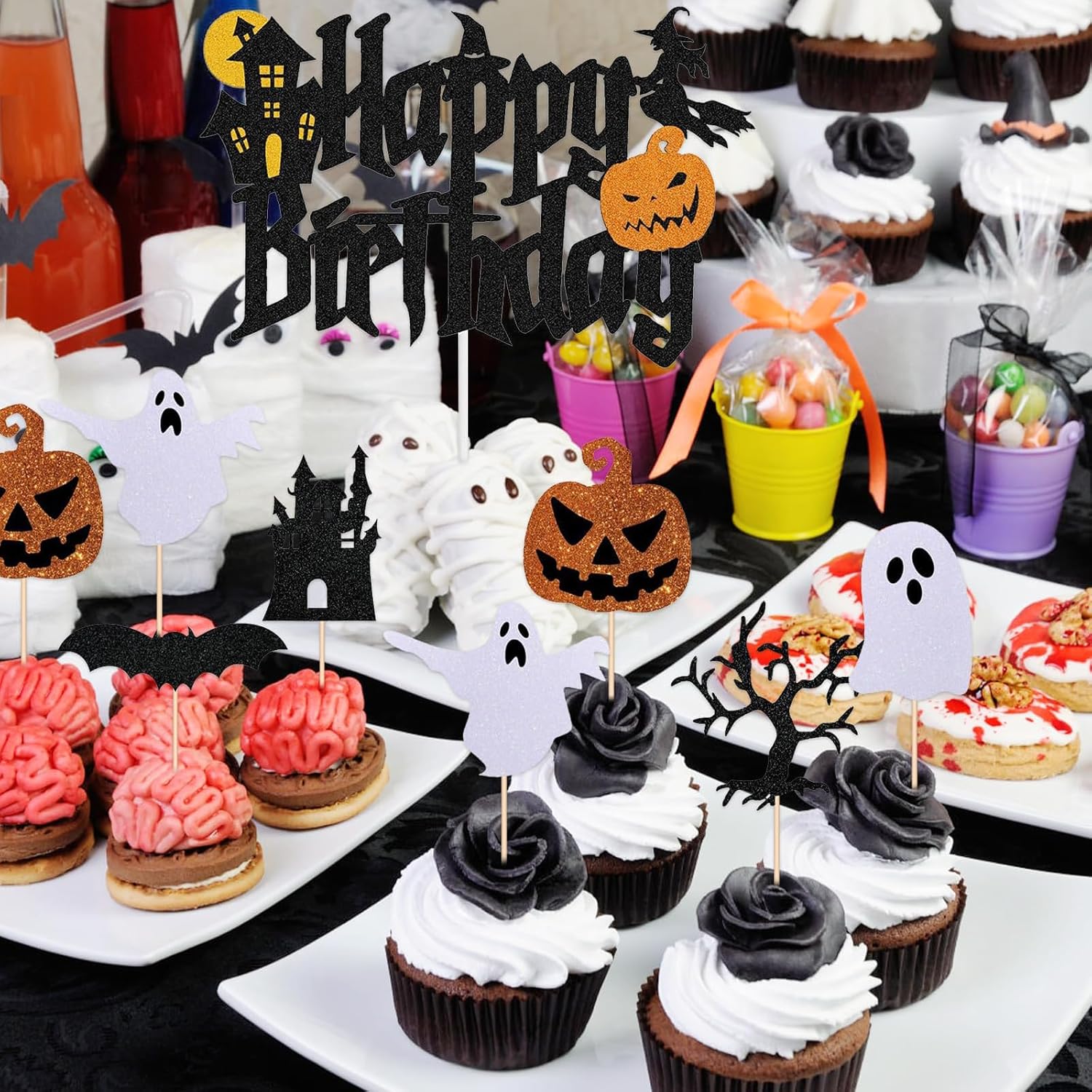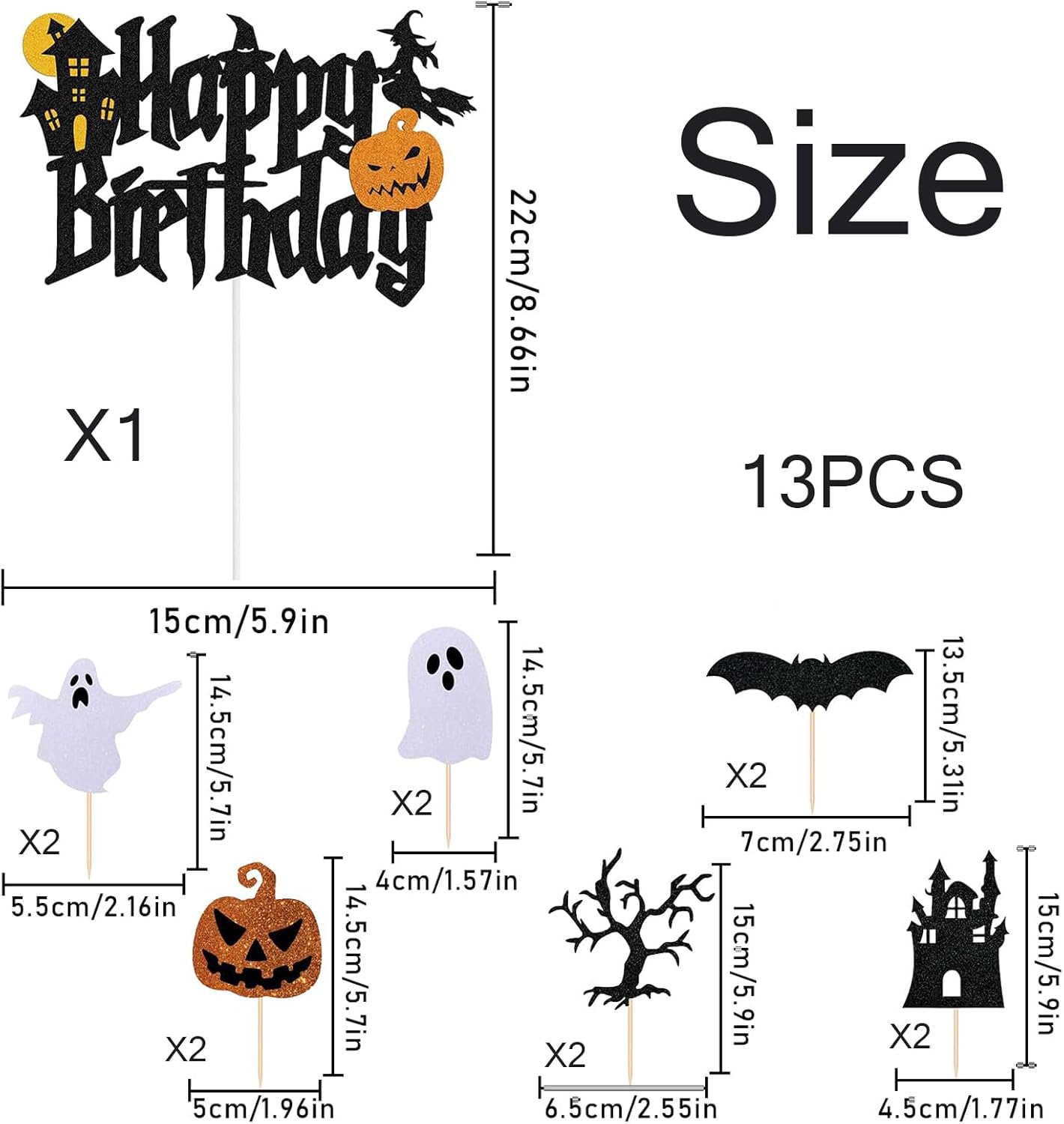 【Topper per cupcake di Halloween】 questo set di decorazioni include 1 topper per torta "Happy Birthday" e 12 topper per cupcake di Halloween (6 motivi diversi). 【Materiale di alta qualità】 questi topper per torta di Halloween sono realizzati in materiale di alta qualità. Sono adatti a vari tipi di torta e rendono la tua torta più attraente. 【Decorazioni per torte di Halloween】 questi topper per torta di Halloween sono disegnati in nero e arancione e presentano molti elementi a tema Halloween per rendere il tuo Halloween ancora più divertente. 【Facile da usare】 design unico e personalizzato con un motivo di Halloween. I topper per torta di Halloween non richiedono assemblaggio. Una volta ricevuti i nostri prodotti, puoi usarli direttamente per decorare i dessert di Halloween. 【Ampiamente usato】 perfetto per feste di Halloween, feste di compleanno, feste del Ringraziamento, riunioni di famiglia, feste a tema spettrale e carnevali.