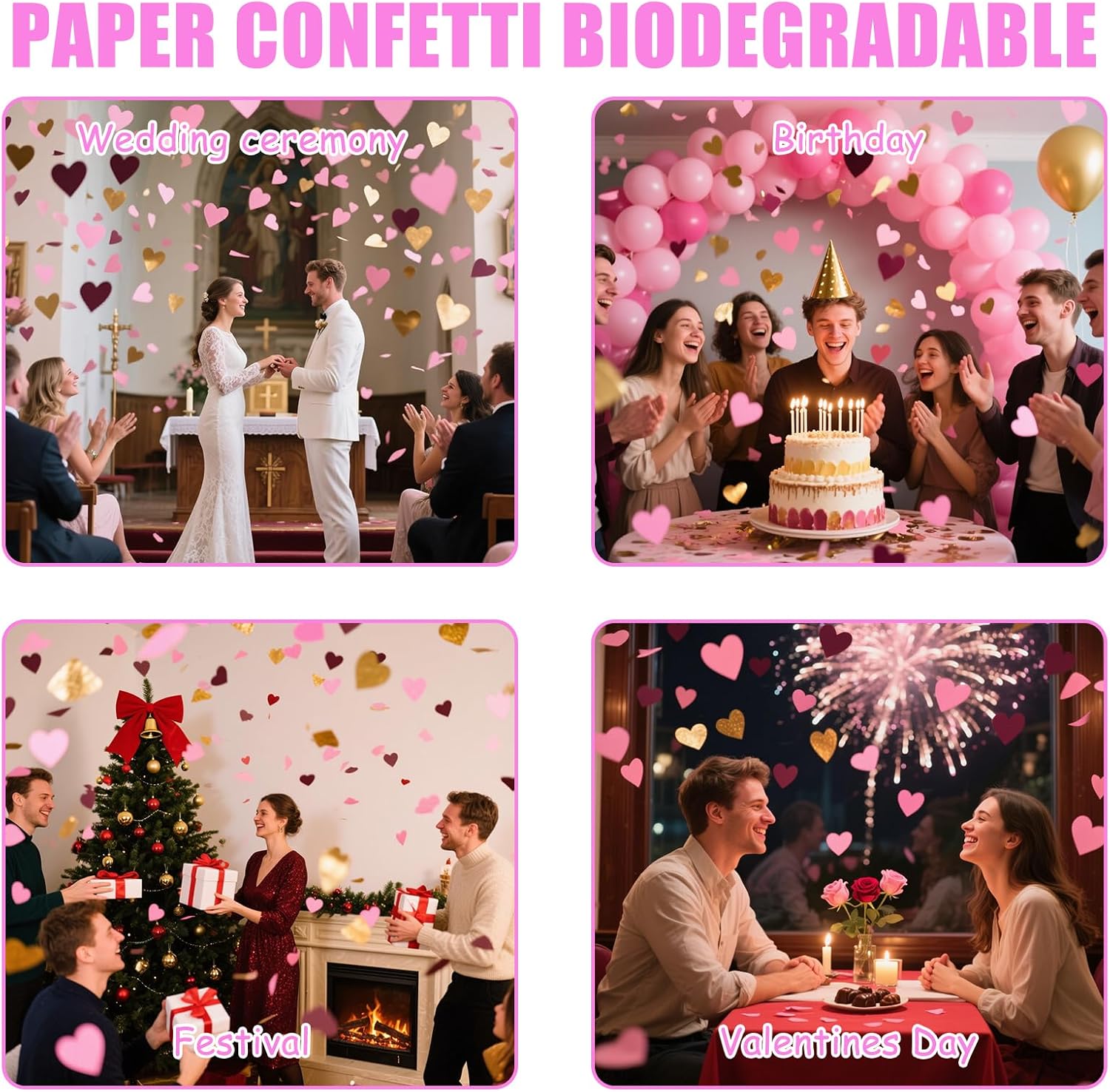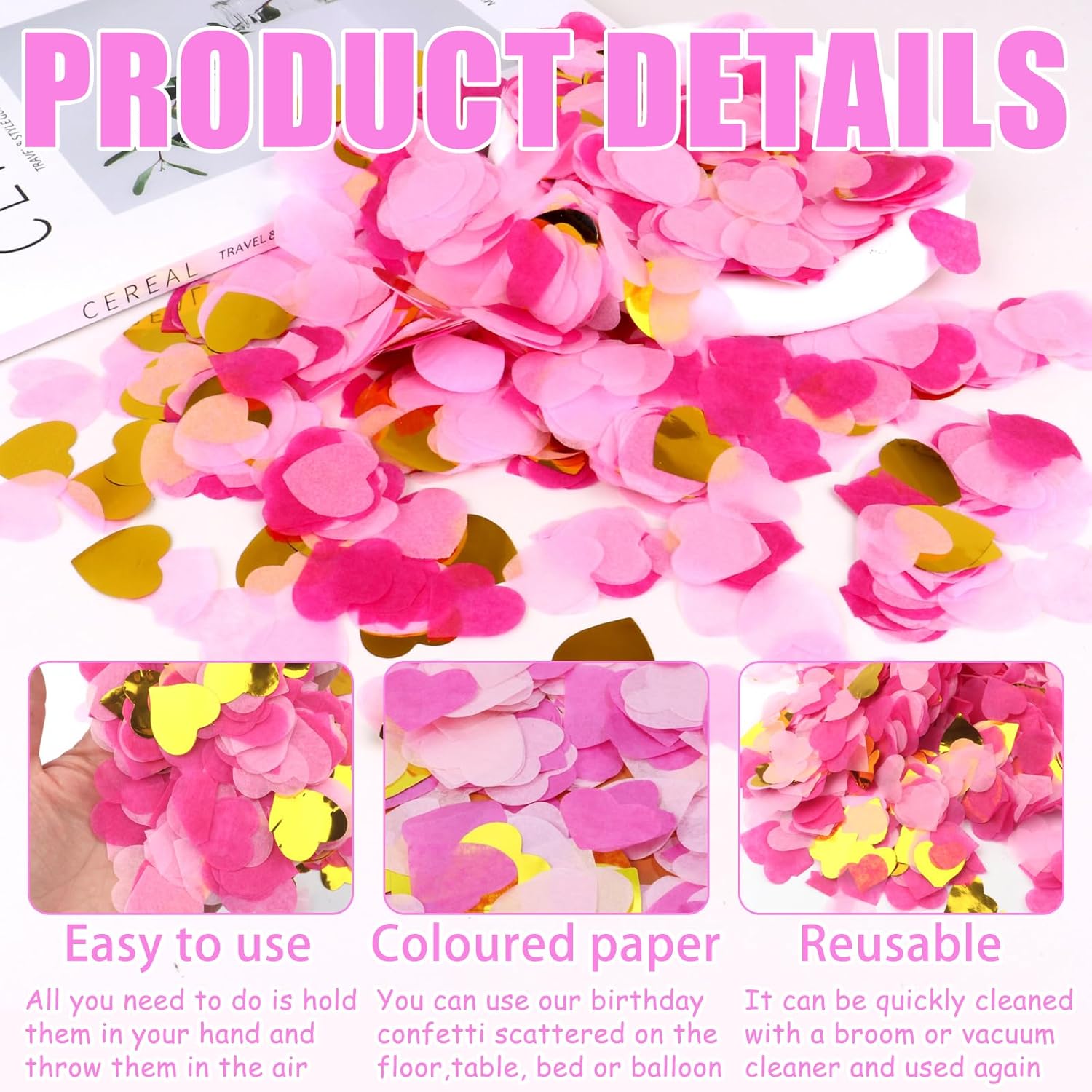 Il pacchetto include: Questo pacchetto contiene circa 13000 pezzi di coriandoli rosa e oro a forma di cuore. È la dimensione giusta per una facile dispersione e può essere utilizzato sia all'interno che all'esterno. Come parte della sessione interattiva, i coriandoli possono soddisfare le esigenze di varie occasioni come matrimoni, compleanni e feste, portandoli pieni di benedizioni e gioia. Materiale di qualità: I nostri coriandoli a forma di cuore sono realizzati in carta velina biodegradabile, leggera, portatile e riutilizzabile, che si decompone facilmente nell'ambiente naturale, aggiungendo bellezza alle vostre celebrazioni e riducendo l'impatto ecologico. Design a forma di cuore: I nostri coriandoli nuziali sono disegnati con cuori dorati e rosa dalle forme simpatiche, perfetti per spargere i coriandoli in aria durante i matrimoni e creare un'atmosfera romantica e bella, aggiungendo un senso speciale di cerimonia ai momenti felici degli sposi. Facile da usare e da pulire: Questi coriandoli sono leggeri, compatti e facili da pulire, sia con una scopa che con un aspirapolvere, assicurando che possiate pulire facilmente dopo il vostro evento. Ampia applicazione: Questi coriandoli biodegradabili sono perfetti per una varietà di occasioni come feste di compleanno, anniversari, matrimoni, San Valentino e celebrazioni, i coriandoli biodegradabili possono essere spruzzati su tavoli, pavimenti o letti come splendide decorazioni, riempiti con palloncini di nozze o posizionati sul fondo di una confezione regalo per un tocco estetico aggiunto.