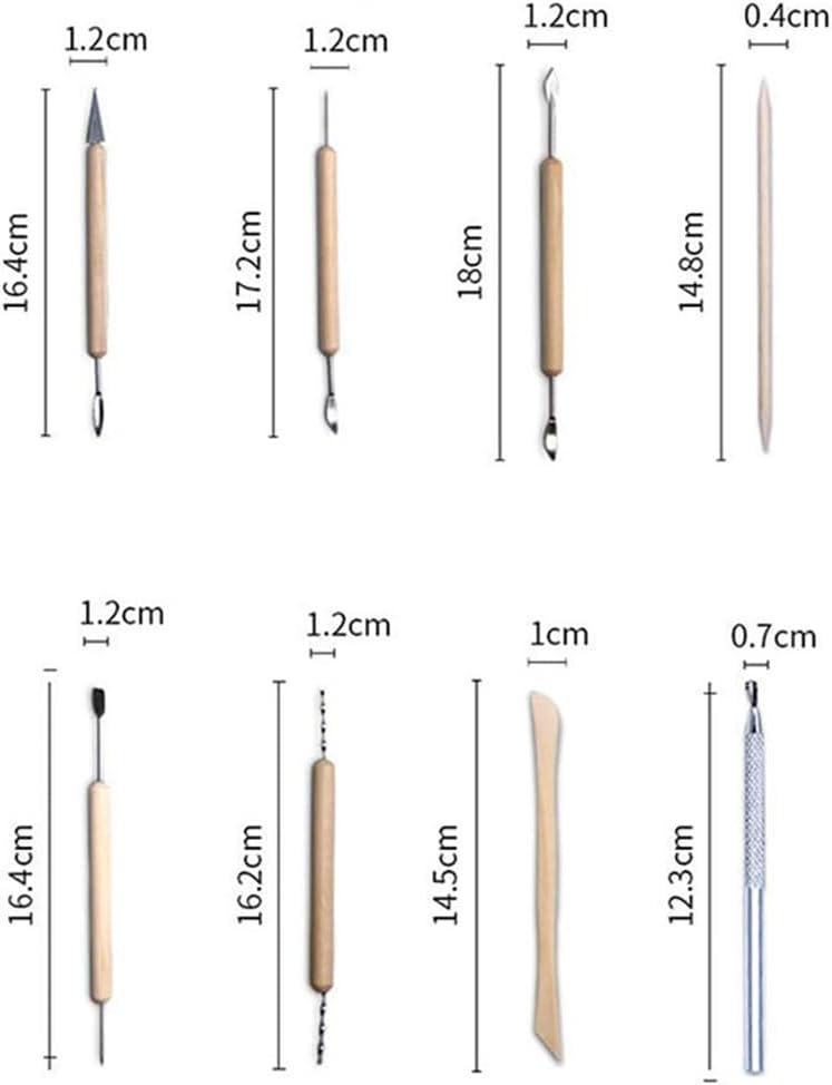 Durabilità: realizzati in legno, questi strumenti in argilla sono costruiti per durare, garantendo che possano resistere all'uso regolare senza alcun segno di usura Artigianato squisito: con i loro design precisi e la raffinata maestria, questi strumenti per scolpire la ceramica ti consentono di intricare dettagli e ottenere risultati dall'aspetto professionale nei tuoi progetti con l'argilla Funzionamento semplice: progettati per un'esperienza user-friendly, questi strumenti per scultura sono dotati di maniglie ergonomiche che forniscono una presa comoda, rendendo facile sia per i principianti che per gli esperti modellare e modellare l'argilla con precisione Varietà: questo kit di strumenti per scolpire la ceramica comprende 14 pezzi diversi, offrendo un'ampia gamma di opzioni per i tuoi sforzi artistici. Sperimenta varie forme e dimensioni per creare capolavori unici Ampia applicazione: che tu stia lavorando con argilla, fondente, decorazioni per torte o qualsiasi altro progetto artigianale, questi versatili strumenti per scultura sono un'aggiunta indispensabile alla tua cassetta degli attrezzi creativa