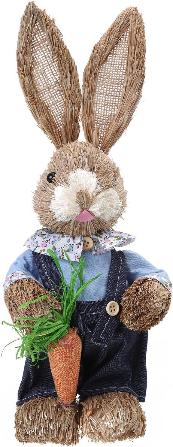 14 pollici di paglia artificiale coniglio in piedi con uova di carota, decorazione da giardino per feste a tema, coniglio in piedi