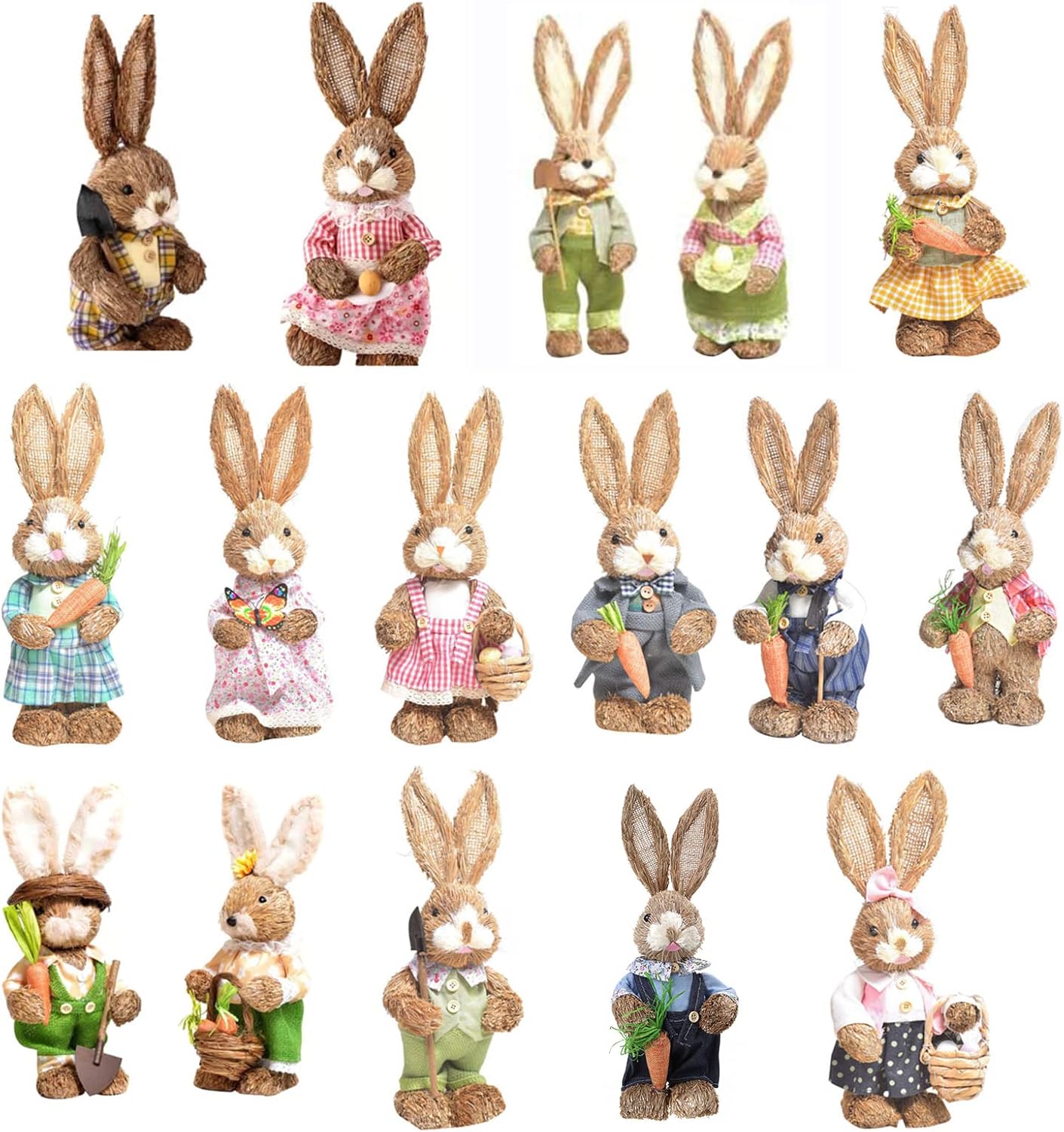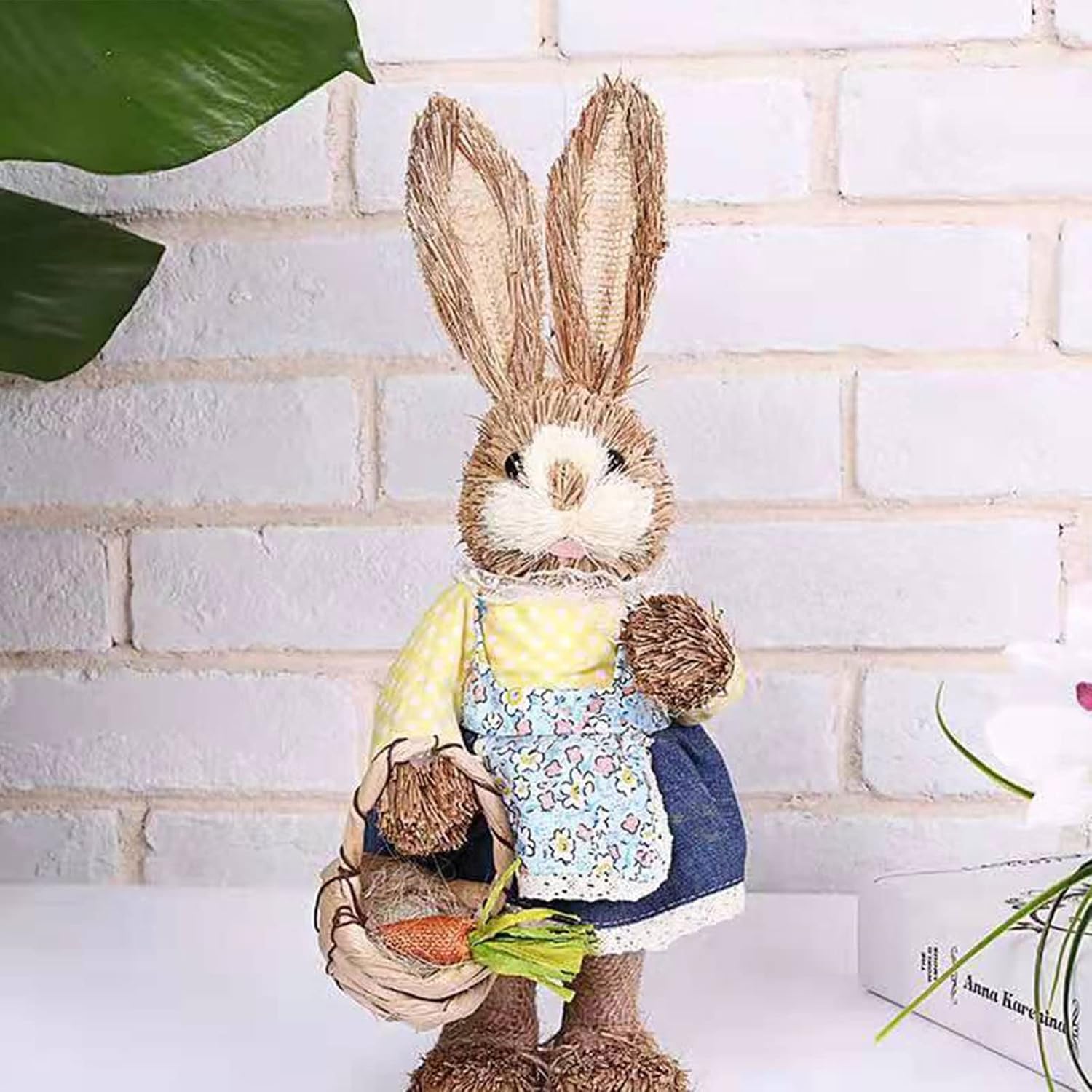 Conigli e ravanelli sono un elemento di moda per e per la decorazione pasquale Coniglio vestito è perfetto per la primavera e aggiunge divertimento al nuovo anno sicuro e non tossico, con forme speciali sono essenziali per la decorazione Puoi mettere sul tavolo, sulla scrivania e sul comodino Questa decorazione coniglietto di paglia è un modo dolce per creare un sottile mago primaverile alla tua festa di Pasqua