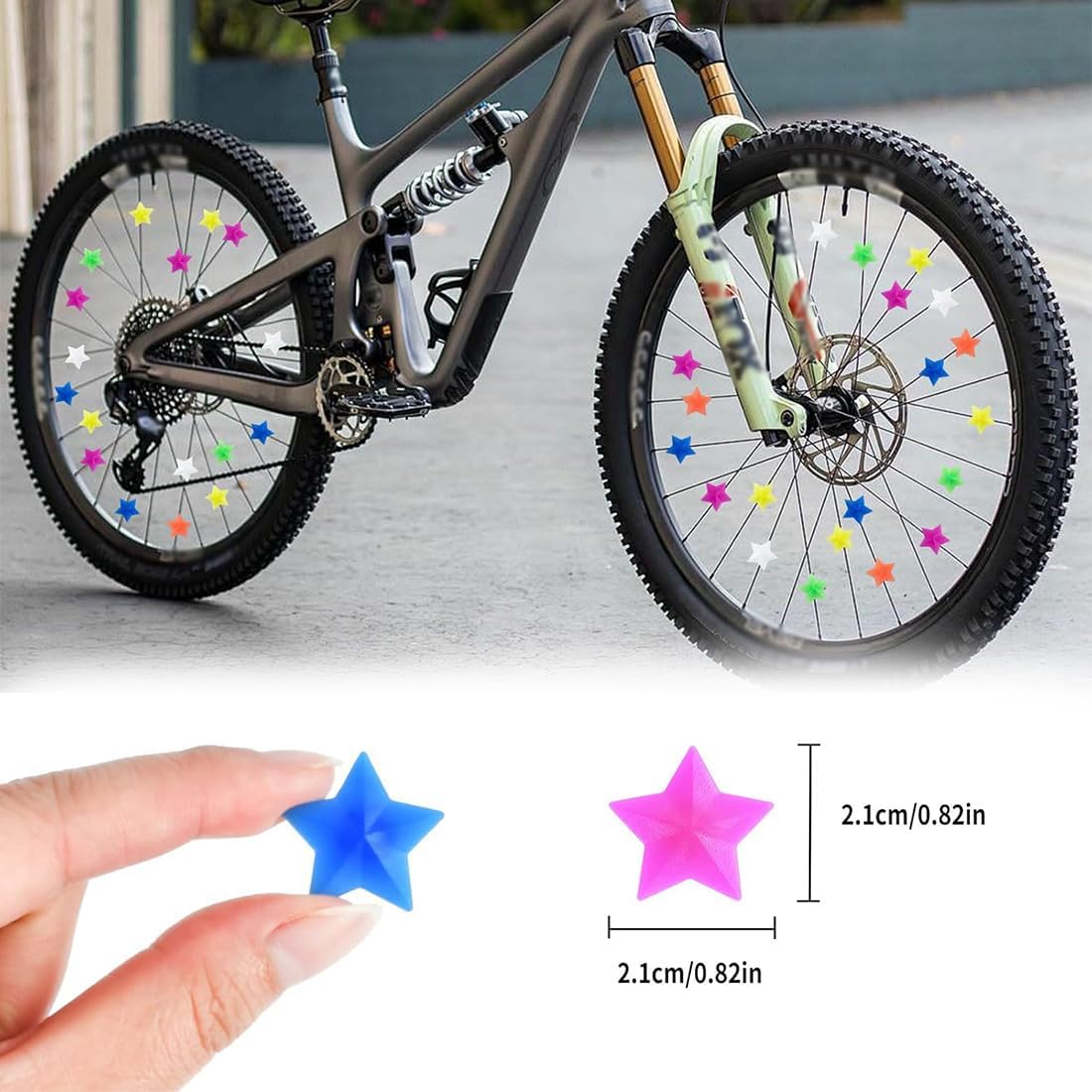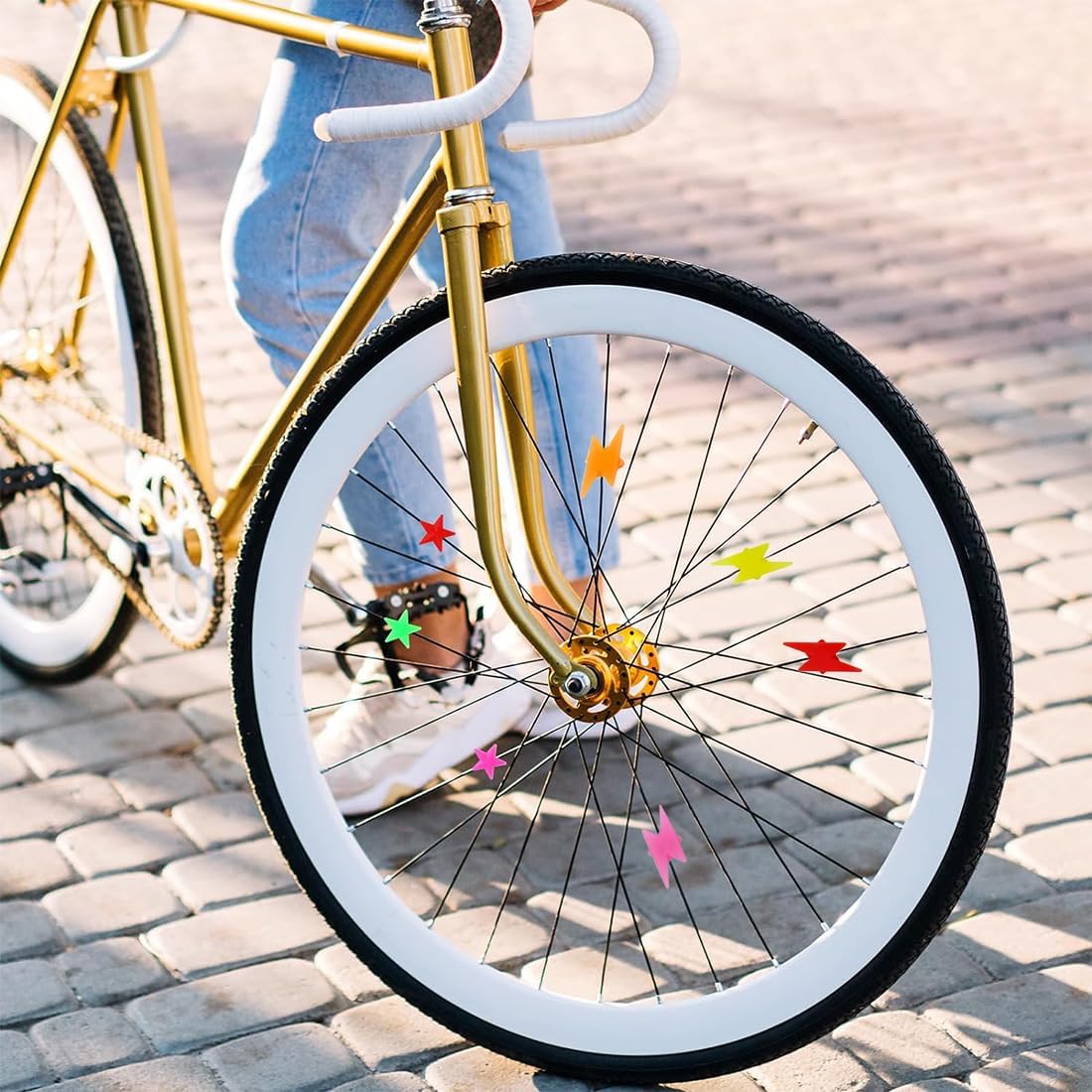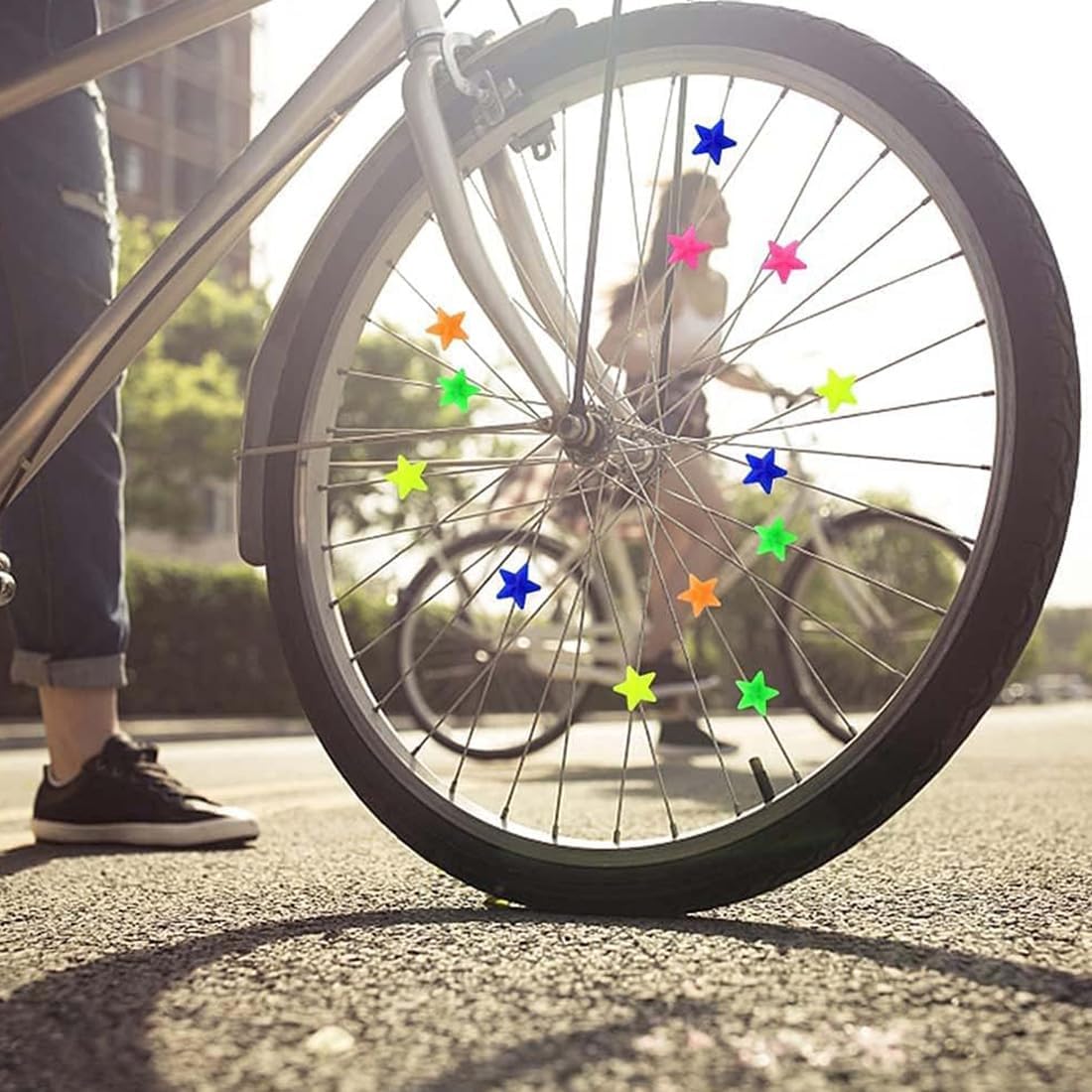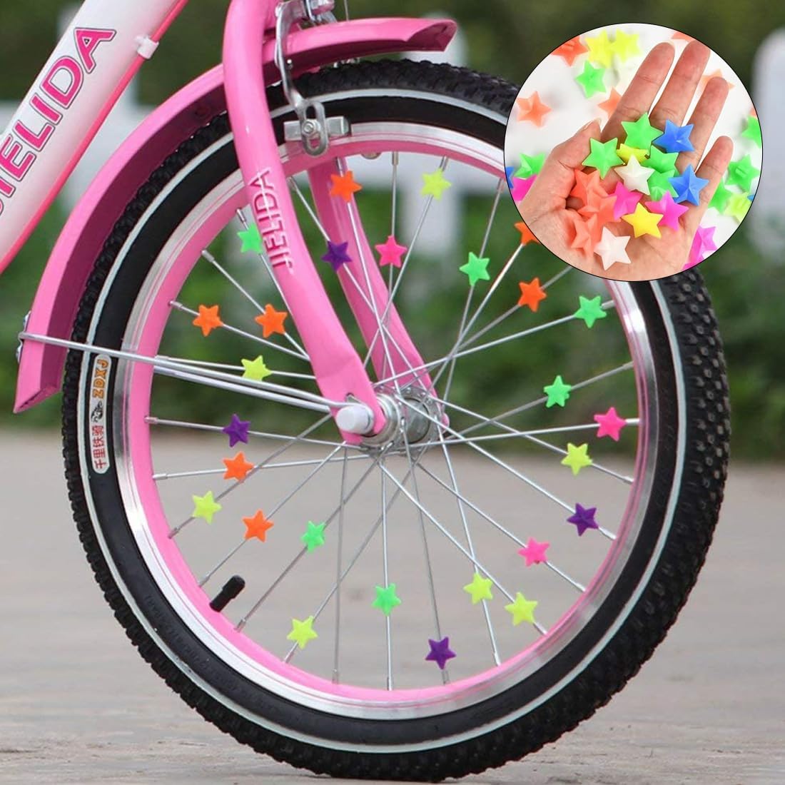 Ravviva le tue gite in bicicletta con 144 perline colorate per raggi, tra cui 72 stelle e 72 fulmini. Realizzati in materiale resistente e resistente ai colori, si attaccano facilmente a qualsiasi bicicletta e creano divertenti schizzi di colore e clic. Crea una ruota vivace e colorata con il nostro set di 144 perline per raggi di bicicletta. Il mix di forme a stella e a fulmine non solo aumenta l'estetica, ma produce anche un suono piacevole che rende ogni viaggio un'esperienza speciale. Aggiorna qualsiasi bici con le nostre perline per raggi facili da installare! Questo set comprende 144 pezzi a forma di stella e fulmine, realizzati in un materiale durevole ed elastico che resiste allo sbiadimento. Perfetto per aggiungere stile alle bici per bambini. Aggiungi un tocco di magia ai tuoi giri in bicicletta con queste colorate perline per raggi! Ogni confezione contiene 144 perline dalle forme divertenti e dai colori vivaci, resistenti al sole e alla pioggia, garantendo bellezza e divertimento duraturi per tutte le tue avventure in bicicletta. Festeggia il ciclismo con le nostre perline per raggi da bicicletta divertenti e resistenti, ideali per compleanni o feste dei bambini. Questo set da 144 pezzi, comprese stelle e fulmini, è facile da montare e trasforma le ruote della bicicletta in incantevoli meraviglie che producono suoni.