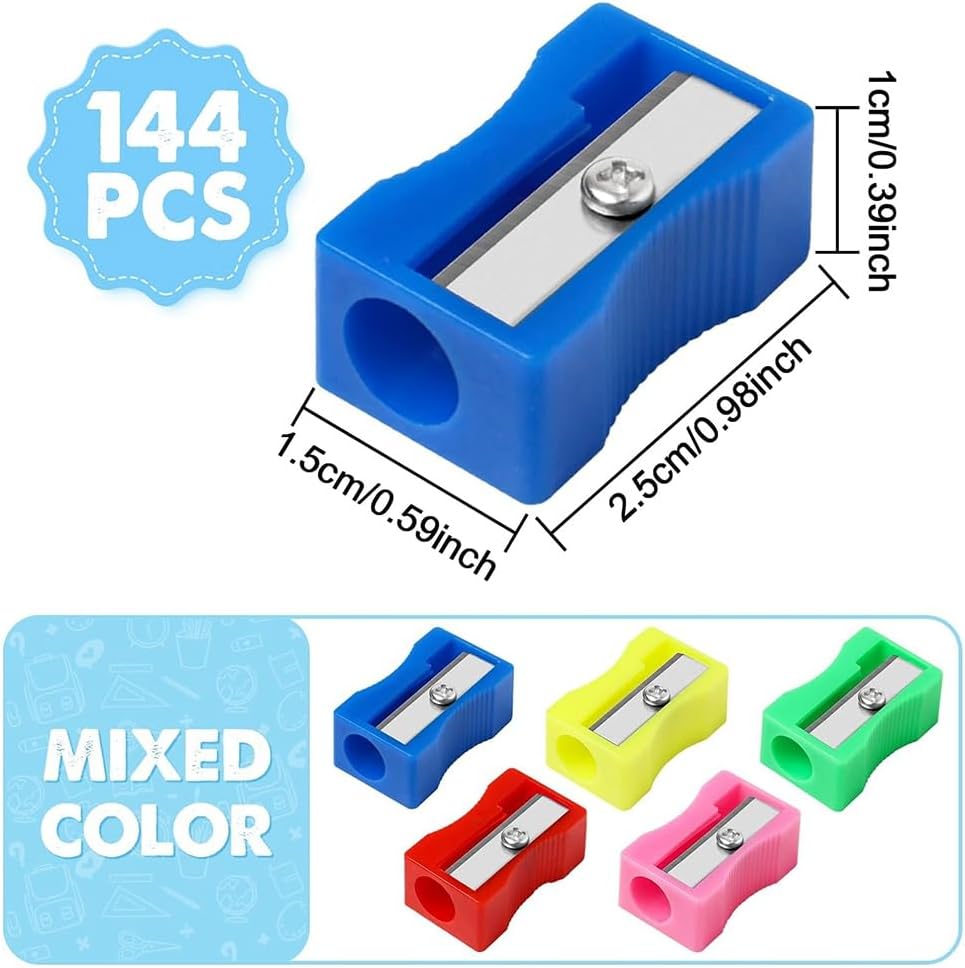 Confezione da 144 temperamatite:Ogni ordine include 144 temperamatite manuali in colori assortiti.I colori includono mini temperamatite rosso, blu, spillo, giallo e verde, l'affilatura di una matita è resa divertente dai colori vivaci Temperamatite in plastica con lame in metallo: il mini temperamatite è realizzato con lame in plastica e metallo, la in metallo è affilata e non si allenta facilmente, ora non dovrai più preoccuparti delle punte delle matite appuntite Temperamatite facile da usare: entrambi i lati di ogni temperamatite portatile sono strutturati. i temperamatite sfusi, tieni entrambi i lati, non facili da far scorrere, gira delicatamente la matita, molto liscio Formato tascabile andamp; facile da trasportare: temperamatite sfusi circa () 2,5 x 1,5 x 1 cm/ 0,98 x 0,59 x 0,39 pollici. I temperamatite sfusi li rendono comodi da in tasca, nello scolastico o nell'astuccio Temperamatite tascabile per la scuola: il manuale del temperamatite colorato è perfetto per studenti o artisti, per disegnare, scrivere, colorare.,È portatile e puoi portarlo ovunque