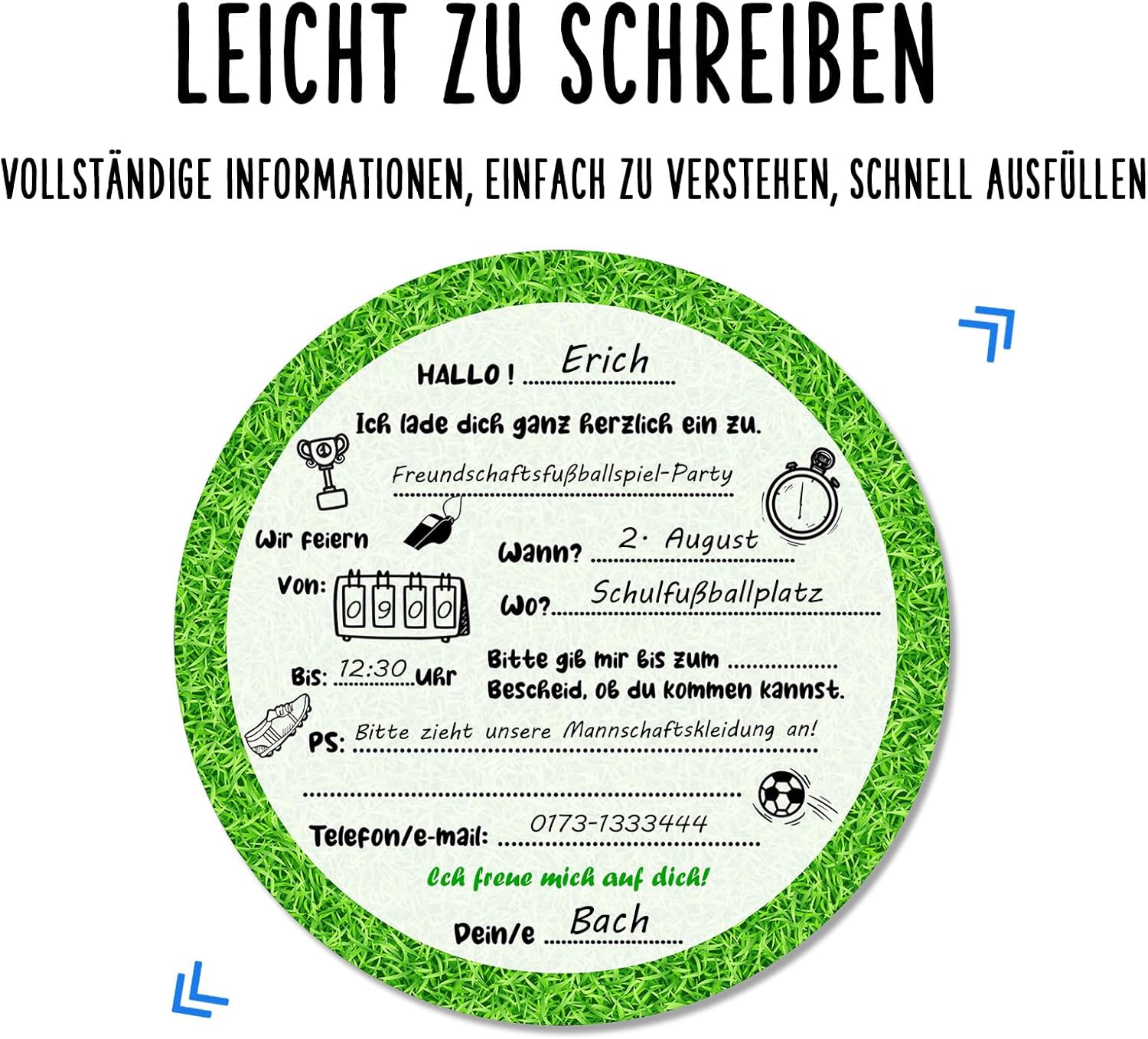 Dimensioni e quantità: biglietti di invito rotondi per compleanno per bambini, riceverete 15 pezzi. Ideale per feste di compleanno più grandi. Applicazione: inviti di compleanno per ragazzi e ragazze. Progettato per la distribuzione tra i bambini, con spazio sul retro per i dettagli delle feste per bambini e genitori. Motivo: perfetto per ragazzi e ragazze appassionati di calcio. Frontale personalizzato per gli invitati senza la necessità di buste. Retro con testo di invito, facile da scrivere con qualsiasi penna standard. Incredibili: biglietti d'invito da calcio realizzati in carta patinata opaca da 300 g/m², per un'elevata resistenza all'uso dei bambini. Versatile: che si tratti di partite di calcio, feste di gioco, compleanno per bambini, inviti a scuola, decorazione di compleanno, feste in giardino, feste a tema, feste a tema, feste estive, feste giovanili, ritorno a scuola o festa dei bambini, i nostri biglietti di invito sono la scelta perfetta per gli amici di ragazzi e ragazze.