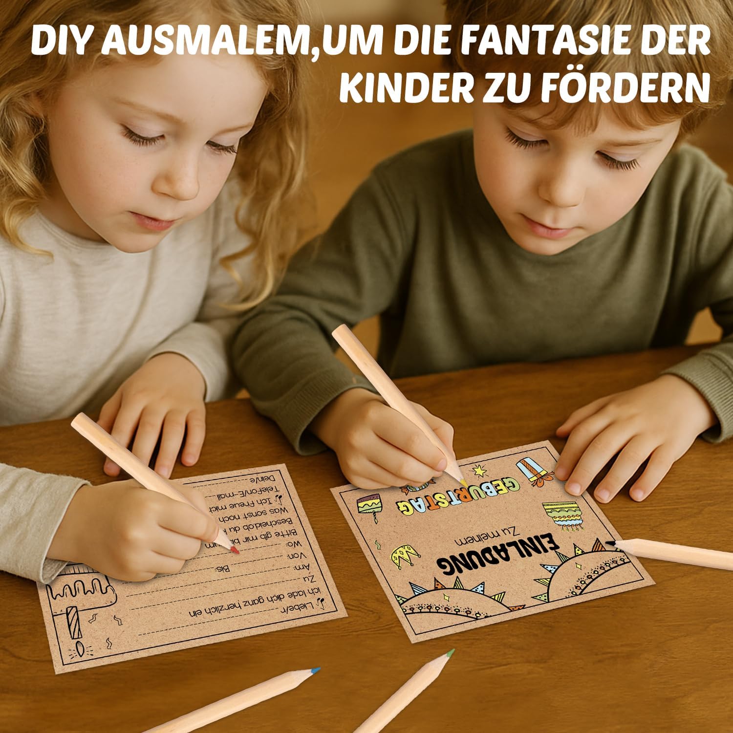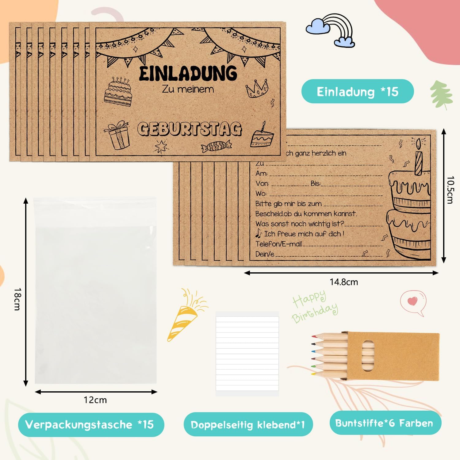 Contenuto della confezione: il set contiene 15 biglietti di invito per il compleanno dei bambini, 15 sacchetti di plastica, 6 matite colorate e molti nastri adesivi ed è quindi un punto di contatto centrale per tutte le vostre esigenze per la produzione di biglietti di invito per il compleanno dei bambini. Le matite colorate sono disponibili nei colori di base rosso, giallo, blu e verde e sono perfette per scarabocchiare e scrivere messaggi di festa sugli inviti di compleanno per bambini, ragazze o inviti, compleanni per bambini. Progettati con cura: i biglietti di invito per il compleanno dei bambini dispongono di un grazioso piccolo motivo di animali e il design neutro è adatto sia per inviti di compleanno sia per ragazzi che per ragazze. Lo sfondo in carta kraft e le vivaci illustrazioni rendono ogni invito di compleanno divertente e personale ai bambini. Un'esperienza creativa fai da te: ogni invito per il compleanno dei bambini offre spazio sufficiente per i bambini per scrivere i propri messaggi di festa. Con 6 matite colorate, i bambini possono giocare liberamente e trasformare i normali biglietti di invito di compleanno per bambini in opere d'arte uniche, stimolando pienamente la loro creatività e le loro abilità pratiche. Design in dimensioni standard: questi biglietti di invito per bambini hanno una dimensione standard di 14,8 cm x 10,5 cm, che è la scelta giusta per consentire ai bambini di scriverli e decorarli. Il nastro adesivo abbinato misura 8 mm x 100 mm e può essere utilizzato per incollare decorazioni di cioccolato, inviti di compleanno per bambini e bambine. Perfetta scelta regalo: questo set di inviti di compleanno per bambini non è solo ideale per organizzare una festa, è anche un regalo pratico e utile per i genitori che pianificano feste di compleanno per i loro bambini. I bellissimi biglietti di invito per il compleanno dei bambini, gli accessori lo rendono una sorpresa perfetta per i bambini e li aiutano a preparare facilmente una festa indimenticabile.