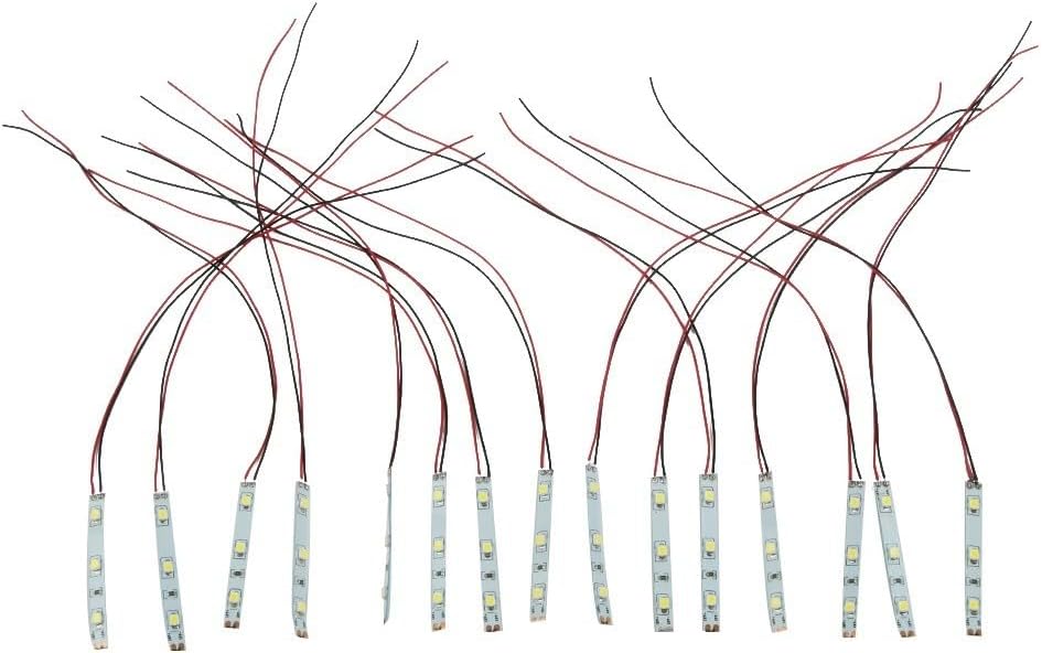 Installazione flessibile e facile: la striscia di luci LED è precablata e viene fornita con retro autoadesivo, che consente una facile installazione e un'applicazione flessibile. Utilizzo: ideale per costruire layout, case delle bambole, stanze in miniatura o accessori laterali per modellini ferroviari. Illuminazione uniforme: con un angolo di visione di 120°, la striscia luminosa a LED fornisce un'illuminazione uniforme e uniforme per i tuoi modelli. Ampia compatibilità: la striscia luminosa a LED è compatibile con fonti di alimentazione CA e CC, con una gamma di tensione diretta da 12 V a 18 V. Design compatto: misura 50 mm di lunghezza, 8 mm di larghezza e 5 mm di altezza, la striscia luminosa a LED è compatta e si adatta bene in diversi spazi. Inoltre viene fornito con un cavo lungo 20 cm per una comoda connettività.