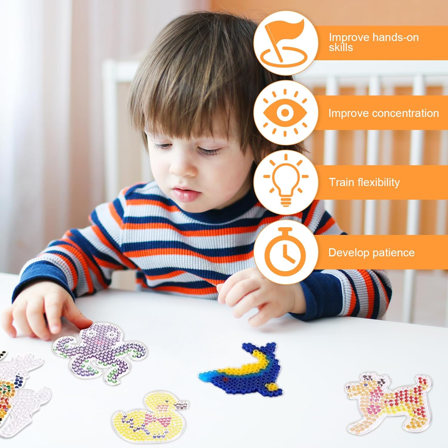 【Vari Modelli Di Design】: Contiene 15 modelli diversi, che comprendono simpatici animali come cani, gatti, elefanti, ecc., nonché personaggi come ragazzi e ragazze, per soddisfare una varietà di esigenze creative e godere del senso di realizzazione portato dal fatto a mano 【Materiali Di Alta Qualità】: La tavola per unghie con perline stirabili è realizzata in plastica ecologica, atossica e inodore, il materiale è robusto e durevole, non si rompe facilmente e non si scioglie né si piega durante la stiratura, garantendo un utilizzo stabile e a lungo termine. 【Compatibilità Universale】: Adatto per perline stirabili da 5 mm, offre possibilità di design illimitate, sia che si tratti di realizzare piccoli e delicati accessori o di creare grandi e squisiti dipinti decorativi, è facilmente realizzabile 【Creatività Potente】: Il processo artigianale può migliorare efficacemente le abilità pratiche, aumentare la concentrazione, esercitare la destrezza, coltivare la pazienza e la calma e stimolare notevolmente la creatività 【Scelta Regalo Perfetta】: È una scelta regalo perfetta per compleanni, Natale, feste o la festa dei bambini, consentendo al destinatario di sperimentare le infinite possibilità di creatività e divertimento mentre si gode il processo di artigianato fatto a mano.