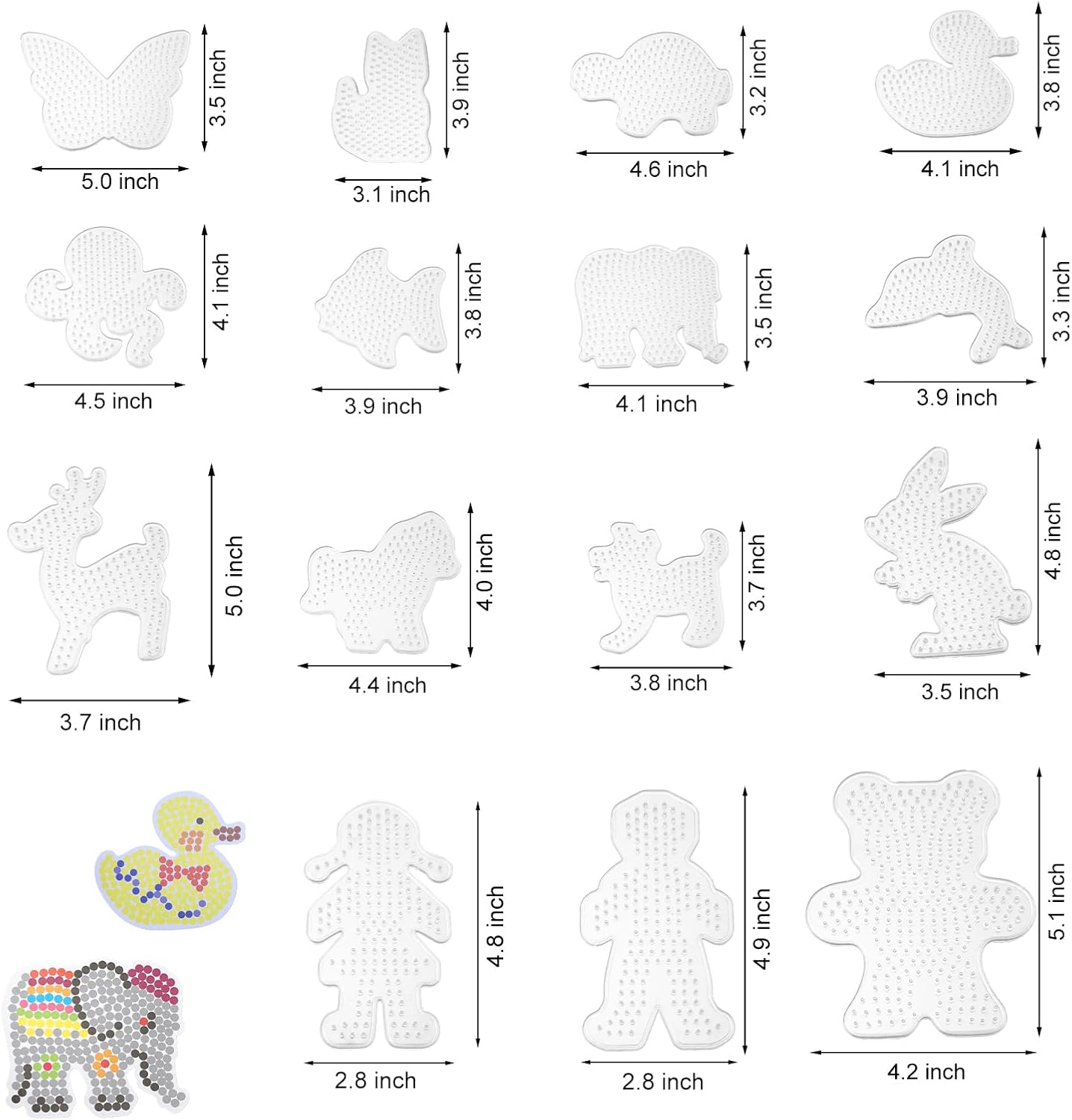 Vari Modelli Di Design: Contiene 15 modelli diversi, che comprendono simpatici animali come cani, gatti, elefanti, ecc., nonché personaggi come ragazzi e ragazze, per soddisfare una varietà di esigenze creative e godere del senso di realizzazione portato dal fatto a mano Materiali Di Alta Qualità: La tavola per unghie con perline stirabili è realizzata in plastica ecologica, atossica e inodore, il materiale è robusto e durevole, non si rompe facilmente e non si scioglie né si piega durante la stiratura, garantendo un utilizzo stabile e a lungo termine. Compatibilità Universale: Adatto per perline stirabili da 5 mm, offre possibilità di design illimitate, sia che si tratti di realizzare piccoli e delicati accessori o di creare grandi e squisiti dipinti decorativi, è facilmente realizzabile Creatività Potente: Il processo artigianale può migliorare efficacemente le abilità pratiche, aumentare la concentrazione, esercitare la destrezza, coltivare la pazienza e la calma e stimolare notevolmente la creatività Scelta Regalo Perfetta: È una scelta regalo perfetta per compleanni, Natale, feste o la festa dei bambini, consentendo al destinatario di sperimentare le infinite possibilità di creatività e divertimento mentre si gode il processo di artigianato fatto a mano.