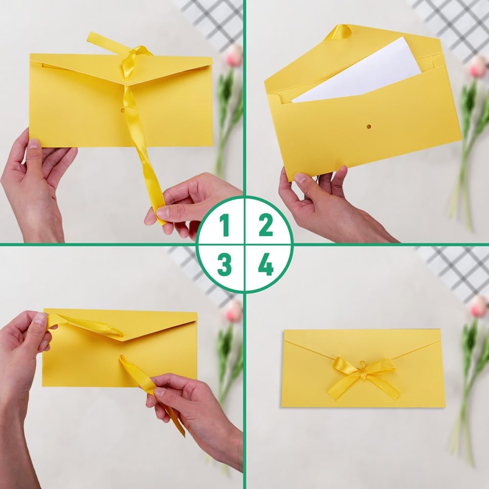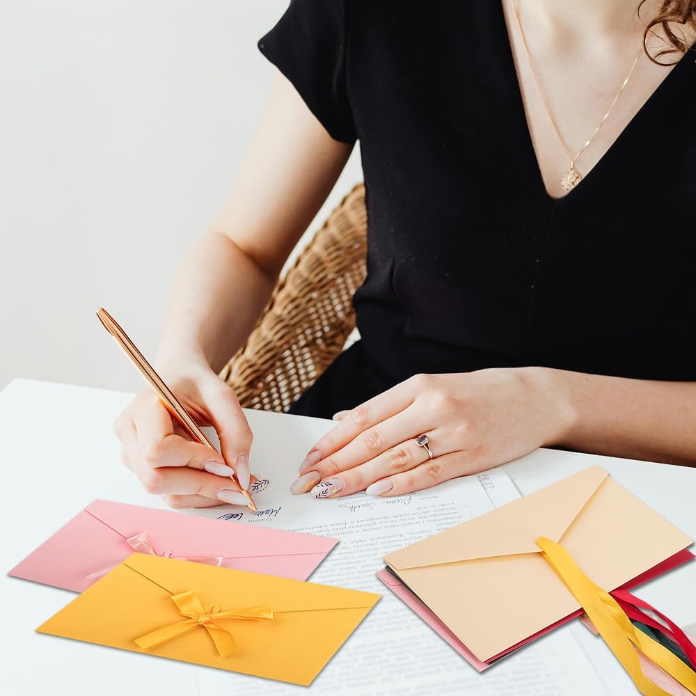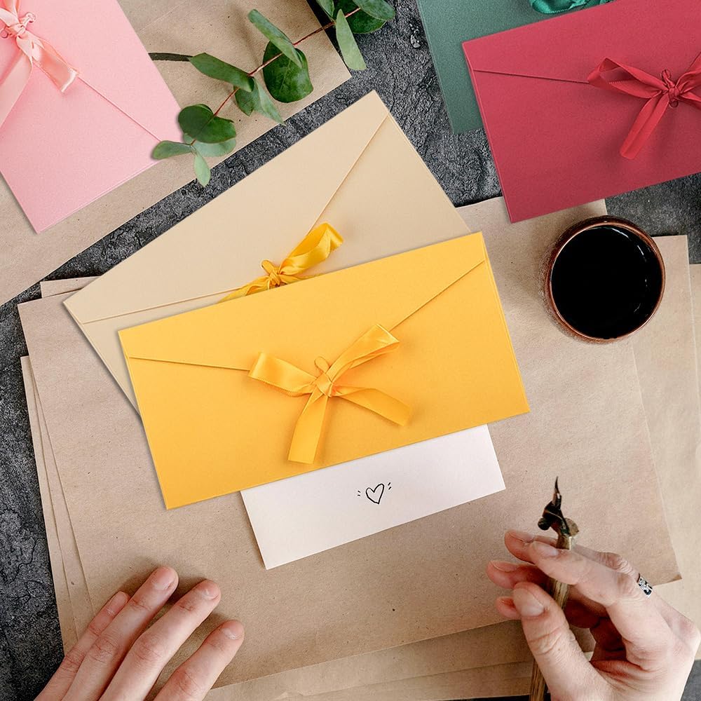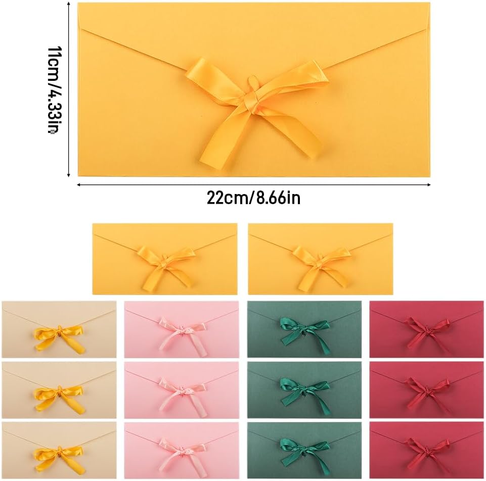 Design a ribbon: riceverete 15 buste colorate per lettere, di cui 5 colori diversi, che possono soddisfare le esigenze di varie feste, festival e altri eventi. ogni busta è dotata di un nastro dello stesso colore, che può essere annodato in un elegante fiocco per la chiusura, rendendola pratica e bella Buste a fiocco colorate: queste buste lettera fiocco colorate hanno una copertina vuota, perfetta per gli amanti del fai-da-te, per disegnare qualsiasi immagine o scrivere qualsiasi cosa vogliate dire, aggiungere un tocco personale alla vostra lettera ed esprimere meglio la vostra sincerità Materiale di alta qualità: le buste da lettera colorato sono realizzate in carta perlata morbida e di alta qualità, resistente e durevole, con una buona impermeabilità e protezione, per proteggere le vostre lettere da rotture o deformazioni Auguri perfetti: inviate i vostri migliori auguri ai vostri cari con queste buste colorate. che si tratti di vacanze, compleanni, matrimoni o qualsiasi altra occasione speciale, potrete esprimere i vostri auguri più sentiti in modo elegante e raffinato Usi multifunzionali: le buste per lettere colorato sono adatte per feste, biglietti di compleanno, biglietti regalo personalizzati, biglietti di ringraziamento, inviti, biglietti d'auguri, biglietti di natale, buste per il ringraziamento, biglietti da visita, inviti a nozze e così via, queste buste con fiocco colorato saranno la vostra scelta perfetta