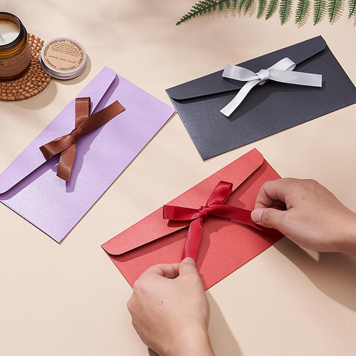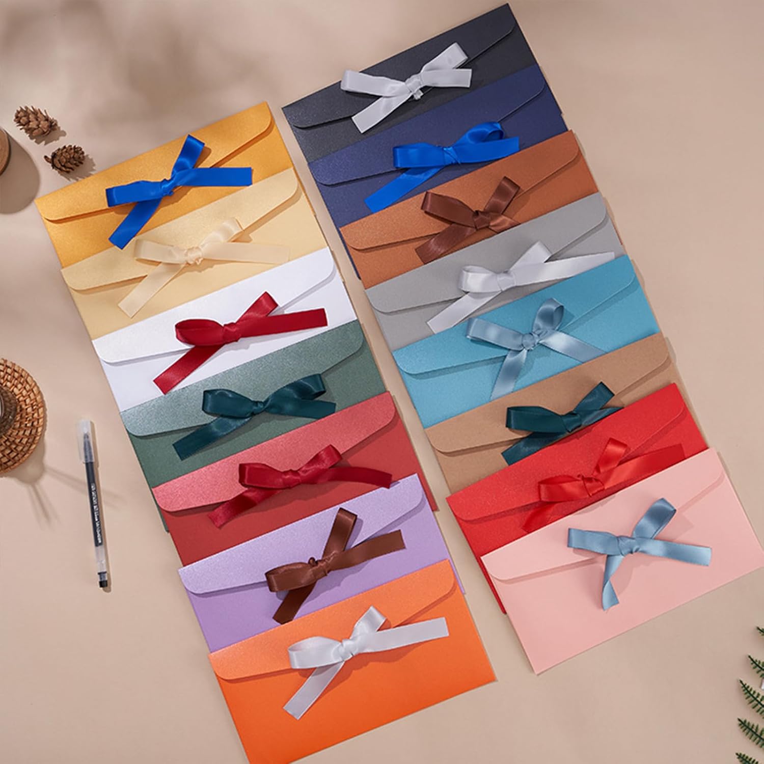 Carta perlata di alta qualità: Ogni busta è realizzata in carta perlata di alta qualità, che offre un'elegante lucentezza e una struttura robusta, perfetta per matrimoni, feste e festival. Nastri di raso inclusi: Ogni busta è dotata di un nastro coordinato, che conferisce un tocco lussuoso e rende la presentazione ancora più accattivante e raffinata. Dimensioni perfette: Progettate per la praticità, queste buste per lettere sono spaziose e resistenti, il che le rende adatte a tutti i tuoi messaggi e celebrazioni più significativi. Colori assortiti: Disponibili in 15 colori assortiti come bianco argento, rosso acceso, cuoio vintage, rosso porpora, blu lago e altri ancora, per garantirti la tonalità perfetta per ogni evento. Uso versatile: Ideali per festival, feste, matrimoni, biglietti regalo e lettere, queste buste sono la scelta ideale per un'esperienza regalo vivace e unica.