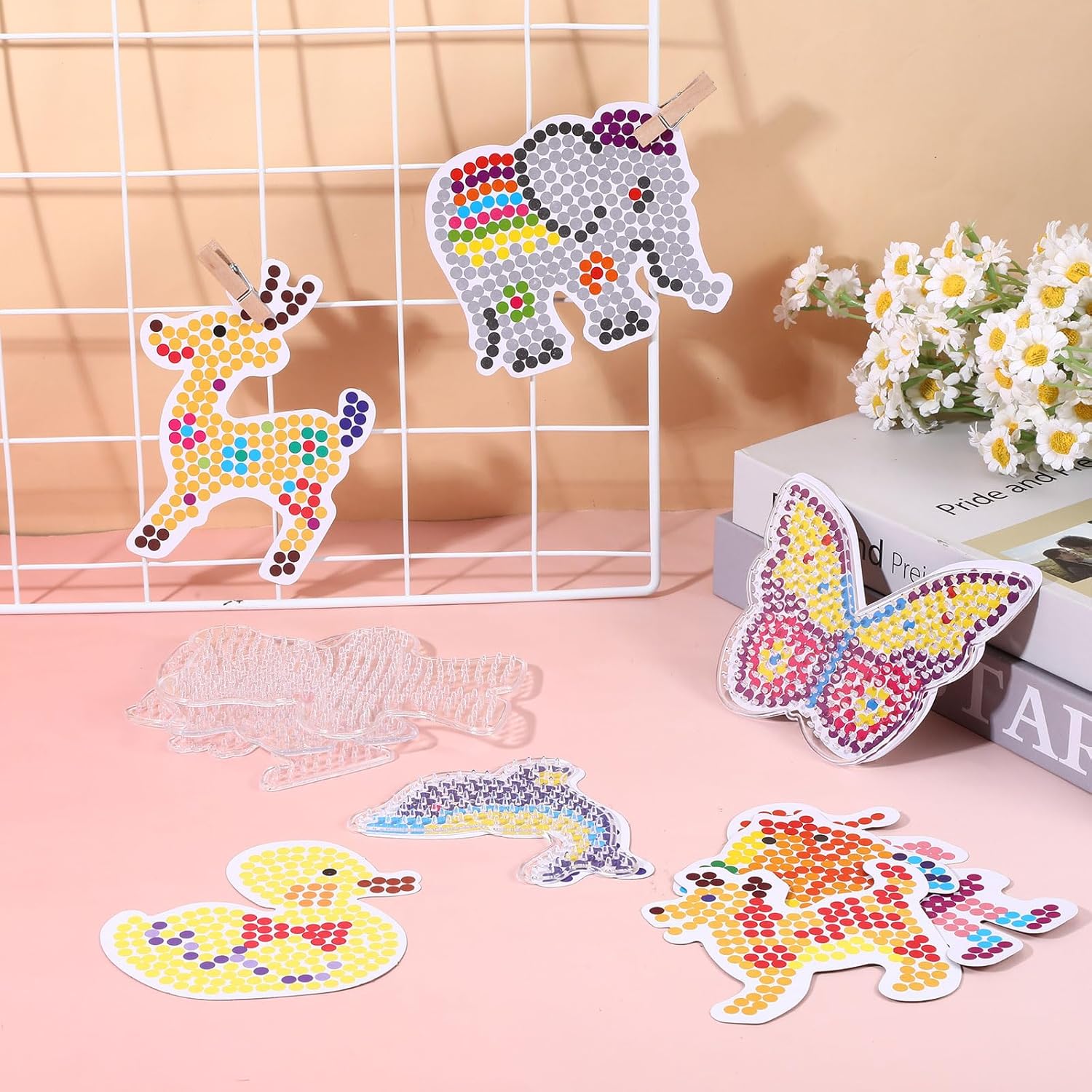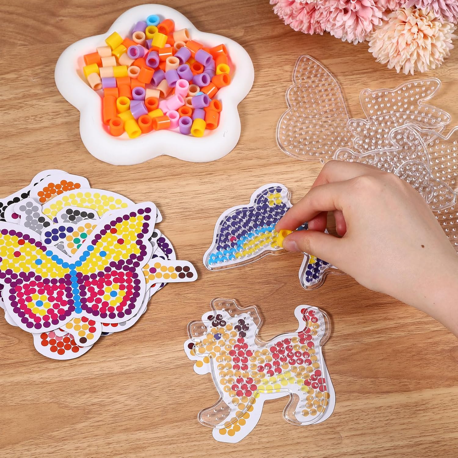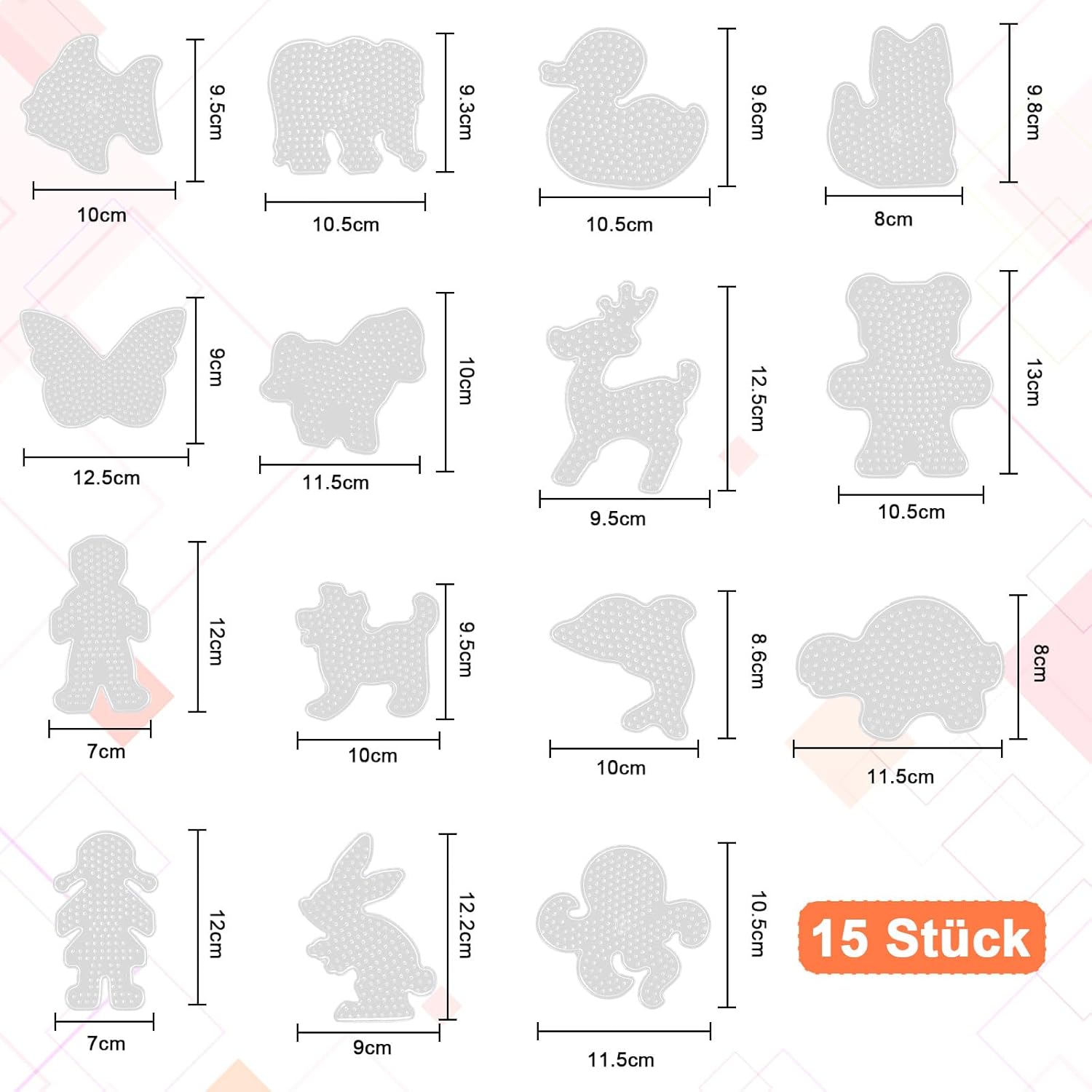 [Varietà di modelli] Il set di perline da stirare contiene 15 diversi modelli di perline trasparenti, tra cui cuccioli, farfalle, anatroccoli, gattini, pesci rossi, pony, cervi, conigli, orsi, polpi, tartarughe e tigri e altri simpatici animali Materiale di qualità: gli stencil per perline da stirare sono realizzati in plastica ecologica di alta qualità, non si sciolgono/non si piegano durante la stiratura di perline nere. Ben fatto, durevole e pratico, le lastre di perline da stirare grandi sono adatte per perline da 5 mm (perle non incluse) [Design creativo] I bambini possono creare questi quadri da stirare per creare progetti artigianali secondo le proprie idee. Le piastre da stirare stimolano le capacità artigianali, il riconoscimento dei colori e l'immaginazione dei bambini) Versatilità: la piastra per perline da stirare è adatta per perline pasquali da 5 mm, piccole perle, perline grandi e molto altro ancora e offre infinite possibilità di progettazione. La forma di perline è ideale per compleanno, perla pasquale o regalo di Natale [Regalo personalizzato] Il set di perline da stirare per bambine non è solo un must per gli appassionati di timbri di perle, ma anche il regalo di Natale perfetto per la famiglia, i bambini e gli amici. Puoi anche giocare con i tuoi bambini durante le vacanze con modelli per perline per il fai da te