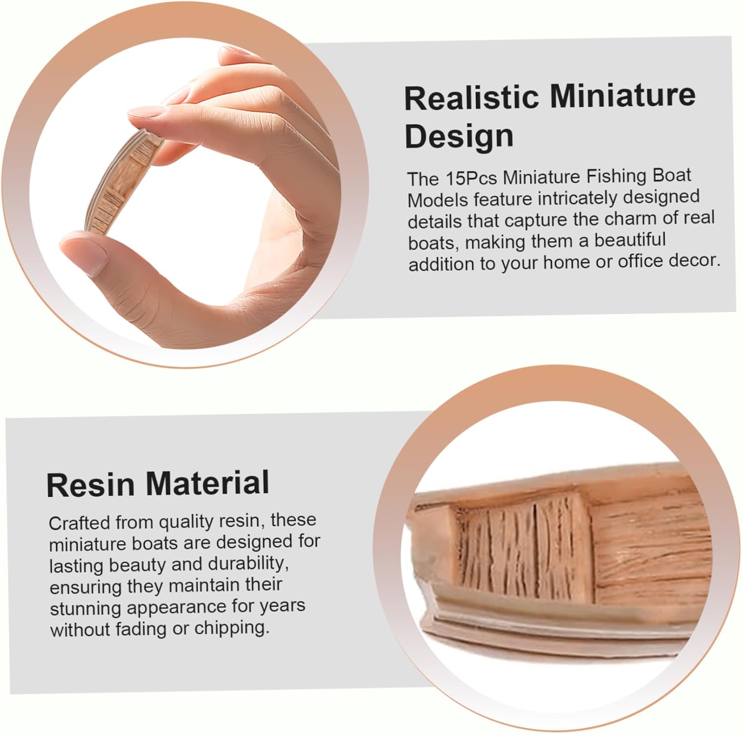 Design realistico in miniatura: i modelli di barche da pesca in miniatura da 15 pezzi presentano dettagli dal design intricato che catturano il fascino delle barche vere, rendendoli una bellissima aggiunta all'arredamento della tua casa o dell'ufficio. Elementi decorativi versatili: perfetti come ornamenti per la scrivania, questi mini personaggi nautici adattano perfettamente a vari ambienti, tra cui case, uffici o progetti di artigianato, valorizzando qualsiasi spazio con un tocco nautico. Ideale per progetti fai da te: queste mini barche possono essere facilmente incorporate in vari lavori fai da te, permettendoti di liberare la tua creatività e personalizzare il tuo arredamento mescolandole con altri elementi. Ottima idea regalo: questi affascinanti modelli di barche da pesca sono un regalo premuroso per gli appassionati di barche, gli hobbisti o chiunque ami l'arredamento unico, portando gioia e personalità nel proprio spazio. Materiale in resina: realizzate con resina di qualità, queste barche in miniatura sono progettate per bellezza e durata durature, garantendo che mantengano il loro straordinario aspetto per anni senza sbiadire o scheggiarsi.
