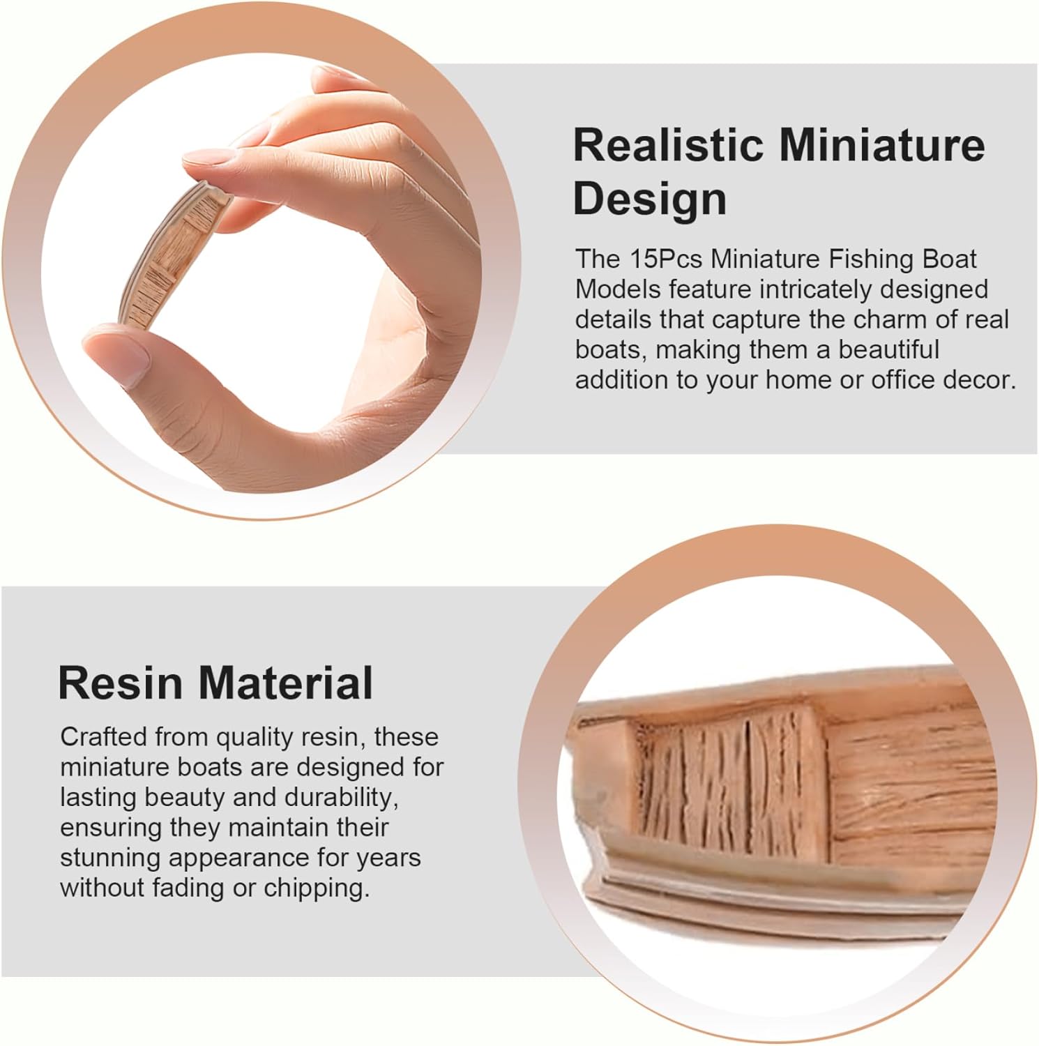 Ottima idea regalo: questi affascinanti modelli di barche da pesca sono un regalo premuroso per gli appassionati di barche, gli hobbisti o chiunque ami l'arredamento unico, portando gioia e personalità nel proprio spazio. Materiale in resina: realizzate con resina di qualità, queste barche in miniatura sono progettate per bellezza e durata durature, garantendo che mantengano il loro straordinario aspetto per anni senza sbiadire o scheggiarsi. Ideale per progetti fai da te: queste mini barche possono essere facilmente incorporate in vari lavori fai da te, permettendoti di liberare la tua creatività e personalizzare il tuo arredamento mescolandole con altri elementi. Design realistico in miniatura: i modelli di barche da pesca in miniatura da 15 pezzi presentano dettagli dal design intricato che catturano il fascino delle barche vere, rendendoli una bellissima aggiunta all'arredamento della tua casa o dell'ufficio. Elementi decorativi versatili: perfetti come ornamenti per la scrivania, questi mini personaggi nautici adattano perfettamente a vari ambienti, tra cui case, uffici o progetti di artigianato, valorizzando qualsiasi spazio con un tocco nautico.