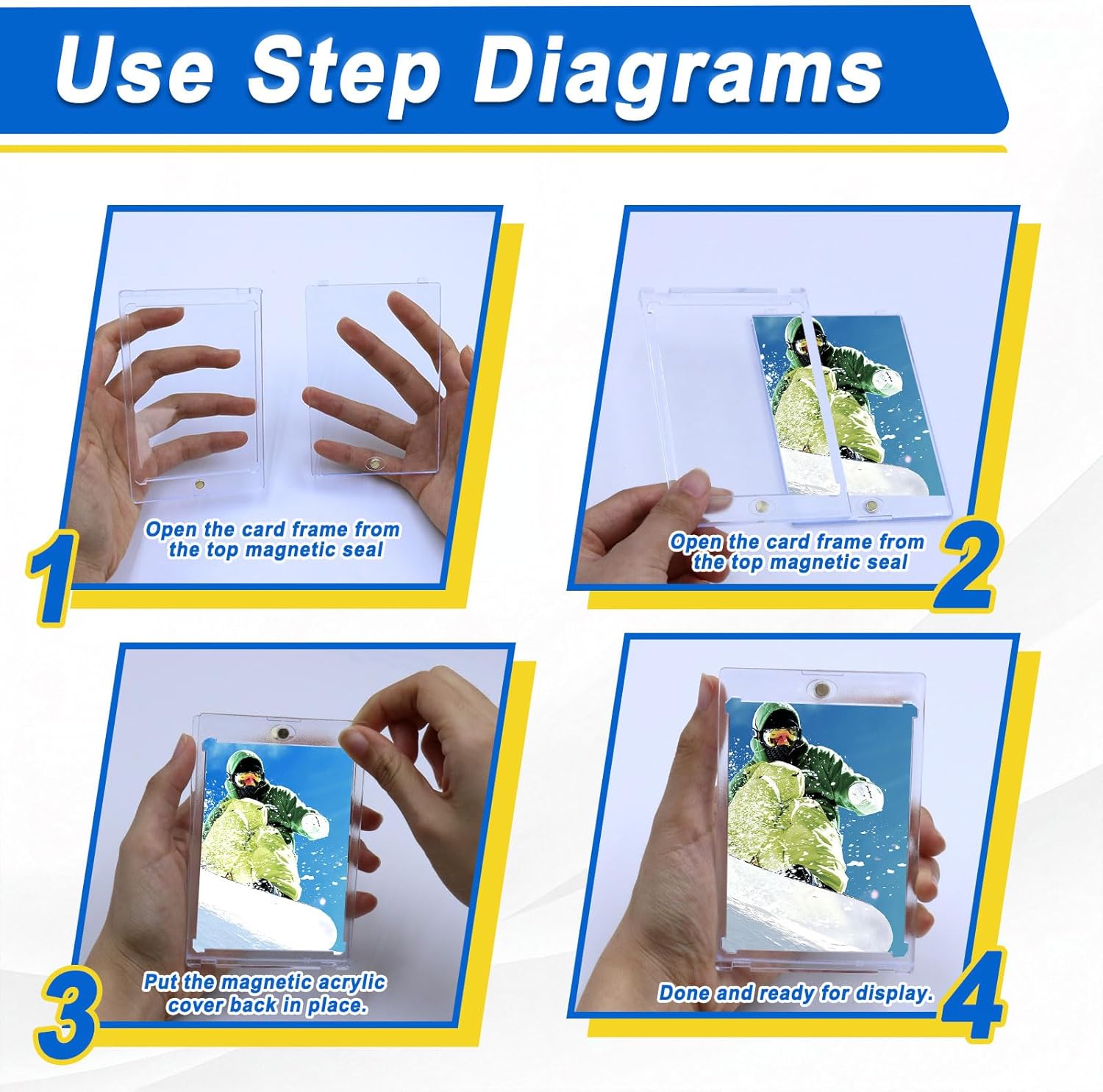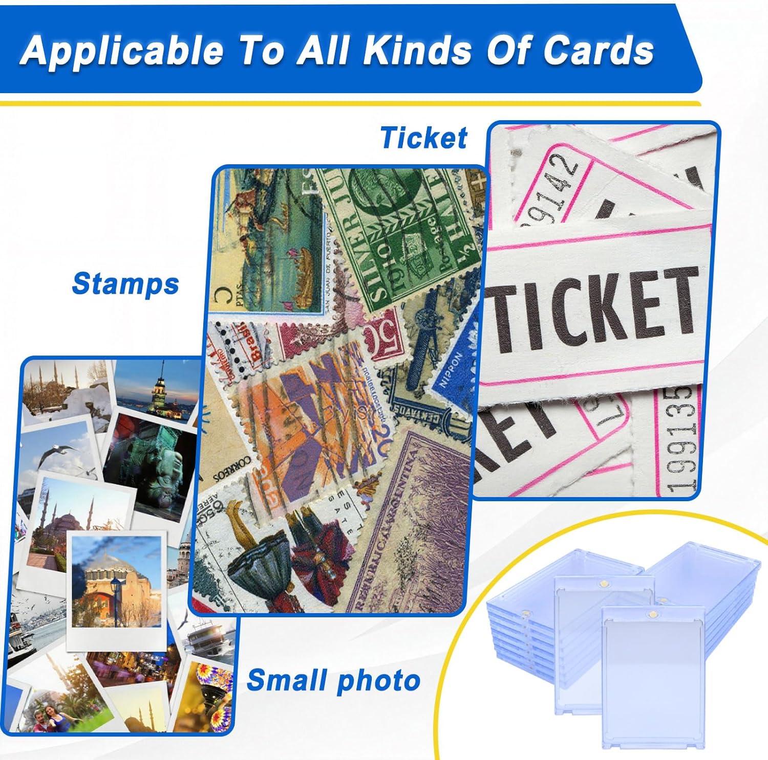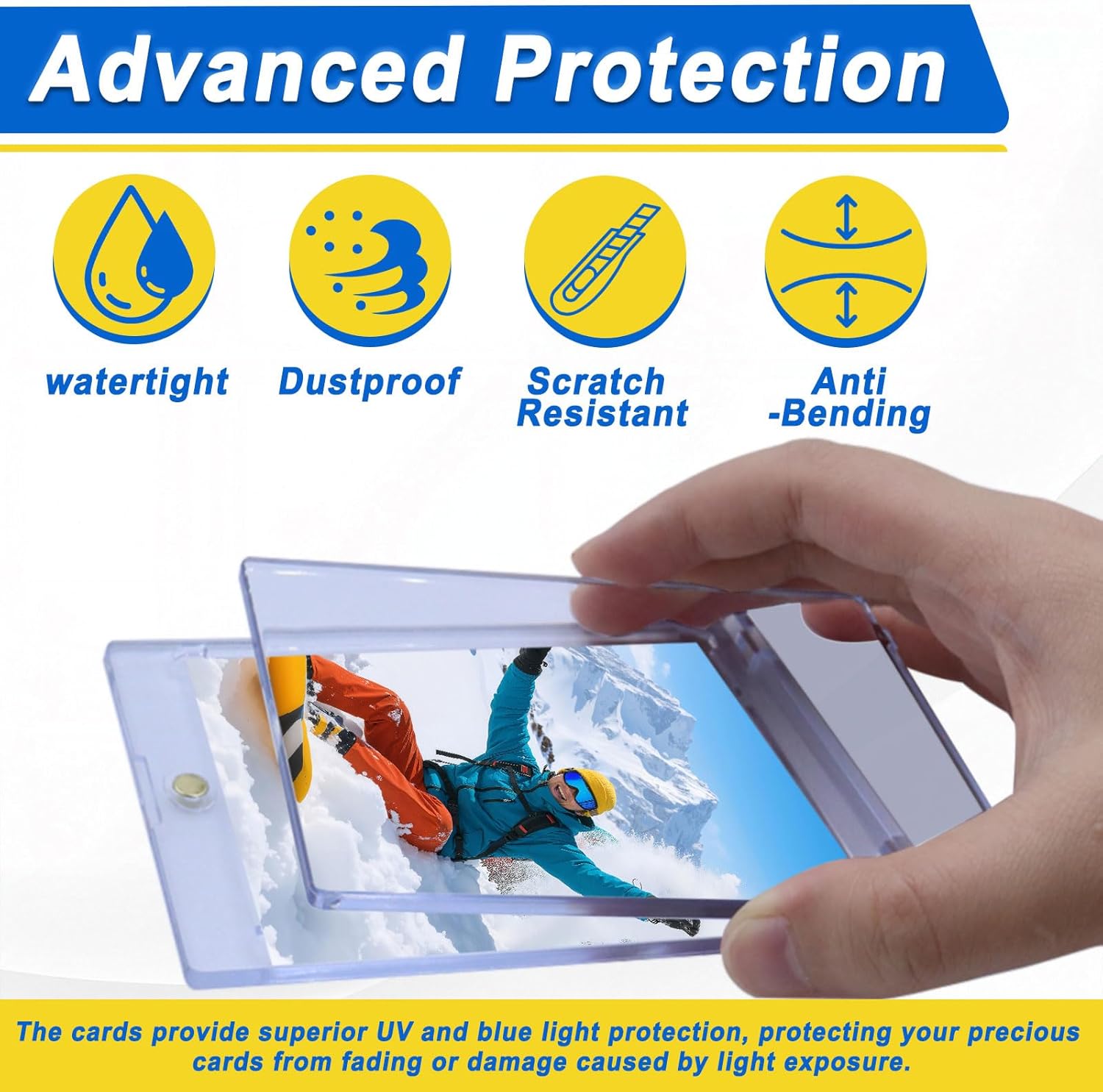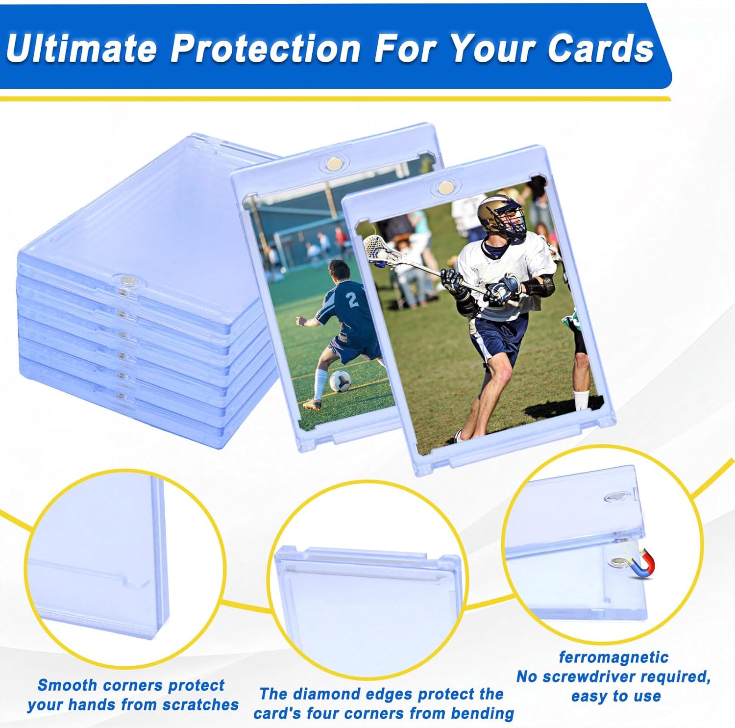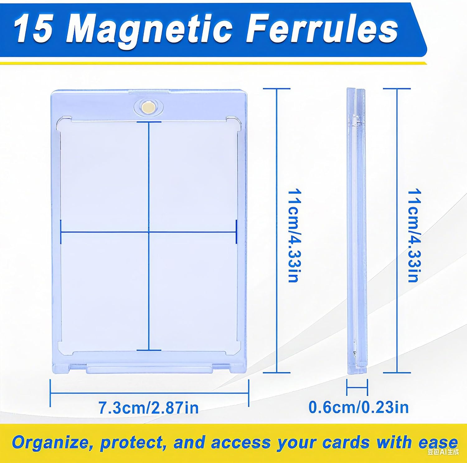 【Contenuto del Pacco】: Riceverete 15 pezzi da 35PT top loader, dimensioni 11x7,3x0,8 cm, trasparenti e chiari, lisci e senza sbavature, resistenti alla caduta, con ottima tenuta, adatti a carte sportive di dimensioni standard (6,4x8,9 cm), ideali per conservare le vostre carte 【Materiale】: Realizzati in acrilico altamente trasparente card sleeves, sono resistenti agli urti e alla flessione, proteggono efficacemente dall'acqua e dalla polvere, non lasciano graffi durante l'uso quotidiano, mantengono a lungo l'aspetto nuovo e proteggono a 360 gradi le tue preziose carte 【Design Magnetico】: Dotato di potenti magneti interni bustine protettive carte, fissa saldamente le carte, è facile da montare e smontare, si chiude saldamente con una leggera pressione, ha una forte forza di attrazione, si apre e si chiude senza allentarsi, evitando che le carte cadano accidentalmente 【Protezione Raggi UV e Angoli Diamantati】: l'penny sleeves è dotato di protezione dai raggi UV, che impedisce alle carte di sbiadire e ingiallire, mantenendo a lungo i colori vivaci. I bordi sono rifiniti con una tecnica di taglio a diamante, con angoli intagliati, che impedisce efficacemente il danneggiamento degli angoli 【Ampia Gamma di Utilizzi】: Questo bustine protettive può essere utilizzato per raccogliere e conservare vari tipi di carte, foto e firme. Entrambi i lati sono trasparenti, consentendo di esporre le vostre carte preferite. È la scelta ideale sia per i collezionisti esperti che per i principianti