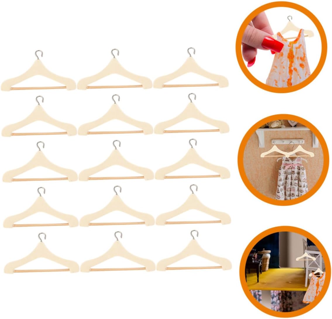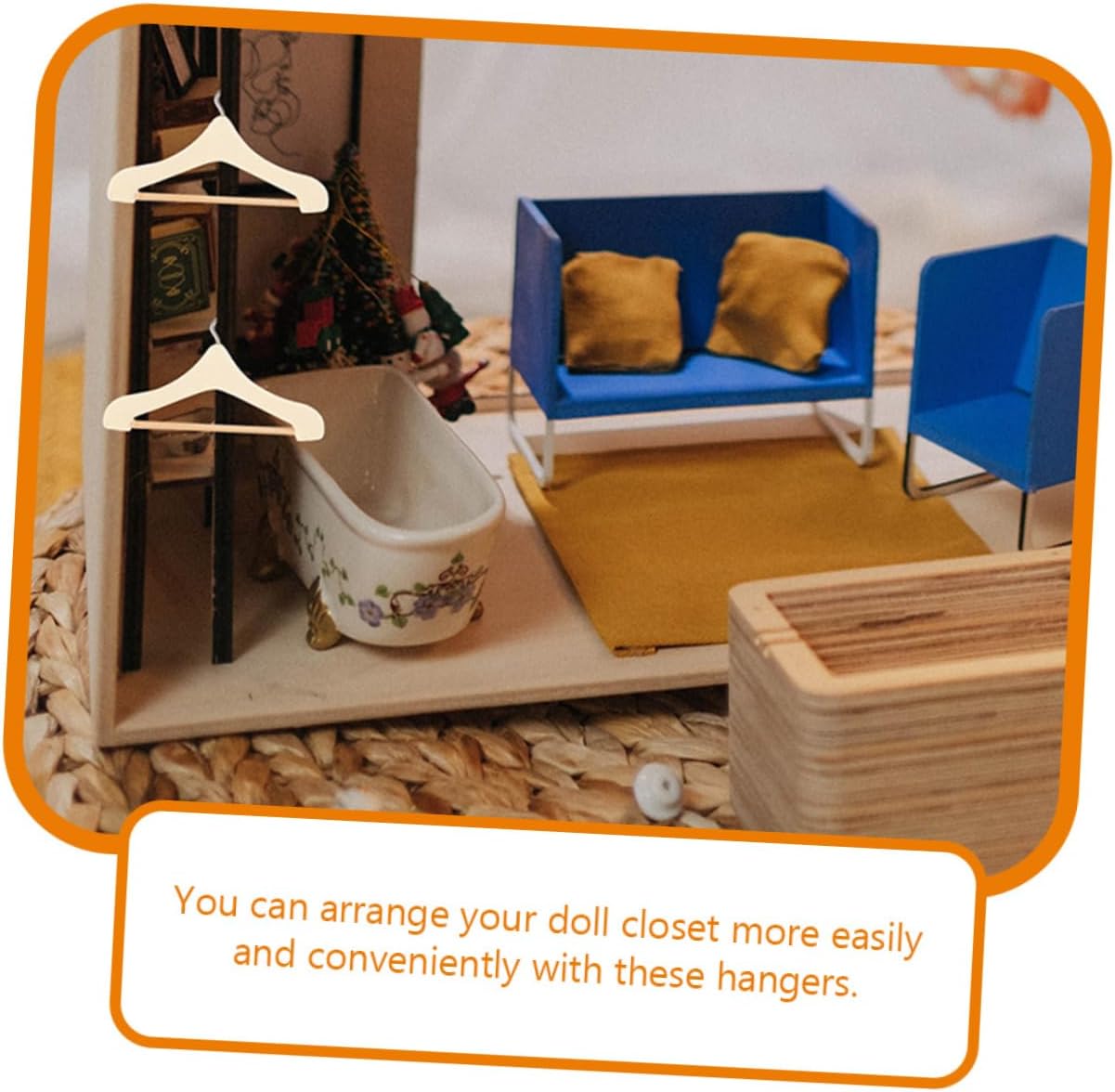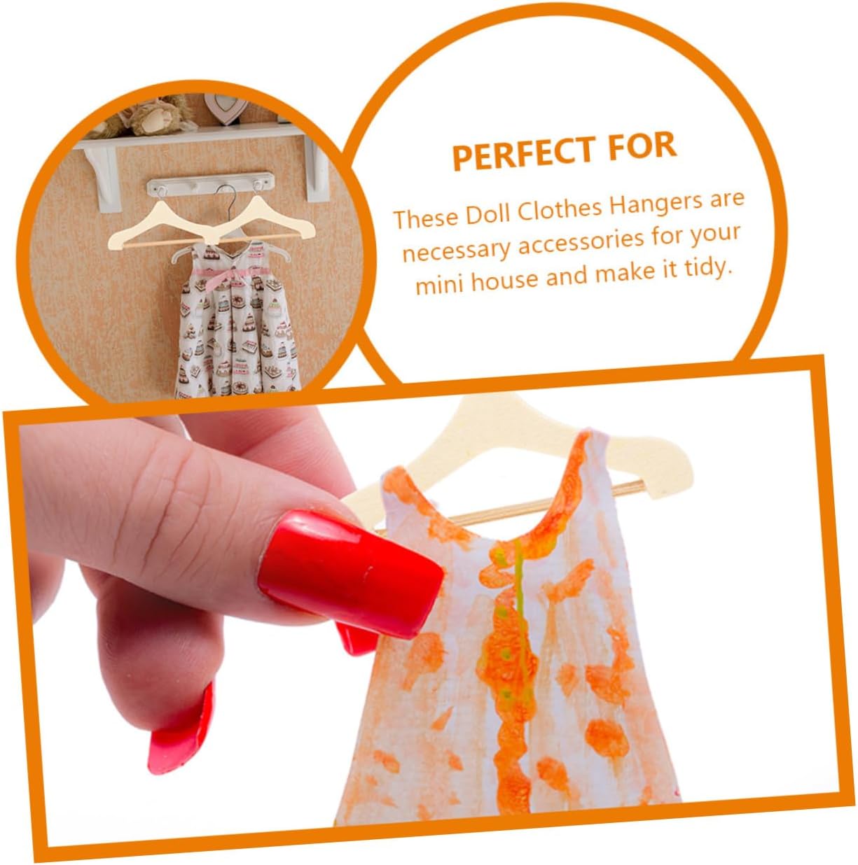 Mini grucce di simulazione: realizzate con materiale in legno, queste grucce per vestiti da bambola possono essere utilizzate a lungo, grucce per guardaroba da bambola Mini grucce per la casa: le graziose ed eleganti mini grucce per la casa possono soddisfare le tue diverse esigenze di decorazione per esporre i vestiti, mini grucce decorative Grucce per bambole squisite: i vestiti delle tue bambole possono essere appesi nell'armadio per creare un guardaroba ordinato, raccogliere i vestiti delle bambole e mantenerli puliti e in ordine, mini oggetti di scena per la casa Grucce piccole: quantità sufficienti e puoi anche condividerle con i tuoi amici, compatte e leggere, la gruccia non occuperà molto spazio, grucce piccole e delicate Mini grucce per bambole: puoi organizzare il tuo armadio per bambole in modo più semplice e comodo con queste grucce, grucce per appesi