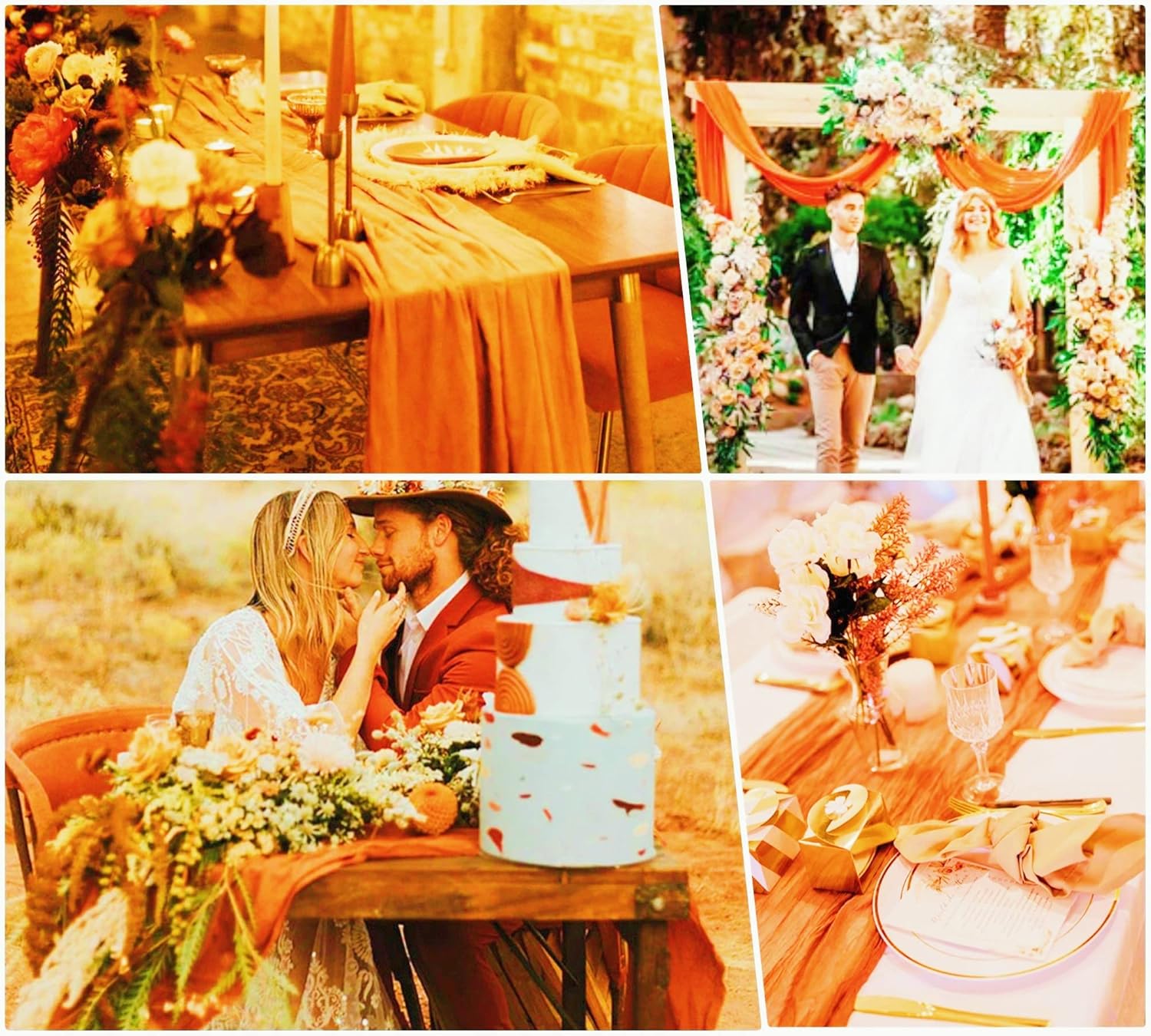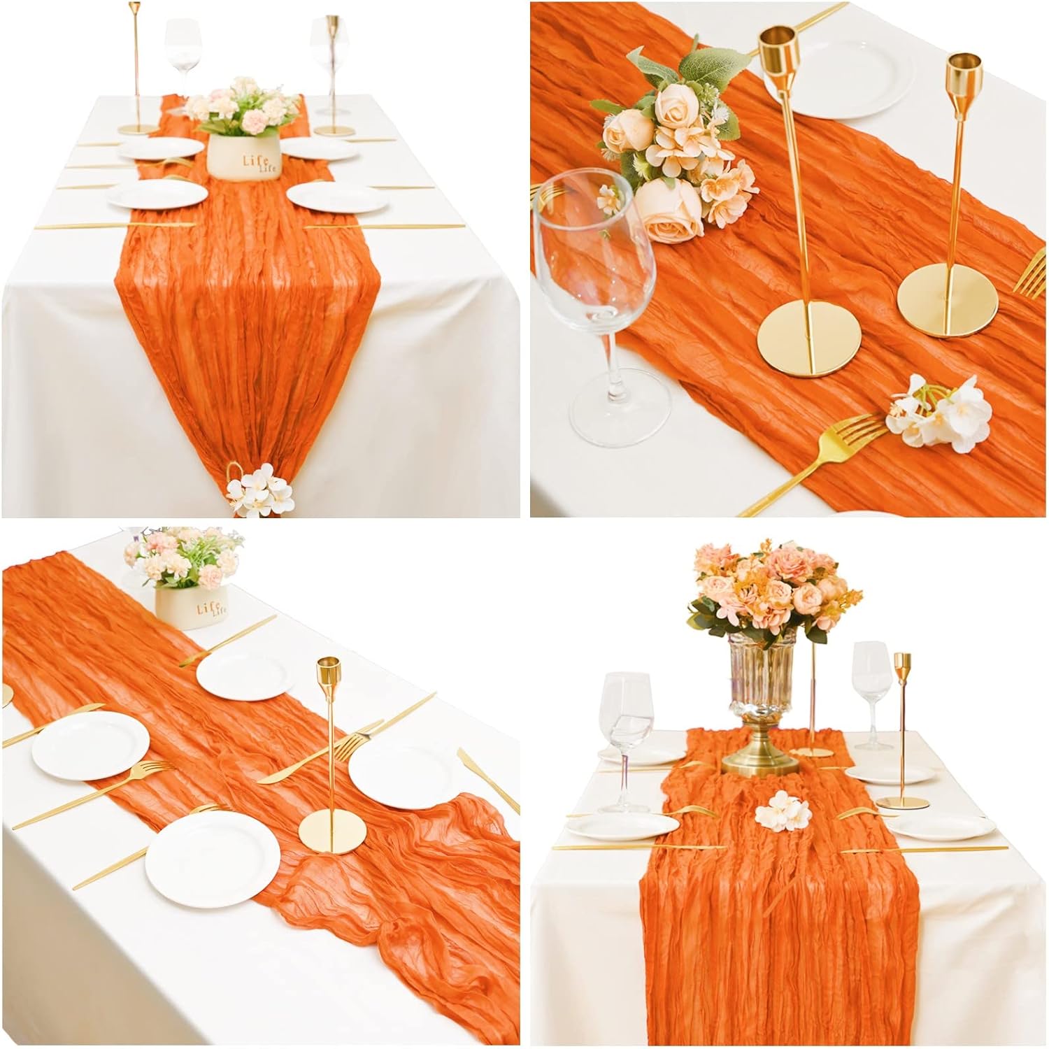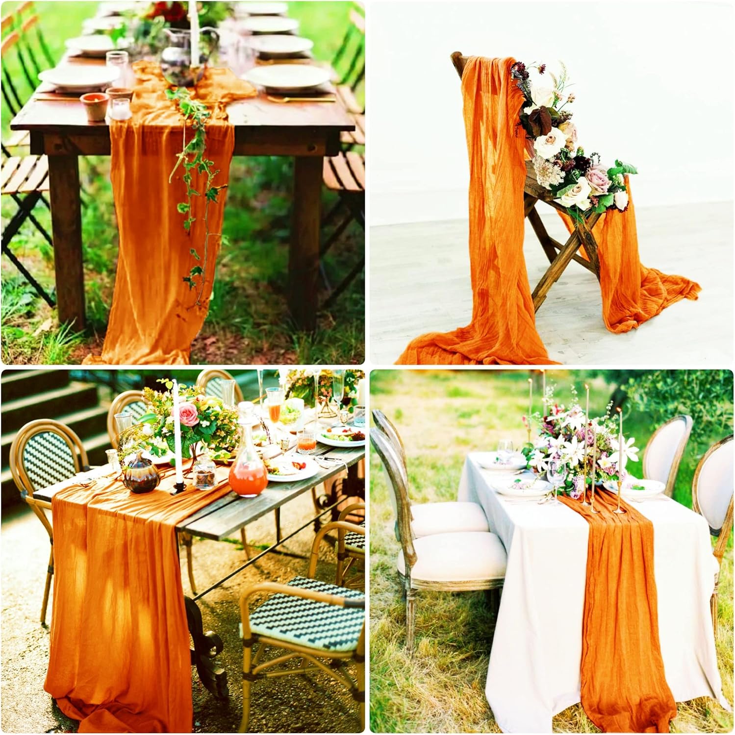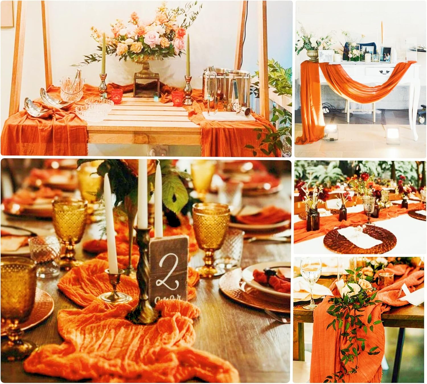 Quantità e dimensioni: riceverai 15 runner da tavola lunghi in garza arancione, sufficienti per i tuoi banchetti nuziali e per l'uso quotidiano o in sostituzione. Le dimensioni di questo runner da tavolo rustico in garza sono circa 89 cm di larghezza e 3 m di lunghezza, abbastanza grande da coprire un tavolo rettangolare o tavoli rotondi per 8-10 persone. 3 m è la lunghezza ideale per la decorazione della tavola della tua festa. I runner da tavolo in garza di formaggio possono anche essere uniti insieme per tavoli più lunghi. Materiali di alta qualità: il nostro runner da tavolo per matrimoni boho è realizzato in delicata garza di cotone, tessuto morbido di alta qualità, robusto e affidabile, leggero e delicato sulla pelle. La decorazione della tavola è morbida, liscia e confortevole al tatto. Con un processo di alto livello e tutti i bordi di questi romantici runner da tavolo sono ben realizzati, bordi puliti con un aspetto pulito, che li rende robusti e riutilizzabili, non facili da indossare o strappare, rimangono in buone condizioni per lungo tempo. Runner da tavolo rustico: il runner da tavolo color crema ha un design senza cuciture e stropicciato, pregevole fattura, che lo rende non solo morbido ma fluido. Con il runner da tavolo in garza in stile boho country, la tua festa può facilmente presentare un aspetto rustico ed elegante e un romantico tocco boho. Puoi legare il romantico runner da tavolo o lasciarlo scorrere liberamente sul pavimento. I runner da tavola vintage per matrimonio stupiranno i tuoi ospiti e aggiungeranno un tocco elegante alla tua festa. La morbida biancheria da tavola è traslucida, a goccia naturale. MULTIUSO - I runner multifunzionali in garza sono perfetti per vari eventi, come matrimoni, ricevimenti, banchetti, feste di compleanno, addio al nubilato e baby shower, tavoli degli innamorati, cerimonie di fidanzamento, cene, buffet di caramelle, tavoli da dessert, archi nuziali, celebrazioni, cerimonie, feste a tema, Natale, San Valentino, Pasqua, Ringraziamento e molte altre occasioni speciali. Questi lunghi corridori di garza mostrano un'atmosfera romantica e permettono a te e ai tuoi amici di godervi abbastanza la festa. Facile da pulire e mantenere: il runner da tavolo in stile rustico è facile da pulire e durevole. Per garantire che il grazioso runner da tavolo rimanga a lungo in buone condizioni, lavabile in lavatrice in un sacchetto per la biancheria o a mano in acqua fredda con un detersivo delicato. Per mantenere il bellissimo design spiegazzato, non stirare né utilizzare acqua calda. Stendere e lasciare asciugare all'aria. Se per qualsiasi motivo non sei soddisfatto di questo runner da tavolo in chiffon di garza, comunicacelo, faremo del nostro meglio per aiutarti!