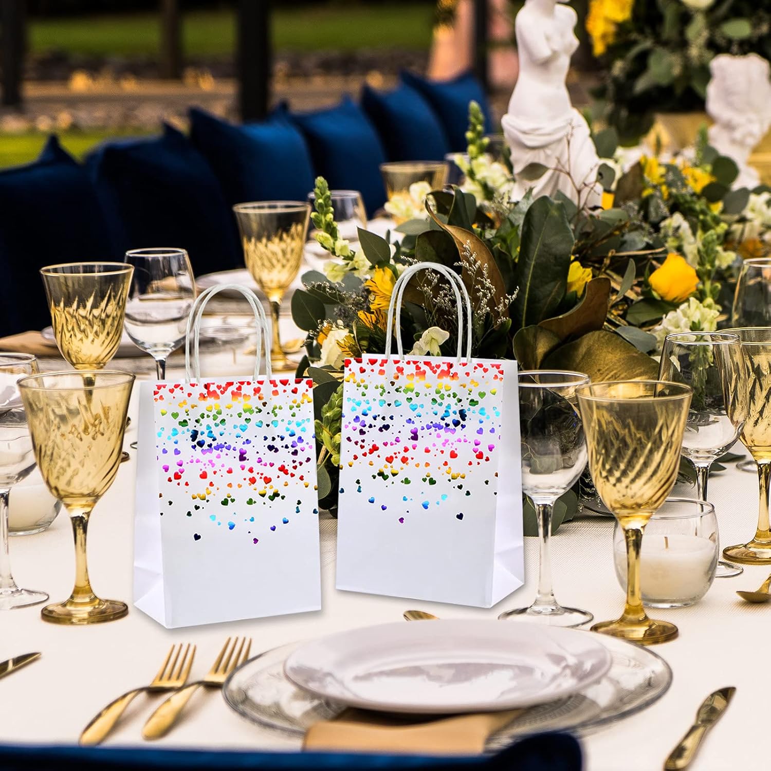 【Materiale】 I sacchetti regalo sono realizzati in carta Kraft da 160 g/m², ecologica e biodegradabile, non facile da stropicciarsi e rompersi, spessa per un uso riutilizzabile. motivi, chiari contrasti di colore e una bella distribuzione dei motivi, che fanno stupire le persone.,Facile da tenere: i sacchetti regalo neri e dorati hanno robuste maniglie a rotazione e sono facili da trasportare. Possono essere piegati quando non in uso, comodi per il trasporto e l'uso quotidiano.