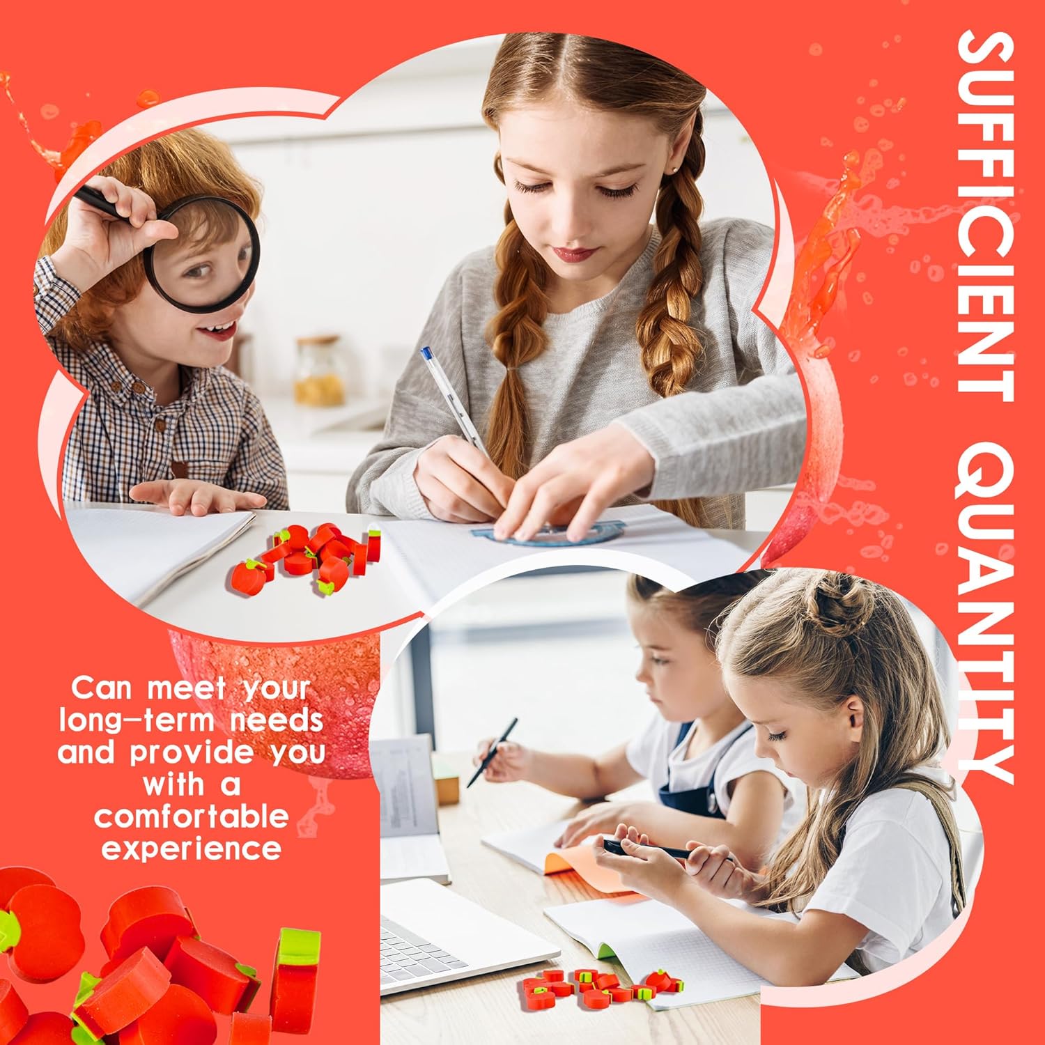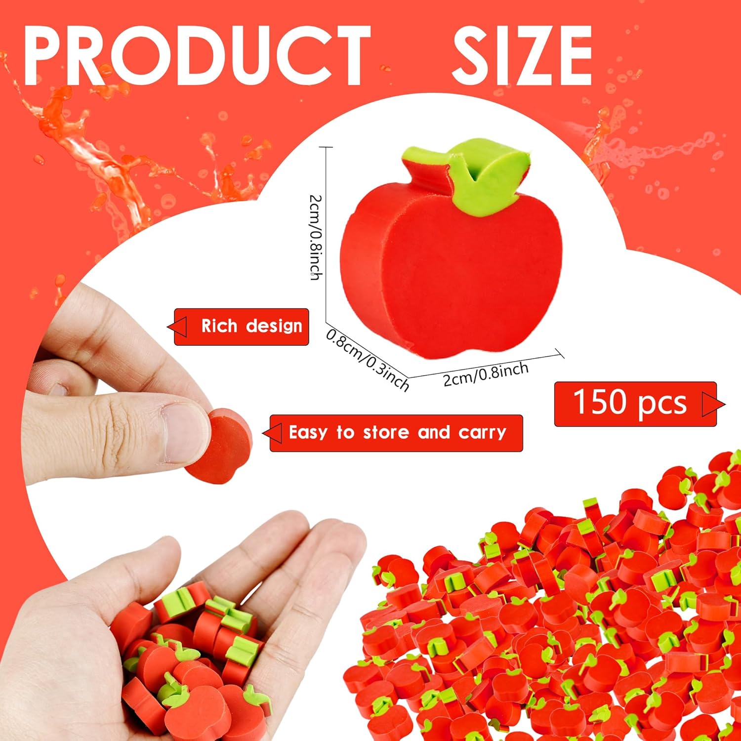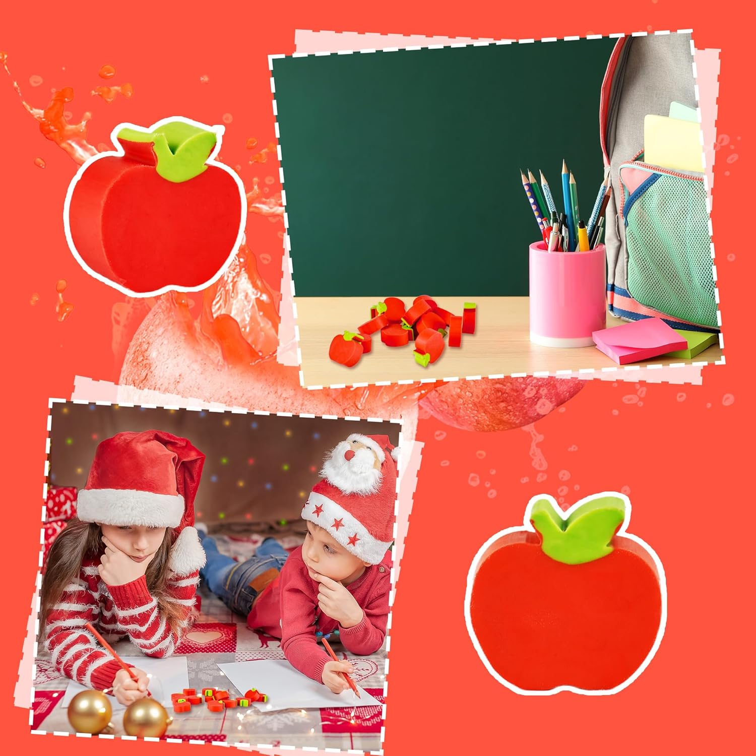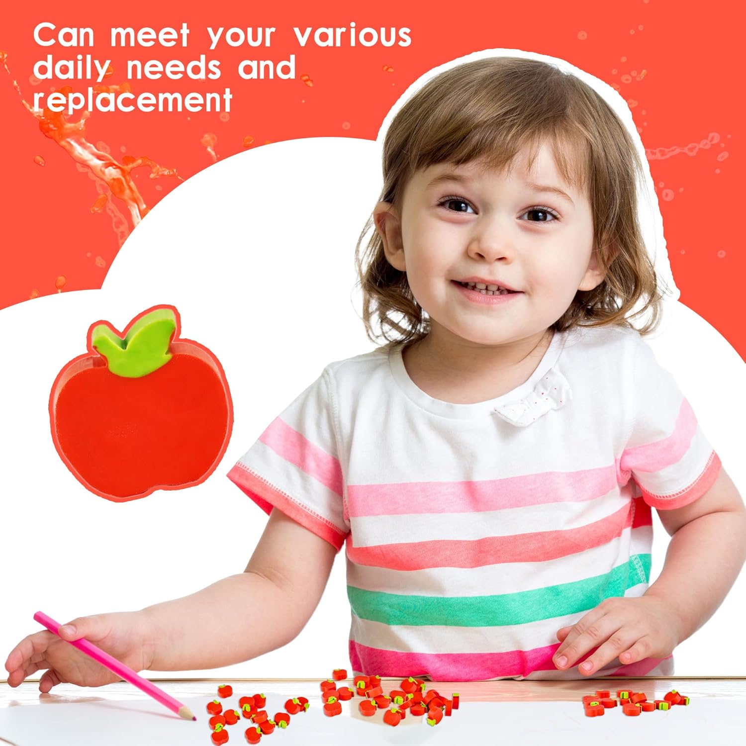 La confezione include: riceverai 60 gomme per mele per bambini, quantità sufficiente e disegni ricchi in grado di soddisfare le tue varie esigenze quotidiane e sostituzioni, e possono essere utilizzate anche come premi di classe, regali per feste Dettagli sulle dimensioni: la dimensione della gomma per mele è di circa 2 x 2 x 0,8 cm. È di piccole dimensioni e leggero. Non occuperà troppo spazio nell'astuccio, né aggiungerà peso a adolescenti e studenti. Facile da riporre e trasportare Materiale di qualità: le gomme per bambini sono realizzate in TPR di alta qualità, morbido e resistente. Può facilmente cancellare i segni della matita e pulire senza lasciare segni. È sicuro e affidabile e adatto per gli studenti da usare Design a mela: mini gomma a forma di mela, con un design vivace e carino a forma di mela, migliora il divertimento dell'apprendimento, stimola l'interesse dei bambini per l'apprendimento e rende divertente cancellare domande sbagliate Occasioni adatte: le mini gomme da cancellare a forma di frutta sono adatte per molti scenari. Può essere utilizzato come cancelleria per studenti, premi per insegnanti, regali per feste di compleanno e decorazioni creative per quaderni. Piccolo, carino e pratico