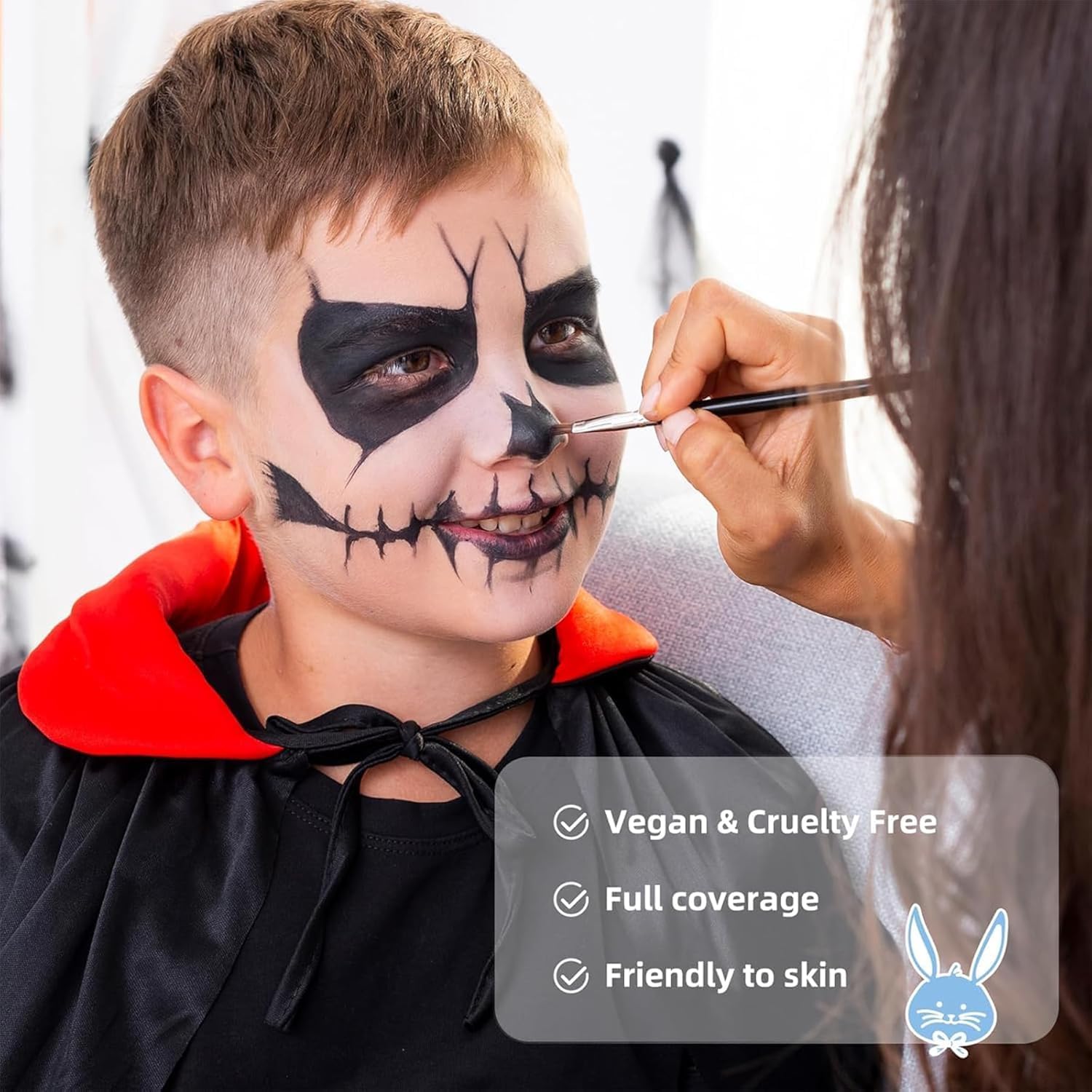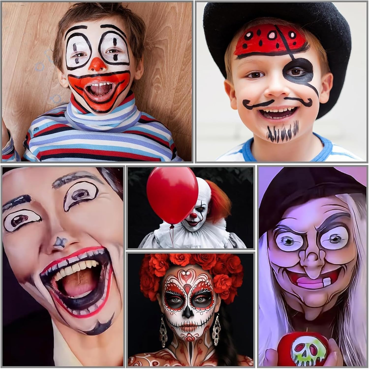 【Set trucco per Halloween】 Questo set trucco per adulti e bambini contiene 50 g ciascuno di vernice nera, bianca e rossa e due piccoli pennelli. Usa i colori singolarmente o mescolali con altri colori per creare il tuo colore preferito, perfetto per giochi di ruolo a carnevali, feste di Halloween e altro ancora. 【Sicuro e duraturo】 Questo set per il trucco di Halloween è realizzato con ingredienti di alta qualità e ha una consistenza morbida e delicata che copre facilmente l'intero viso. I disegni neri, bianchi e rossi sono perfetti per cosplay come clown, scheletro e fantasma. Nota: come per tutti i trucchi, ogni pelle è diversa. Consigliamo quindi di effettuare un piccolo test cutaneo prima dell'uso. 【Facile da applicare】 Questo trucco teatrale di Halloween è facile da applicare e rimuovere: basta usare una spugna, un pennello o le dita. La vernice per il corpo può essere facilmente rimossa con uno struccante professionale. 【Alta pigmentazione】 Questo trucco per il viso è altamente pigmentato, copre efficacemente il tono naturale della tua pelle e protegge il tuo delicato look da festa. Questo trucco a base di olio per bambini è impermeabile e resistente al sudore, quindi si applica comodamente sul viso e sulla pelle e non si secca così rapidamente come la vernice per il viso a base d'acqua. 【Occasioni adatte】 Questo set di trucchi per bambini è adatto a varie occasioni come rave, Halloween, spettacoli teatrali, attività scolastiche o dell'asilo e molto altro. È il trucco perfetto per feste a tema, cosplay, feste di compleanno, spettacoli teatrali e altro ancora!