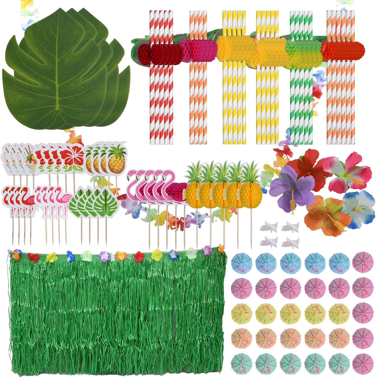 【Pacchetto Feste Super Risparmio】: la decorazione per feste hawaiane include gonna da tavolo hawaiana da 108x30 pollici, 25 foglie di tartaruga, 2 pezzi di strisce hawaiane da 2 m, 30 fiori di ibisco, 30 cannucce di carta colorate, 24 inserti per torte, 30 ombrellini colorati, 5 fenicotteri. Biglietti, 5 stuzzicadenti a nido d'ananas, 4 velcro. Questo set di decorazioni metterà in risalto la tua tavola e attirerà l'attenzione, creando un'autentica atmosfera da isola tropicale. 【Materiali di alta qualità】: le nostre gonne da tavolo, le ghirlande hawaiane e le foglie di tartaruga sono realizzate in poliestere resistente, mentre le cannucce, gli ombrelli e i fenicotteri sono realizzati in carta ecologica e bambù. Ogni componente è meticolosamente selezionato per la sua qualità, che è sicura, ecologica, non tossica e riutilizzabile, garantendo sia durata che consapevolezza ambientale. 【Facile da usare】: questo set di gonne da tavolo offre una serie di soluzioni decorative, semplici e facili da usare. Posiziona semplicemente gli accessori sul tavolo da pranzo per completare la decorazione della tavola in un istante, aggiungendo colore e interesse alla cena. La gonna da tavolo ha 4 velcro, devi solo attaccarli attorno al tavolo per fissare la gonna da tavolo hawaiana. 【Aggiungi atmosfera】: migliora il tuo tavolo da banchetto con la gonna da tavolo hawaiana, adatta a tavoli rotondi e rettangolari di tutte le dimensioni. Aggiungi un tocco di fantasia ai tuoi cibi e alle tue bevande adornandoli con ombrelli e cannucce colorati, garantendo un'atmosfera vivace e piacevole alla tua festa in giardino. 【Ampia gamma di occasioni】: perfetto per feste a tema hawaiano, riunioni all'aperto, barbecue, feste estive nella giungla, feste in spiaggia, feste a bordo piscina e feste di compleanno. Questo set di 156 gonne da tavolo non è solo una decorazione da tavolo, ma può anche essere usata come ornamento. , materiali fatti a mano o accessori per feste a tema per aggiungere più divertimento e creatività alle tue attività.