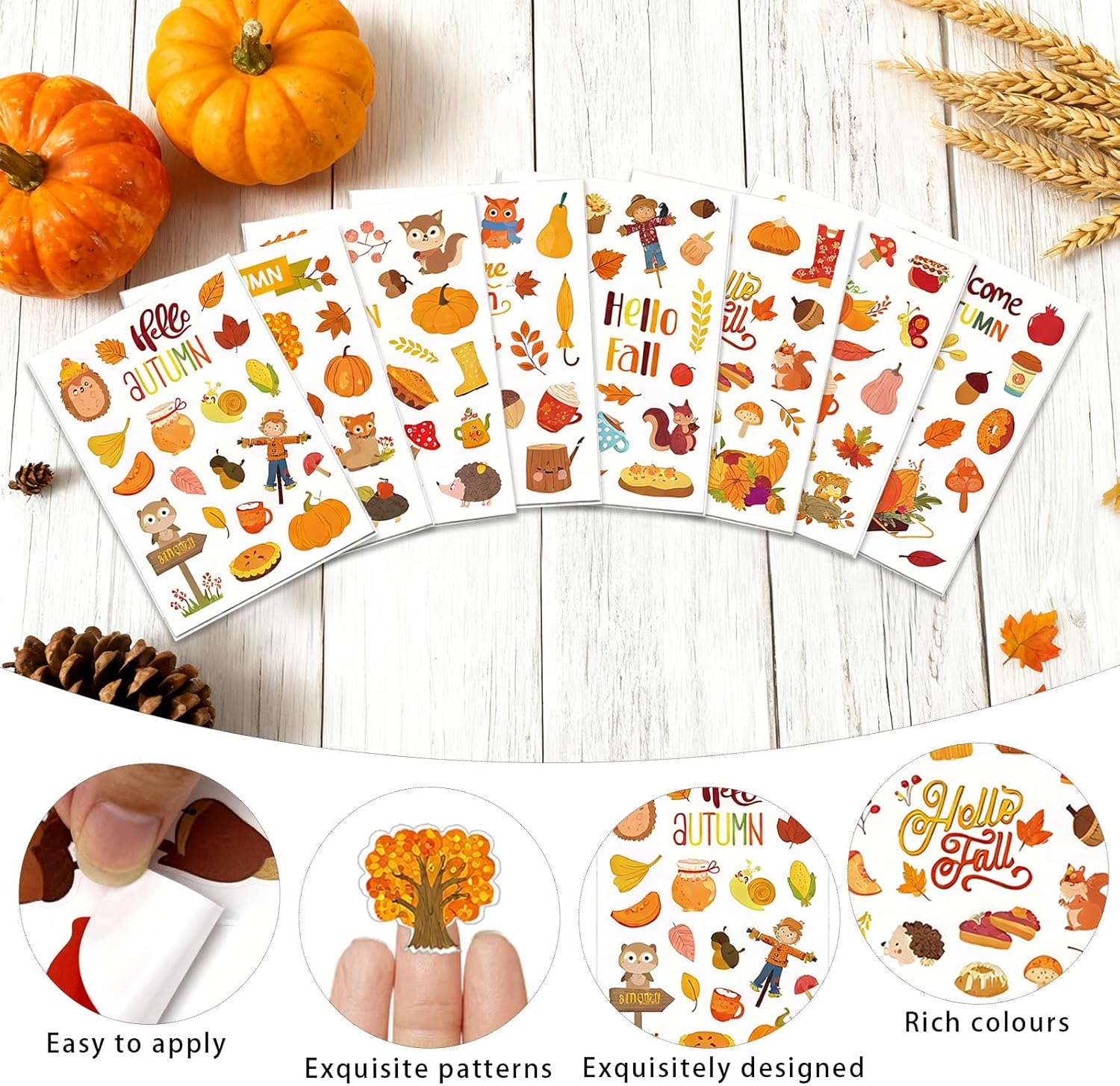 Contenuto della confezione - Riceverai 12 finestre adesive autunnali, composte da sei diversi design con due per ogni stile, in modo che ogni finestra sia riempita con tutta la generosità dell'autunno. Materiali di alta qualità - Queste finestre adesive autunnali con motivi di foglie autunnali sono realizzate in materiale PVC di alta qualità e offrono proprietà impermeabili e resistenti allo strappo. Aderiscono saldamente e possono essere riposizionati più volte Design estetico - Questi adesivi per finestre con foglie autunnali presentano un design a fumetti con linee arrotondate, adorabili e colori vivaci e allegri che riportano alla mente ricordi d'infanzia Funzionamento facile da usare - Questi adesivi per finestre con foglie autunnali sono facili da staccare e incollare e non danneggeranno le pagine dell'agenda quando li riposiziona Applicazioni adatte - Questi adesivi per finestre per bambini con foglie autunnali sono perfetti per decorare agende, quaderni o buste e aggiungono facilmente un tocco di fascino autunnale