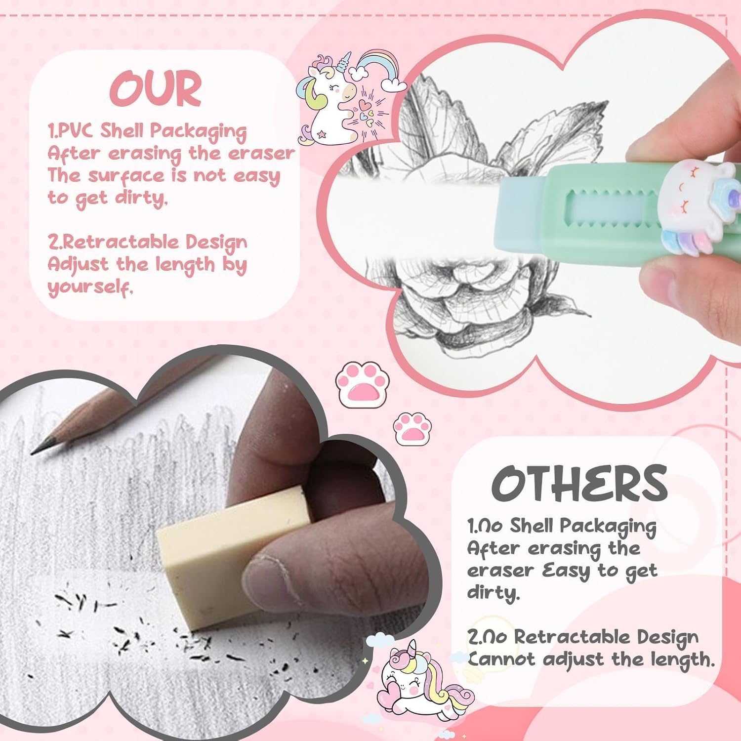 🧸📚 【Design Push-Pull】La nostra gomme da cancellare bambini adotta un pratico design push-pull, facile da usare e ideale per mantenere le dita pulite. Queste gomma per bambini Perfetta per accompagnare i bambini a scuola e per i compiti a casa, unendo funzionalità e divertimento. 🧸📚 【Motivi 3D Animali】Questo set contiene 16 gomme con 8 adorabili motivi 3D, tra cui panda, unicorno, orsetto e impronta di gatto. Questa gomma rende ogni momento di disegno o compito più colorato e piacevole, stimolando la creatività dei piccoli artisti. 🧸📚 【Materiale PVC Atossico e Gomma Morbida】Queste gomma da cancellare regalini sono realizzate in PVC sicuro e atossico, morbido ed efficace. Possono cancellare senza rovinare la carta. I genitori possono stare tranquilli: è una scelta sicura per i bambini. 🧸📚 【Dimensioni Compatte e Portatili】Queste gomme push-pull sono leggere e compatte, facili da riporre nell’astuccio o nello zaino della scuola. Ideali da portare in viaggio, a lezione o ovunque servano materiali scolastici. 🧸📚 【Perfetto Regalo per Feste per Bambini 6-9 Anni】Queste gomme kawaii dai colori vivaci e dal design allegro sono il regalo ideale per compleanni, feste scolastiche o come sorpresa per amici. Adatte a bambini dai 6 ai 9 anni per ogni occasione speciale.