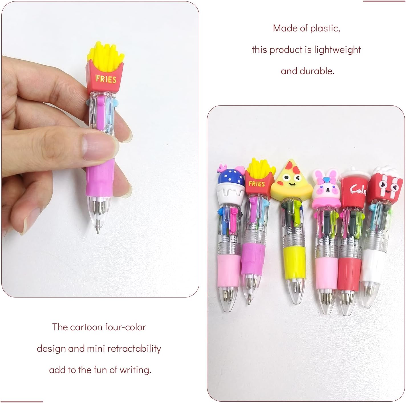 【Contenuto Del Prodotto】 Ottieni 16 Mini Penne Telescopiche. Ogni Penna A Sfera Ha Una Dimensione Di 9, 5 Cm E Si Trova In Uno Stile Di Colore Casuale Adatto Per Lo Studio E Il Lavoro In Ufficio. 【Materiale Del Prodotto】 Questo Prodotto È Costituito Da Materiale Plastico, Luce E Durevole. Il Materiale Plastico Non Solo Garantisce Il Comfort Della Penna A Sfera, Ma Ne Migliora Anche La Durata, Il Che Lo Rende Ideale Per La Scrittura Quotidiana. 【Design Creativo】 Questa Penna A Sfera Ha Un Design Unico, Un Design A Quattro Colori E Una Funzione Mini-Telescopica Che Offre Una Scrittura Divertente Ed È Molto Adatta A Studenti E Impiegati. 【Ampliato】 Questo Prodotto È Molto Adatto A Diverse Esigenze Di Scrittura Nelle Scuole, Negli Uffici E Nella Vita Di Tutti I Giorni. Indipendentemente Dal Fatto Che Si Tratti Di Note, Disegno O Firme, Queste Penne A Sfera Offrono Un'Esperienza Di Scrittura Regolare. 【Sace E Facile Da Indossare】 Questa Penna A Sfera È Compatta, Facile Da Peso E Molto Portatile. Puoi Semplicemente Inserirlo Nella Borsa Della Tua Scuola, Nella Custodia A Matita O Alla Borsa E Scriverlo Sempre E Ovunque.