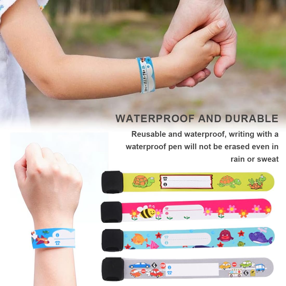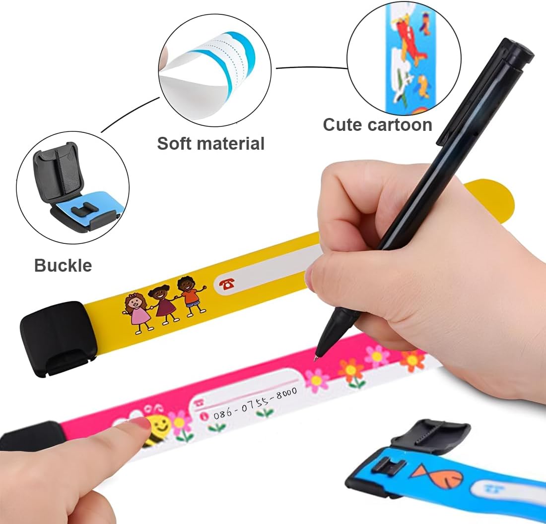 Bracciale identificativo per bambini: Bracciale antismarrimento bambini, Realizzato in PVC e robuste clip in plastica. Quando esci, puoi scrivere le informazioni importanti di tuo figlio su di esso per evitare di perdersi e aiutare Lunghezza regolabile: Il braccialetto di sicurezza per bambini può essere regolato in base alle dimensioni del polso di chi lo indossa, la testa di blocco è bloccabile, quindi può essere regolata continuamente Impermeabile e durevole: Bracciale bambino antismarrimento, Riutilizzabile e impermeabile, scrivi con una penna impermeabile, non verrà cancellato nemmeno sotto la pioggia o il sudore Applicabile a molteplici occasioni: Questo braccialetto identificativo di sicurezza per bambini è perfetto per feste, gite, campi estivi e altre attività all'aperto per bambini Ottimi servizi: Se hai domande, non esitare a contattarci. Ti risponderemo entro 24 ore