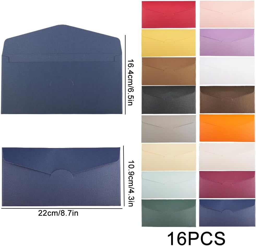 Dimensioni: 16 Colori Busta di Carta Kraft Vintage 21.9 × 10.9CM;controlla le dimensioni prima dell'acquisto. Personalizzazione Fai Da Te:Superficie vuota per incollare adesivi o scrivere messaggi.Possibilità di creare buste personalizzate per un tocco personale ai regali. Varietà di Colori:Disponibili in 16 colori ricchi di sfumature,Noir,rouge,lac bleu,vert foncé,doré,gris clair,violet,brun doré,orange,platine,glace blanche,perle blanche,bleu clair,café,rouge,rose. Alta qualità:Retrò Buste di Carta Kraft Realizzate in Papier perlé resistente,non si rompono né si deformano facilmente. Ampia Gamma di Usi:Buste Eleganti Adatte per inviti di nozze,regali di compleanno,feste e cartoline di Natale.Aggiungono bellezza a varie occasioni e festività.