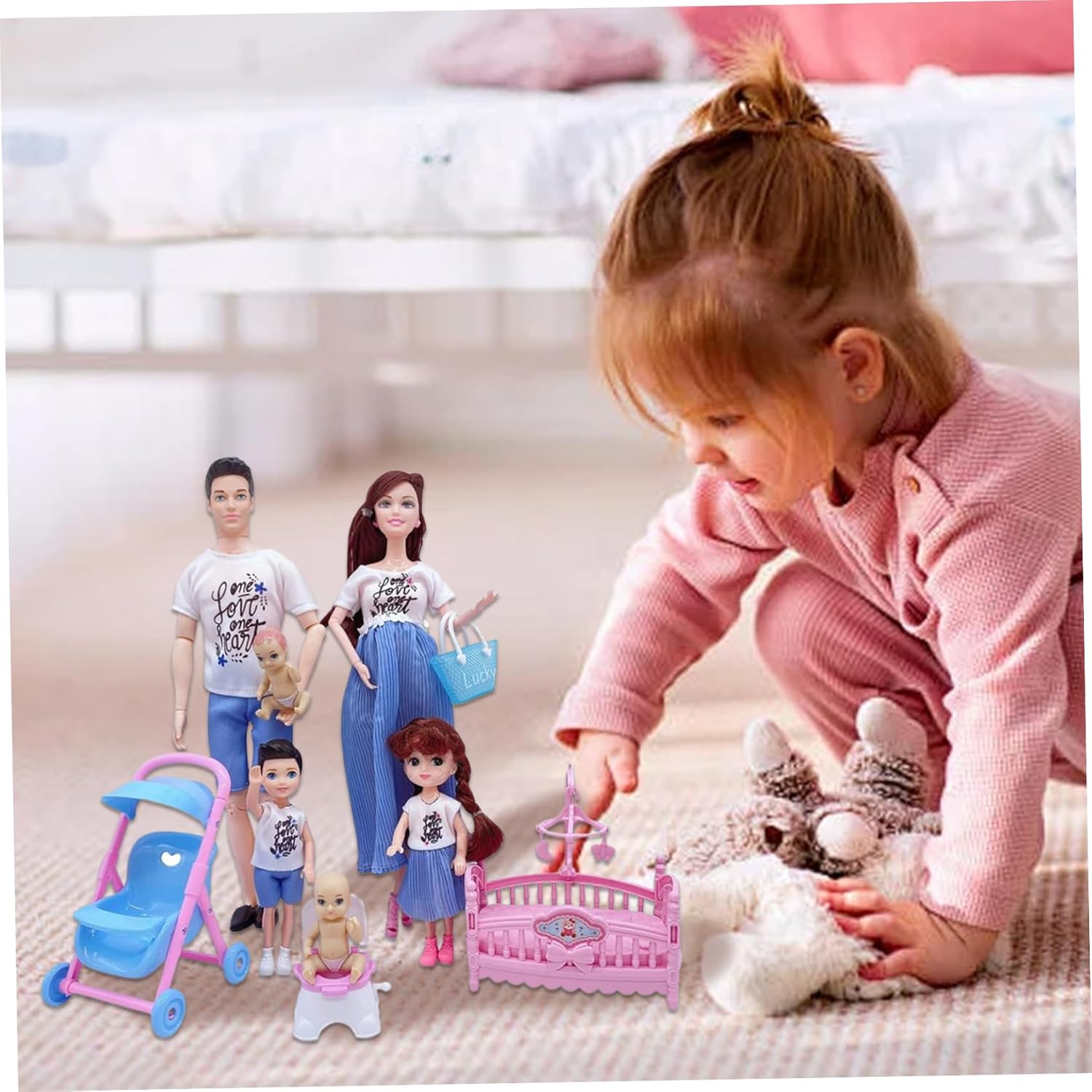 Presente perfetto per bambini: questo set di bambole familiari premuroso è un regalo ideale per compleanni, vacanze o scopi educativi, attraente per i bambini piccoli che amano bambole, bambole e set di giochi interattivi. Materiali sicuri e stabili: realizzati con materiali in plastica e morbida non tossici, di qualità, ogni bambola è progettata per resistere al gioco attivo garantendo un'esperienza sicura per i bambini, rendendo questo set un giocattolo di fiducia per i genitori. Giochi familiari realistici: questo set di bambole di famiglia comprende cinque figure dettagliate: una mamma incinta, papà, tre bambini e un bambino nella pancia che offreva ai bambini un'esperienza di gioco accattivante e realistica che incoraggia la narrazione fantasiosa e il gioco di ruolo nella vita familiare. Accessori completi inclusi: il set viene fornito con accessori affascinanti per migliorare il gioco creativo, consentendo ai bambini di recitare routine quotidiane e momenti speciali per famiglie, aumentando le capacità motorie e la creatività. Sviluppo educativo: giocare con questo set di bambole aiuta i bambini a conoscere ruoli familiari, gravidanza e relazioni tra fratelli, promuovere le capacità comunicative e l'intelligenza emotiva attraverso l'interazione pratica con personaggi diversi.