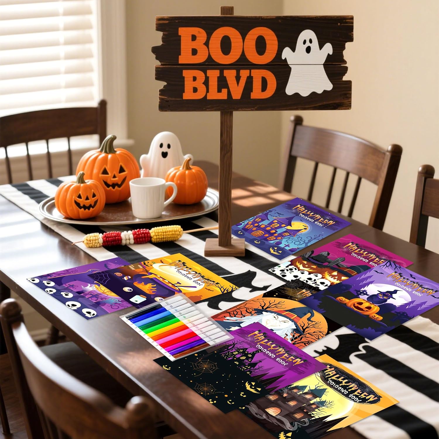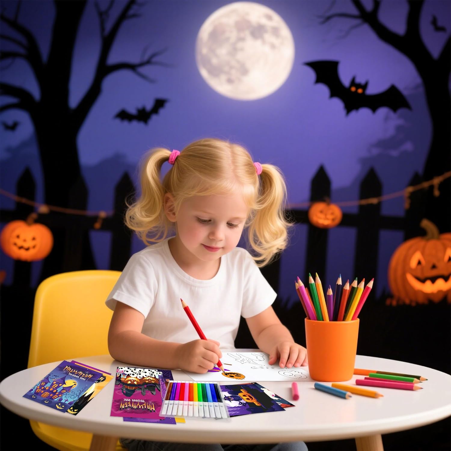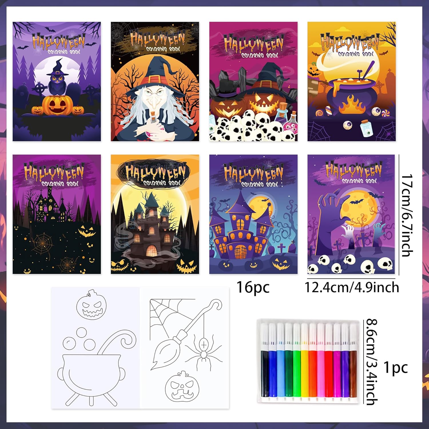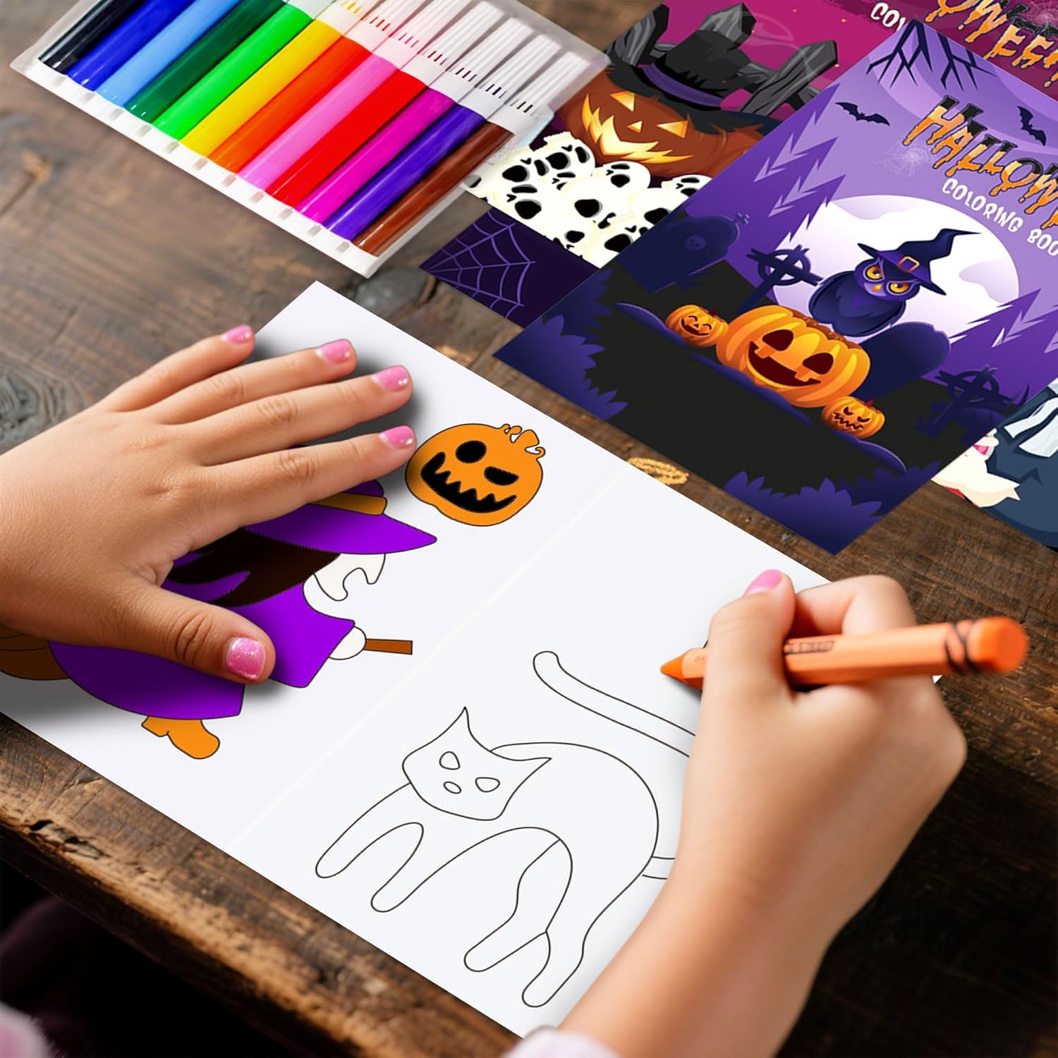 Questo set di attività di Halloween contiene 16 mini libri da colorare con fantasmi giocosi e zucche insieme a 12 matite colorate luminose per un divertimento creativo immediato Questi quaderni hanno le dimensioni perfette per le manine dei bambini e sono ideali come riempimento per sacchetti festa durante feste scolastiche o eventi "dolcetto o scherzetto" nel quartiere Gli insegnanti della scuola materna li trovano perfetti per attività di Halloween in classe, mentre i genitori possono usarli come intrattenimento durante le gite autunnali I motivi spaventosi ma carini sono fantastici per feste di compleanno a tema mostri, feste del raccolto o come distrazione creativa durante l’intaglio delle zucche in famiglia Dalle buste regalo per la classe ai piccoli souvenir per i pigiama party di Halloween, questo set stimola l’immaginazione e coinvolge i bambini con giochi artistici a tema festivo