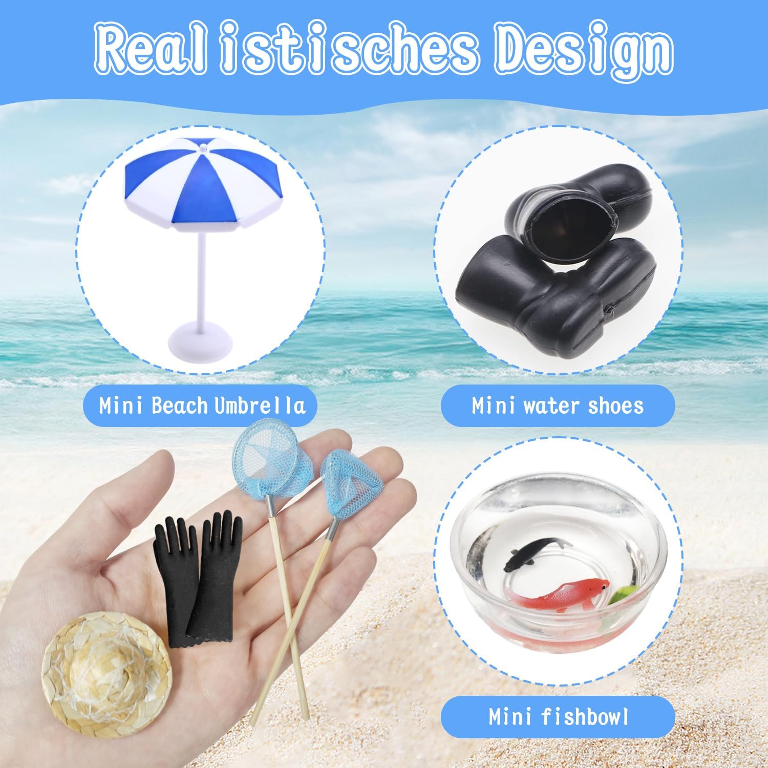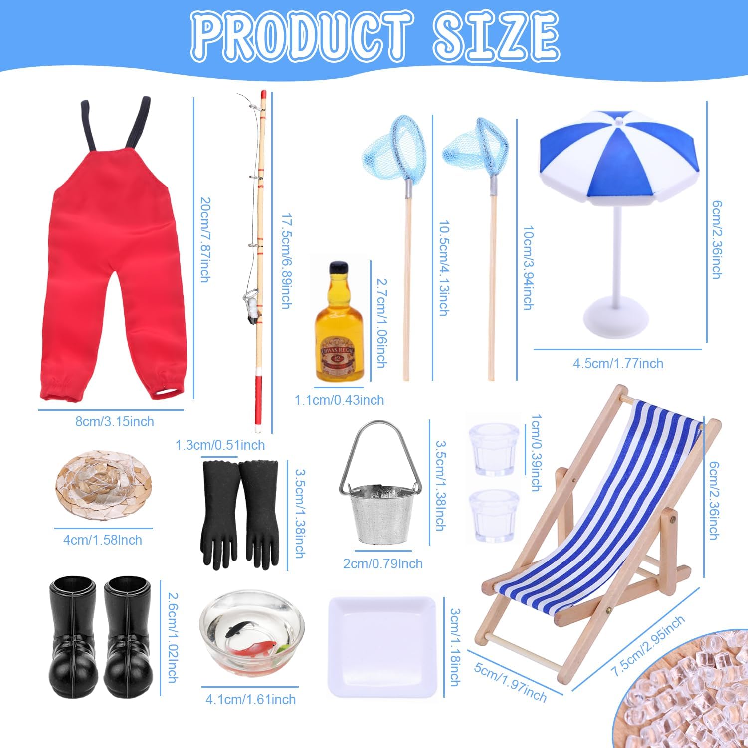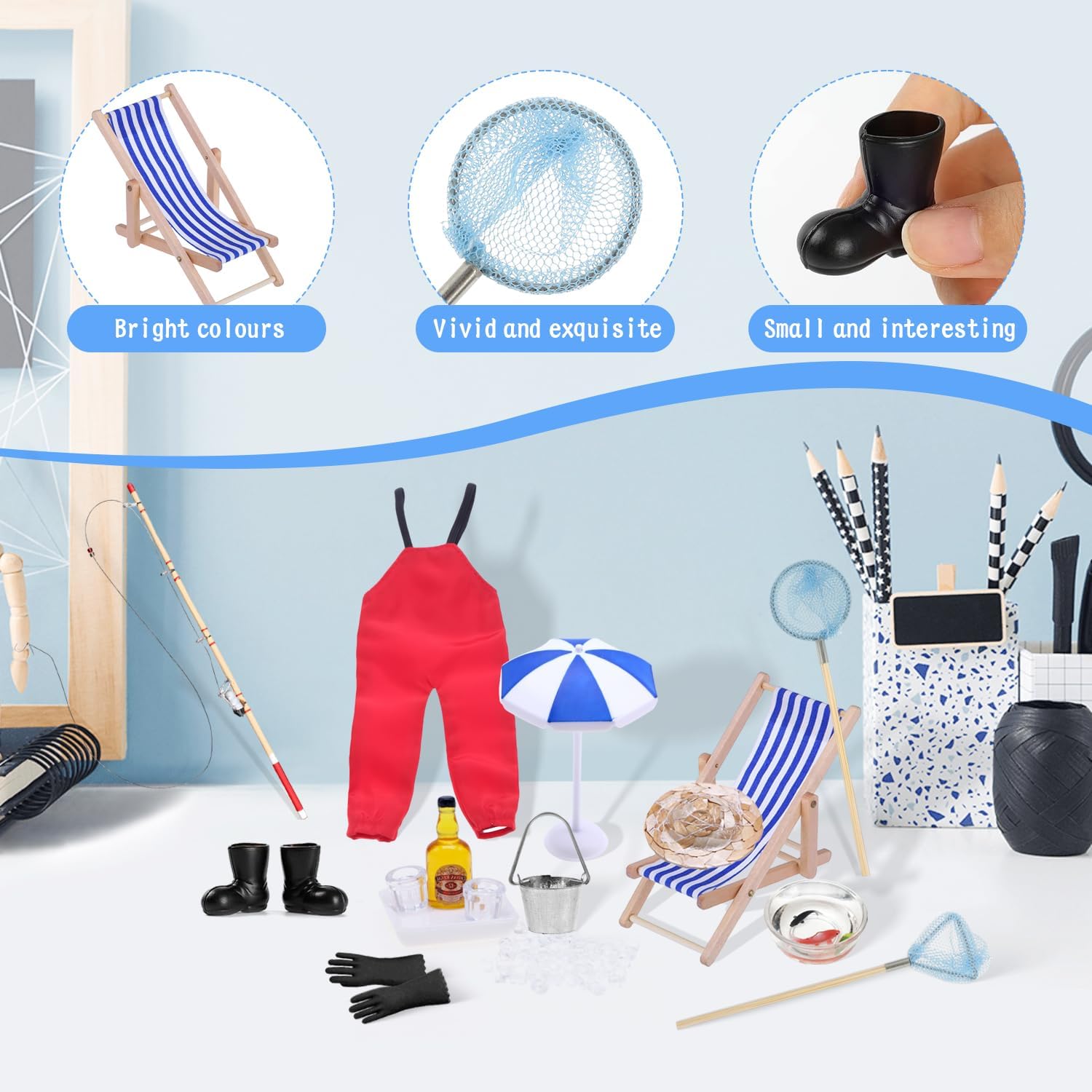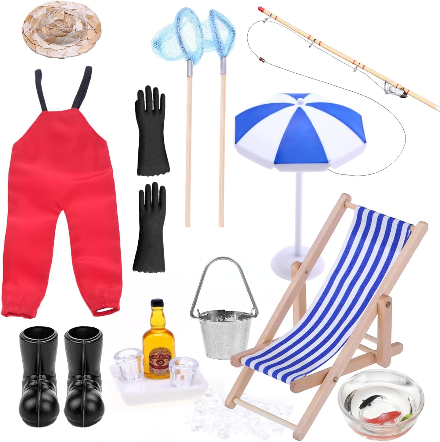 【Informativo】Riceverete 1 set da pesca della Casa Delle Bbambole, comprendente 1 canna da pesca, 1 paio di pantaloni rossi da pioggia, 1 sedia da spiaggia blu, 1 ombrellone blu, 1 cappello di paglia, 1 ciotola per il pesce, 1 scarpa da pioggia nera, 1 guanto nero, 1 secchio, 1 bottiglia di birra, 2 tazze, 1 vassoio, alcuni cubetti di ghiaccio, 1 rete da pesca rotonda e 1 rete da pesca triangolare.Gli Porta Elfo Natale Accessori in Miniatura sono ricchi di contenuti e possono farvi vivere una bella esperienza 【Design unico】Grazie al design realistico, questo set di Accessori Casa Bambole Miniatura cattura l'attenzione per il suo design delicato e l'aspetto unico. Il design unico può farvi vivere una vera esperienza di pesca, che può coltivare la vostra curiosità e arricchire la vostra immaginazione 【Il regalo ideale】Questo Mini Set Ornamenti Miniatura è informativo, dal design unico e molto attraente, ed è perfetto per un regalo ideale per ogni occasione. Niente di meno che un regalo di grande effetto per l'appassionata di pesca 【Godetevi il divertimento del fai da te】Scatenate la vostra immaginazione e posizionate le nostre Accessori Casa Delle Bambole in Miniatura ovunque vogliate decorare. Lavorare insieme a un progetto artigianale non solo rafforza i legami, ma crea anche pezzi di grande effetto. Venite a divertirvi con il fai-da-te! 【Ampia gamma di applicazioni】Questo set di Mini Set Ornamenti Miniatura è particolarmente adatto per decorare le case delle bambole e le creazioni in miniatura. È possibile combinare questa decorazione in miniatura con altri giocattoli, perfetta per il giardino zen, Porticina Elfo Natale,il giardino in miniatura, in Spiaggia, le decorazioni in miniatura e altro ancora. Potete anche regalarlo ai vostri amici