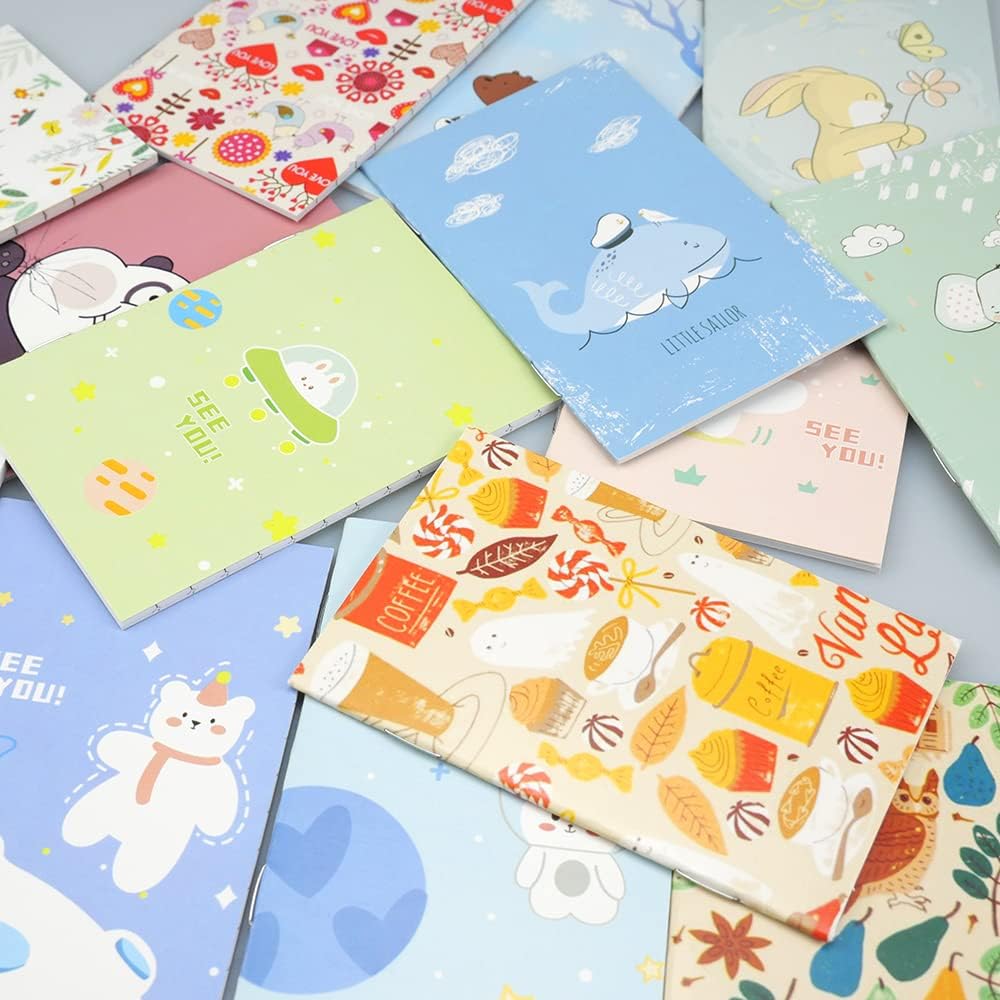 ☆☆Ampia quantità --- Ci sono 16 mini quaderni con 4 tipi di stile per soddisfare le tue diverse esigenze. ☆☆ Dimensioni compatte --- Ogni mini notebook leggero misura circa 10*7*0,2 cm, quindi puoi portarlo in borsa o in tasca per creare in qualsiasi momento. ☆☆Qualità della carta affidabile --- Realizzata con carta di alta qualità e rilegata con punti metallici arrotondati, puoi usarla per registrare i tuoi ricordi unici con sicurezza. ☆☆ Splendidamente progettato --- Delicato e dettagliato con un design divertente e carino, ci porta buon umore ogni giorno. ☆☆Fai un regalo --- Il colore morbido della carta può proteggere meglio i tuoi occhi dai danni. Un grande regalo per amici, familiari, compagni di classe e altri.
