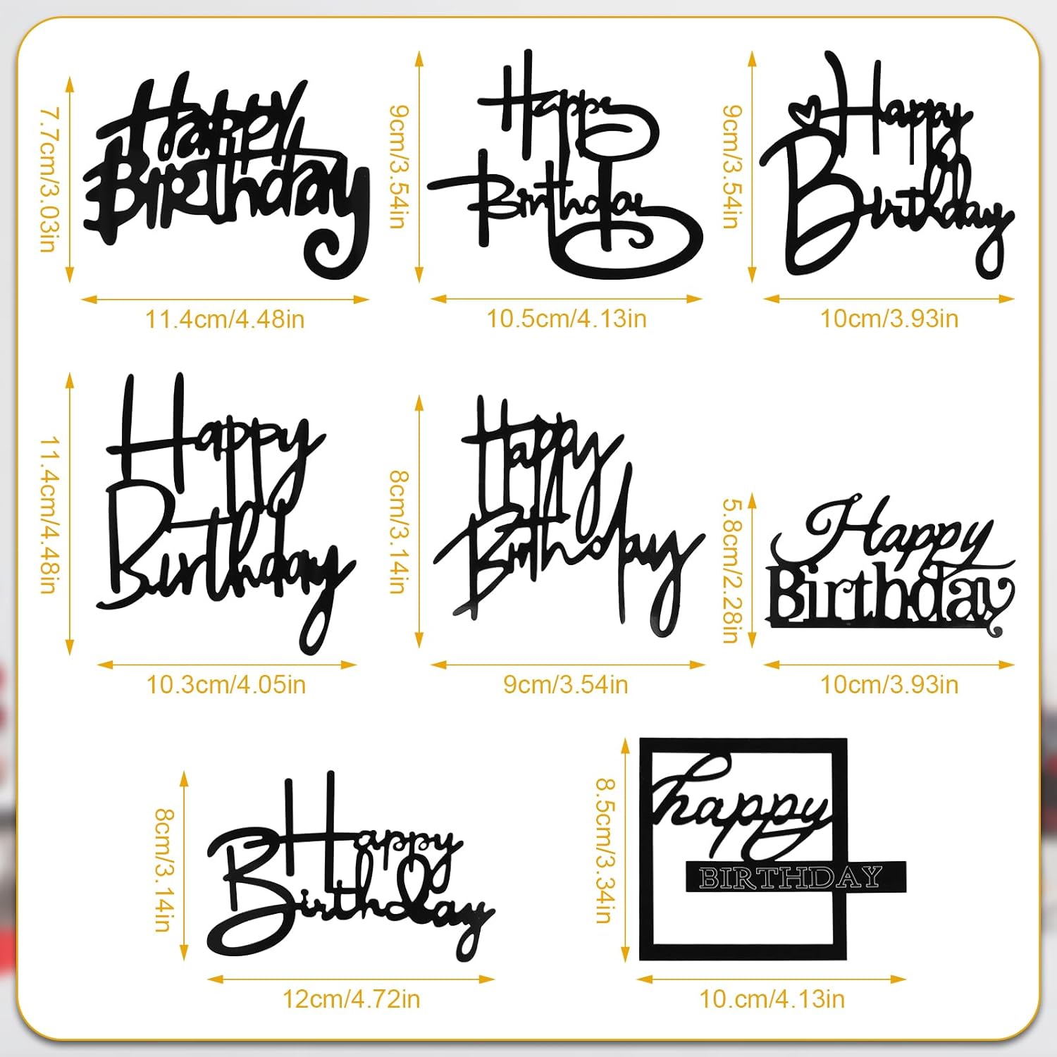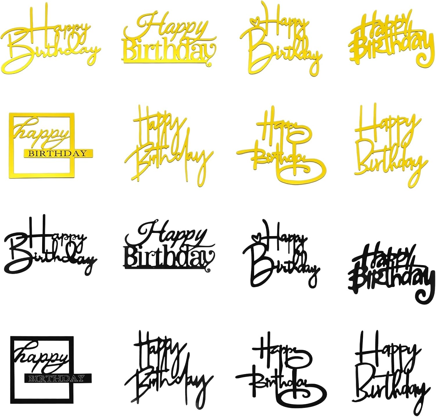 Set Completo 16 Pezzi: Include 8 cake topper compleanno neri e 8 dorati, perfetti per decorare torte di qualsiasi dimensione. Questi Toppers per Decorare Una Torta offrono versatilità per creare composizioni uniche in ogni festa. Decorazione Torta Regolabile: Misure standard 8cm x 10cm facilitano il posizionamento sulla superficie della torta. Grazie ai 16 Topper per Torta di Buon Compleanno inclusi, puoi personalizzare ogni angolo con stile sofisticato. Design Elegante Nero Oro: Combinazione di nero intenso e oro dorato brillante per un effetto lussuoso. L’oro dorato intensifica il valore visivo della torta, trasformandola nel centro della Party Cake Decorazione senza sforzo. Materiale Acrilico Premium: Realizzati in acrilico spesso e lucido, sicuro per alimenti e resistente all’umidità. La trasparenza dell’acrilico esalta l’eleganza delle Decorazioni per Torte Compleanno, garantendo durata nel tempo. Applicazione Universale Happy Birthday: Ideali per celebrazioni di uomini e donne, questi Compleanno Torta Topper si inseriscono istantaneamente nella torta creando una scenografia da Happy Birthday indimenticabile. Perfetti sia per feste intime che grandi eventi.