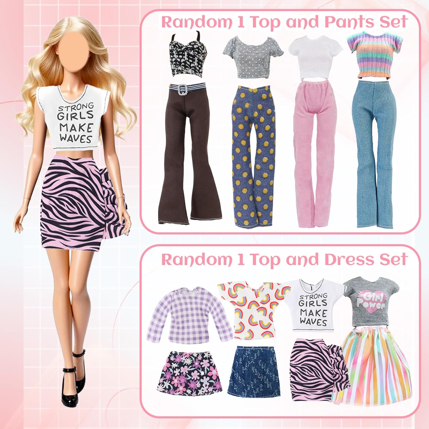 La confezione include: 1 cappotto in pelle con abito, 1 abito alla moda con cappotto corto in pelliccia, 1 gonna a tubino con maniche lunghe, set 2 abiti, 1 abito sequen, 6 paia di scarpe, 2 borse, 1 collana, 1 cappello, confezionati in una scatola trasparente. Adatto per: dimensioni compatibili con bambole da 30 cm. Vendiamo solo vestiti e accessori, la bambola è solo un modello e non è inclusa nella confezione. Materiale sicuro e di qualità: i vestiti per bambole Fahsion sono tutti realizzati in cotone di qualità intrecciato a mano, hanno una consistenza morbida e colori vivaci. Le scarpe per bambola sono realizzate in plastica sicura, inodore e delicata sulla pelle, non danneggiano i tuoi bambini durante il gioco. Regalo di compleanno perfetto per le tue ragazze: questo delicato accessorio per costume da bambola è un regalo perfetto per la tua adorabile bambina, regalo di compleanno, regalo di Natale, regalo del Ringraziamento. Nota: questi abiti sono casuali: i vestiti saranno scelti tra le scorte disponibili. Aggiorneremo regolarmente lo stile, potremmo non aggiornare l'immagine in tempo, le immagini mostrano solo una parte di esse.