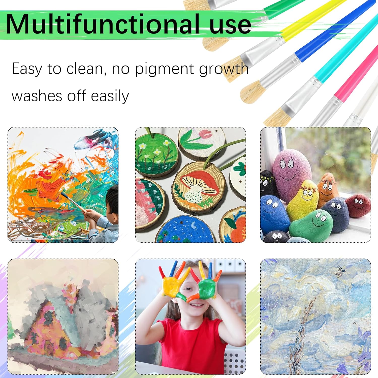 Materiali di alta qualità: i pennelli sono dotati di un robusto manico in plastica, setole di cinghiale di alta qualità e una ghiera liscia in alluminio per mantenere le setole saldamente in posizione. Le setole flessibili e resistenti gestiscono facilmente anche i colori più densi, rendendoli ideali per una pittura espressiva e strutturata. Facile manutenzione: adatti per acrilici, oli e acquerelli, i pennelli per bambini si risciacquano semplicemente con acqua tiepida e sapone. È sufficiente rimodellare la punta dopo la pulizia per mantenerla pulita e garantire prestazioni affidabili per le creazioni future. Idea regalo perfetta: questa è una scelta stimolante per gli amanti dell'arte di tutte le età, dai principianti agli amatori. Perfetti per attività artistiche scolastiche, feste di compleanno, club di pittura, progetti di classe e incontri di artigianato natalizio, per dare libero sfogo alla fantasia. Versatile: i pennelli artistici sono perfetti per tempere, acrilici e colori lavabili. Perfetti per decorare pietre, dipingere su tela o ceramica, creare motivi in pelle o sperimentare con la nail art e il viso. Set completo: contiene 16 pennelli per pittura artistica in otto vivaci tonalità: rosso, verde, blu, giallo, rosa, azzurro, bianco e viola. Ogni pennello è lungo 18 cm (7,09 pollici) e il cappuccio è largo 1,3 cm (1/2 pollice), offrendo una presa comoda e un facile controllo.