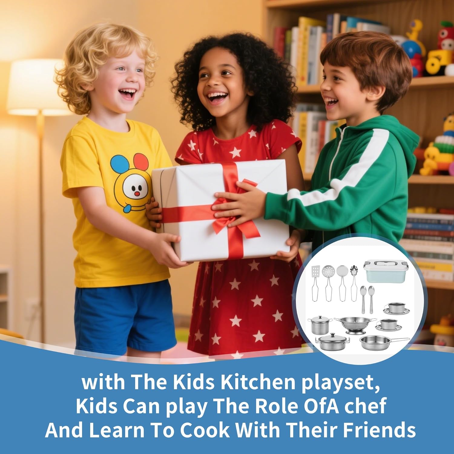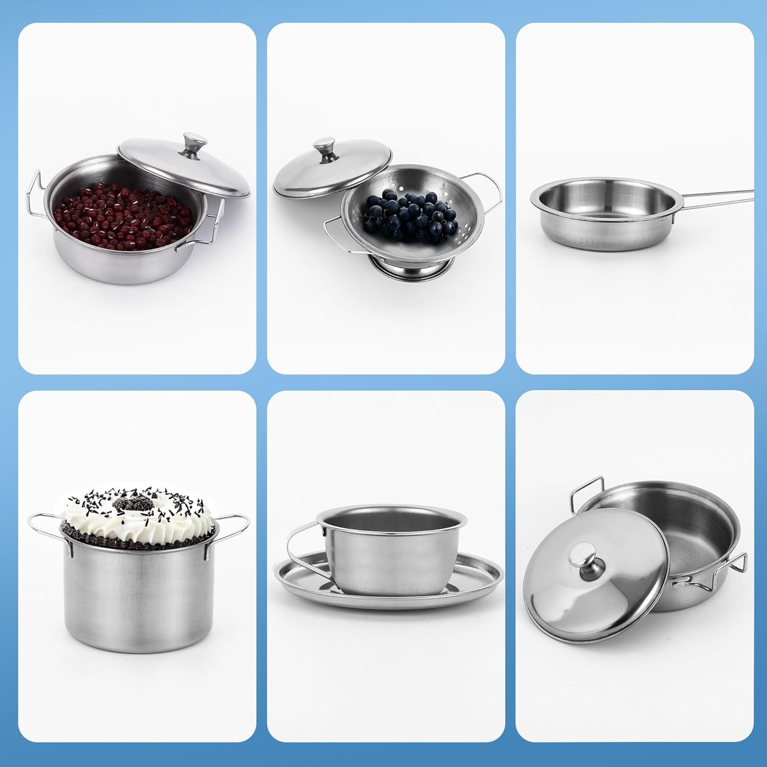 Set di giocattoli da cucina da 17 pezzi per bambini:Include pentola × 2, coperchio in pentola × 2, padella × 1, ciotola di frutta × 1, setaccio × 1, cucchiaio rotondo × 1, cucchiaio spaghetti × 1, tazza di caffè × 2, piattino × 2, cucchiaio di caffè × 2, scatola di stoccaggio × 1, un totale di 17 pezzi, accessori ricchi per soddisfare tutte le esigenze della simulazione di cottura dei bambini. Materiale in acciaio inossidabile 304 di alta qualità:Realizzato in acciaio inossidabile 304 di grado alimentare, è sicuro, non tossico, durevole e anti-falsità, liscio e senza bava, i bambini sono più a mio agio quando giocano e supportano la pulizia della lavastoviglie, rendendo i genitori più senza preoccupazioni. Mini dimensioni progettate per le mani piccole:La dimensione del giocattolo si adatta alle piccole mani dei bambini, è leggera e facile da contenere e il design della simulazione è più vicino alla vera esperienza in cucina, stimolando l'interesse dei bambini per l'imitazione e il miglioramento delle capacità pratiche e della cognizione della vita. Presentare un ruolo con l'educazione:I bambini possono interagire con i loro genitori o amici interpretando il ruolo di "Little Chef" e l'espressione del linguaggio dell'esercizio, la consapevolezza della cooperazione e le belle capacità motorie nel gioco, combinando l'educazione con divertimento divertente e infinito. Prima scelta per i regali delle vacanze:Questo simpatico set da cucina per bambini è sia pratico che creativo ed è un regalo ideale per i compleanni per bambini, il Natale, la giornata per bambini e altre vacanze. È adatto a ragazzi e ragazze di età pari o superiore a 3 anni