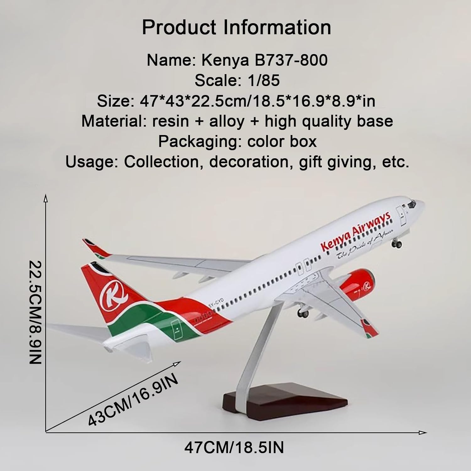 18.5 "Modello in Scala 1:85 Aereo Kenya B737-800 Modello di Aereo Modello Jet Aereo da Collezione Resina con Ruote modalità Aereo pressofuso for la Raccolta(B737)