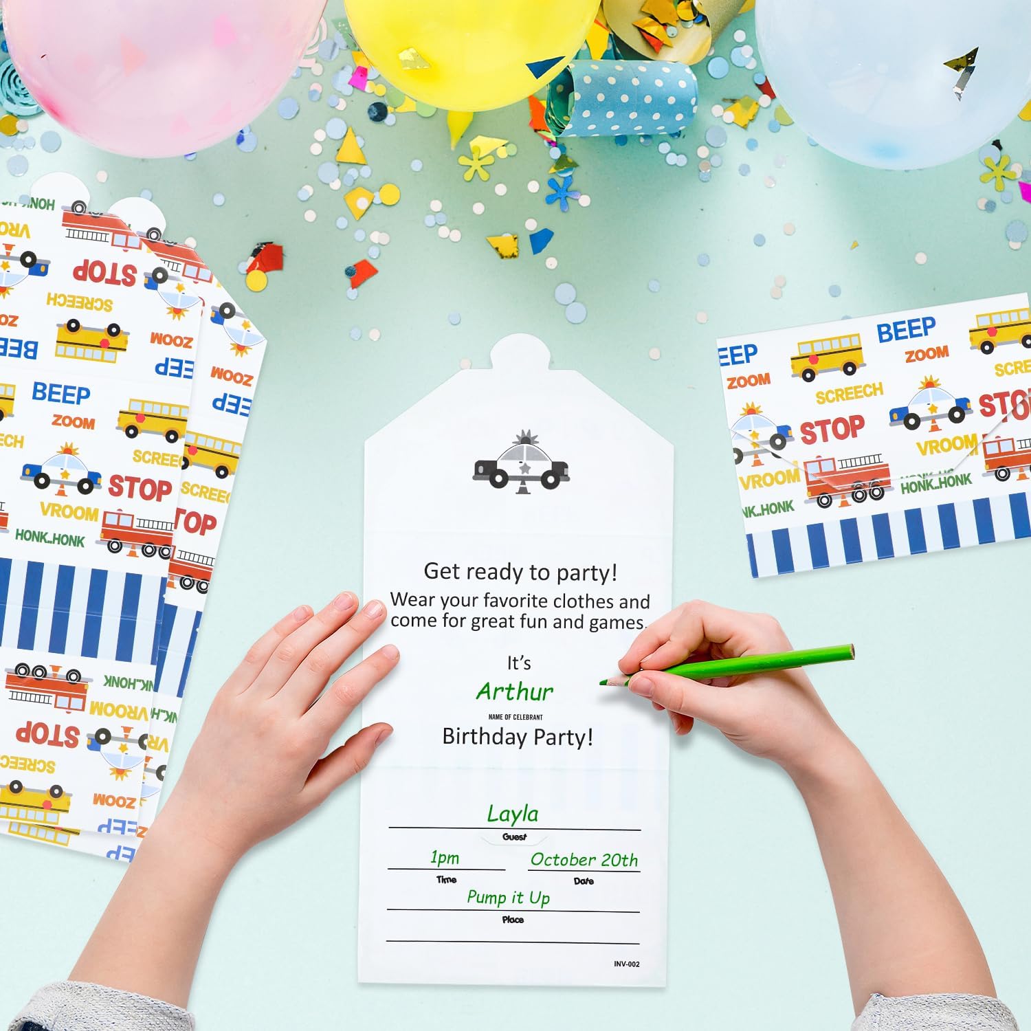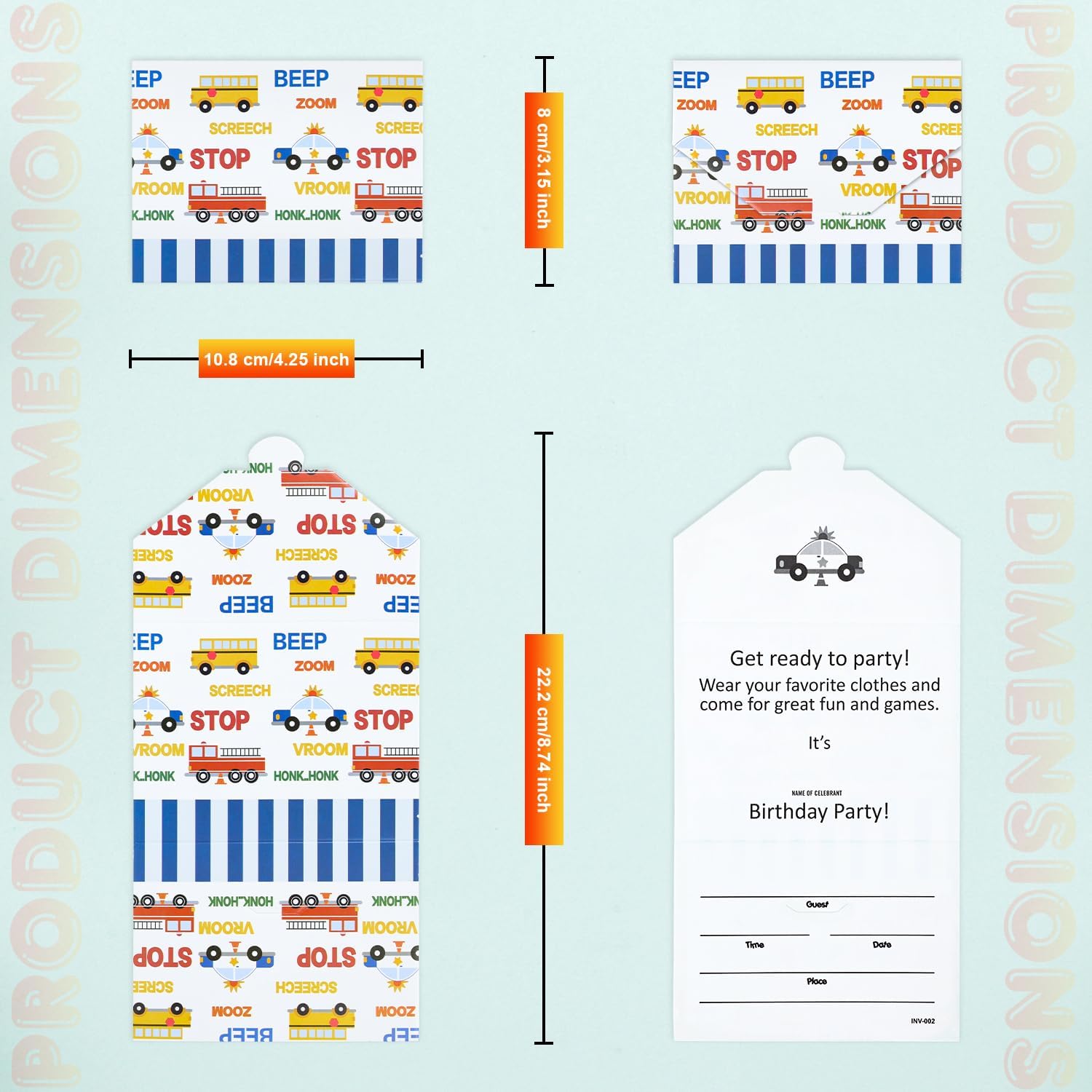 Inviti per feste di compleanno per bambini: confezione da 18 inviti a busta per feste di compleanno per bambini, inviti per feste di compleanno per ragazzi e ragazze, inviti di compleanno Design a busta pieghevole: gli inviti sono progettati con stampa fronte/retro, dopo la scrittura, puoi piegarli con un graffio per farli sembrare una busta. Le buste sono progettate in stile festa con motivi sul retro per creare un'atmosfera di festa. Inviti per feste: confezione di inviti per feste di compleanno per bambini dal design intelligente, misura 10,8 x 22,2 cm, inclusi spazi per scrivere nomi degli ospiti, data, ora, luogo e RSVP. Biglietto di qualità: i nostri inviti sono stampati su cartoncino spesso 250 g/m². Qualità affidabile e senza pieghe, sono facili da scrivere e piegare, il modo perfetto per invitare amici e familiari alla tua festa di compleanno speciale. Biglietto di alta qualità: questo invito può essere utilizzato per feste di compleanno di ragazzi e ragazze di tutte le età, con contenuti ricchi e inviti interessanti, siamo sicuri che i tuoi amici e familiari saranno molto felici di partecipare alla tua festa! Inviti in materiale riciclabile: tutte le parti degli inviti sono riciclabili, amiamo l'ambiente, pensiamo che amerai anche l'ambiente.